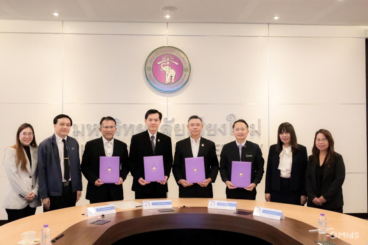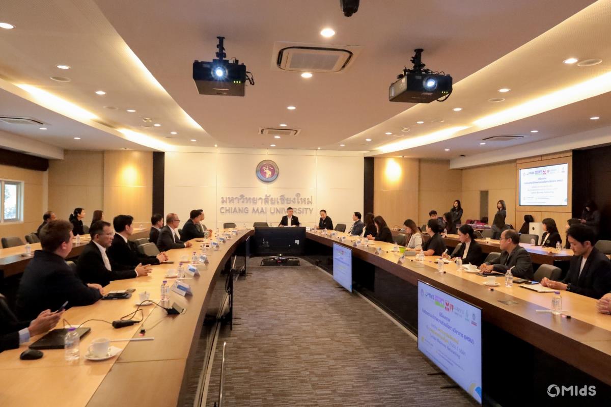 วันจันทร์ที่ 26 มกราคม 2569 วิทยาลัยพหุวิทยาการและสหวิทยาการ มหาวิทยาลัยเชียงใหม่ จัดพิธีลงนามบันทึกความเข้าใจความร่วมมือทางวิชาการ (MOU) ระหว่าง มหาวิทยาลัยเชียงใหม่ กับ ภาคอุตสาหกรรมชั้นนำ จำนวน 5 บริษัท นำโดย ศาสตราจารย์ ดร.นพ.พงษ์รักษ์ ศรีบัณฑิตมงคล อธิการบดีมหาวิทยาลัยเชียงใหม่ ให้เกียรติกล่าวต้อนรับ และมีศาสตราจารย์ ดร.อภิชาต โสภาแดง คณบดีวิทยาลัยพหุวิทยาการและสหวิทยาการ กล่าววัตถุประสงค์ของการร่วมมือกันให้ครั้งนี้ พร้อมด้วย รองอธิการบดีมหาวิทยาลัยเชียงใหม่ ผู้บริหาร MIdS CMU และผู้บริหาร ผู้ติดตามจากทั้ง 5 บริษัท ร่วมเป็นสักขีพยานในพิธีลงนามบันทึกข้อตกลง MOU ณ ห้องประชุมตะวัน กังวานพงศ์ อาคารยุทธศาสตร์ ชั้น 4 สำนักงานมหาวิทยาลัยเชียงใหม่