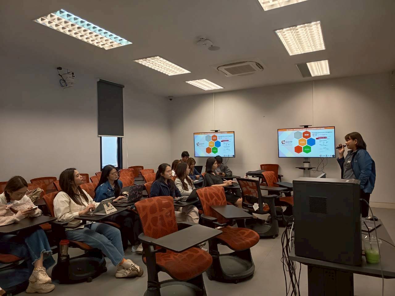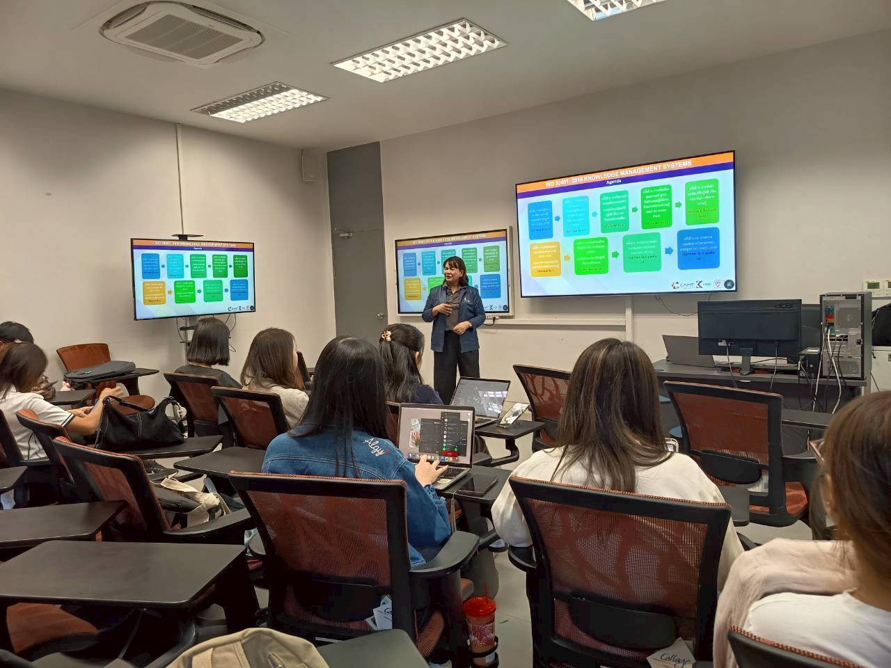 ศูนย์ KIND by CAMT นำโดย ผู้ช่วยศาสตราจารย์ ดร.อัจฉรา คำอักษร ผู้ปฏิบัติหน้าที่ช่วยคณบดี ด้านการพัฒนาองค์ความรู้และนวัตกรรม/ หัวหน้าศูนย์การพัฒนาองค์ความรู้และนวัตกรรม (Knowledge and Innovation Development: KIND) พร้อมด้วยคณะทำงาน ดำเนินงานโครงการที่ปรึกษาด้านการบริหารระบบการจัดการความรู้ตามกรอบมาตรฐาน ISO 30401: 2018 Knowledge Management Systems และการบริหารระบบการจัดการนวัตกรรมตามกรอบมาตรฐาน ISO 56002: 2019 Innovation Management System ให้แก่ บุคลากรในสังกัดของศูนย์ศรีพัฒน์ คณะแพทยศาสตร์ มหาวิทยาลัยเชียงใหม่ ซึ่งกิจกรรมในครั้งนี้ จัดขึ้นในวันที่ 24 มีนาคม 2569 ณ อาคารศูนย์นวัตกรรมการเรียนรู้ (Innovation Learning Center) วิทยาลัยศิลปะ สื่อ และเทคโนโลยี มหาวิทยาลัยเชียงใหม่ โดยในครั้งนี้เป็นการฝึกอบรมเชิงปฏิบัติการ เรื่อง การเตรียมความพร้อมสู่มาตรฐาน ISO 30401: 2018 ระบบการจัดการความรู้ และ ISO 56002 :2019 ระบบการจัดการนวัตกรรม