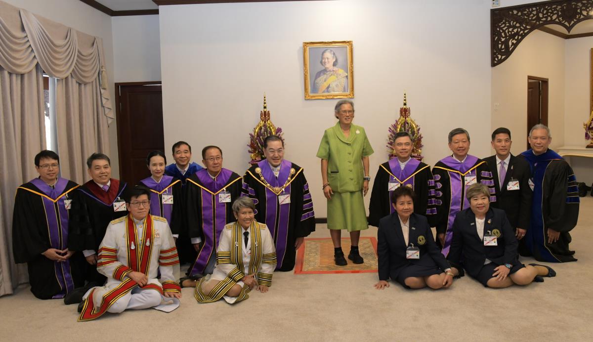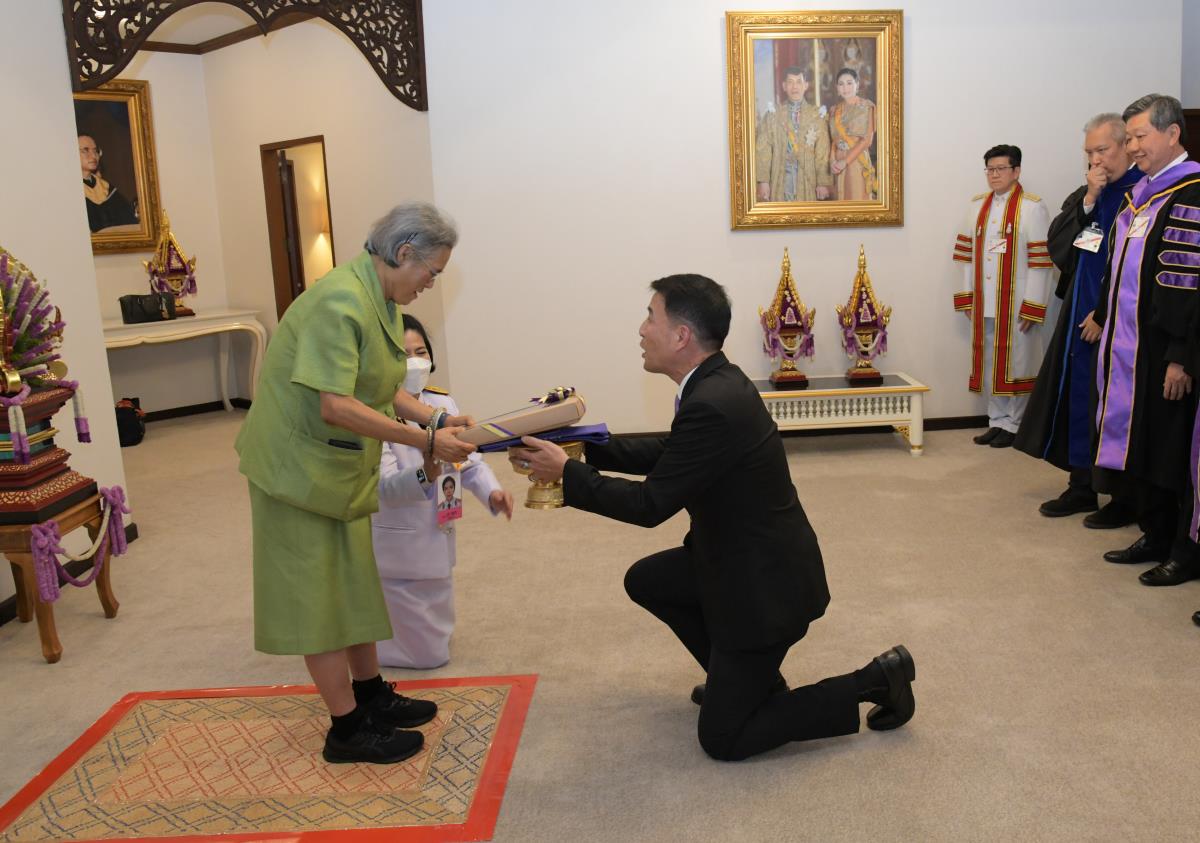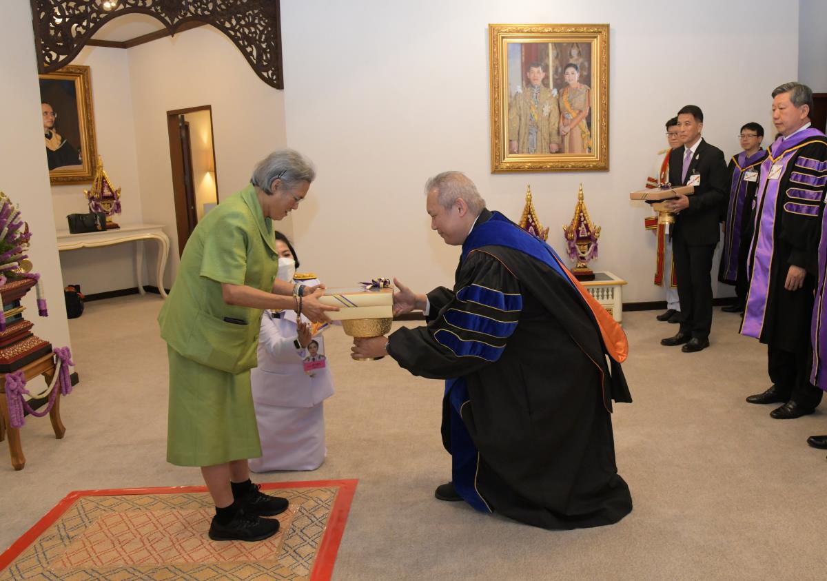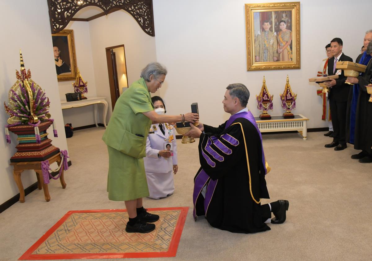 สมเด็จพระกนิษฐาธิราชเจ้า กรมสมเด็จพระเทพรัตนราชสุดาฯ สยามบรมราชกุมารี ทรงพระกรุณาโปรดเกล้าฯพระราชทานพระราชวโรกาสให้ ศาสตราจารย์พิเศษ ดร.สุรเกียรติ์ เสถียรไทย นายกสภามหาวิทยาลัยเชียงใหม่ พร้อมด้วย ศาสตราจารย์เกียรติคุณ ดร.นพ.พงษ์รักษ์ ศรีบัณฑิตมงคล อธิการบดีมหาวิทยาลัยเชียงใหม่ ทูลเกล้าทูลกระหม่อม ถวายนาฬิกาที่ระลึกในวาระครบรอบ 60 ปี แห่งการสถาปนามหาวิทยาลัยเชียงใหม่ รุ่น SEIKO Prospex Monster CMU 60th Anniversary Limited Edition และนายสุมิตร เพชราภิรัชต์ นายกสมาคมนักศึกษาเก่ามหาวิทยาลัยเชียงใหม่ พร้อมด้วยคณะกรรมการสมาคมนักศึกษาเก่ามหาวิทยาลัยเชียงใหม่ ทูลเกล้า ฯ ถวายเงินจากการจัดวิ่งการกุศลมหาวิทยาลัยเชียงใหม่ - เชียงใหม่มาราธอน 2567 ณ เรือนรับรอง หอประชุมมหาวิทยาลัยเชียงใหม่ เมื่อวันพุธที่ 15 มกราคม 2568