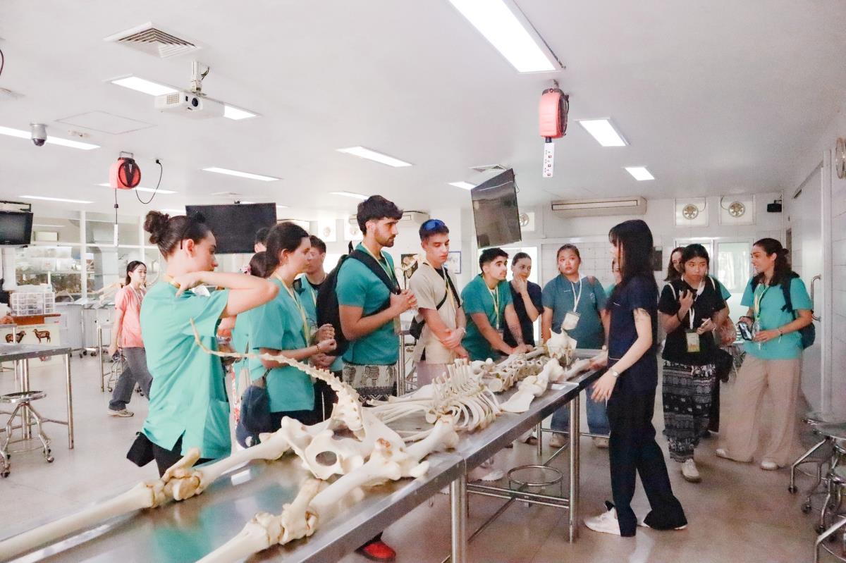 ในโอกาสนี้ น้อง ๆ นิสิตนักศึกษาสัตวแพทย์บาร์เซโลนา ได้เข้าเยี่ยมชมศูนย์การเรียนรู้และส่งเสริมสุขภาพทางสัตวแพทย์ภาคเหนือ (NOVEL CMU) ห้องปฏิบัติการคลินิกสัตว์น้ำ ห้องปฏิบัติการกายวิภาคศาสตร์ และพิพิธภัณฑ์กายวิภาคและพยาธิวิทยาทางสัตวแพทย์ กิจกรรมครั้งนี้ไม่เพียงสะท้อนถึงศักยภาพด้านวิชาการและความพร้อมของคณะฯ ในการเป็นศูนย์กลางการเรียนรู้ระดับนานาชาติ แต่ยังตอกย้ำความมุ่งมั่นในการสร้างเครือข่ายความร่วมมือทางวิชาการ แลกเปลี่ยนองค์ความรู้และวัฒนธรรม เพื่อร่วมกันพัฒนาวิชาชีพสัตวแพทย์อย่างยั่งยืนในเวทีโลก