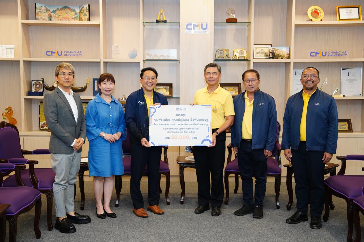 ศาสตราจารย์ ดร.นพ.พงษ์รักษ์ ศรีบัณฑิตมงคล อธิการบดีมหาวิทยาลัยเชียงใหม่ รับมอบเงินทุนการศึกษากองทุน “คุณพ่อเฉลียว – คุณแม่สุพินดา เอื้อพันธเศรษฐ” จำนวน 50,000 บาท (ห้าหมื่นบาทถ้วน) จากรองศาสตราจารย์ นายแพทย์รณภพ เอื้อพันธเศรษฐ เพื่อจัดสรรเป็นทุนการศึกษาให้แก่นักศึกษาของมหาวิทยาลัยเชียงใหม่ ประกอบด้วย ทุนการศึกษาต่อเนื่อง 25,000.- จำนวน 2 ทุน โดยมีคณะผู้บริหาร คณาจารย์ เจ้าหน้าที่ร่วมรับมอบฯ เมื่อวันจันทร์ที่ 15 กรกฎาคม พ.ศ.2567 ณ ห้องรับรอง ม.ล.ปิ่น มาลากุล สำนักงานมหาวิทยาลัย มหาวิทยาลัยเชียงใหม่