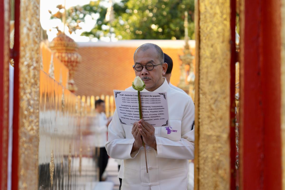 ศาสตราจารย์ ดร.นพ.พงษ์รักษ์ ศรีบัณฑิตมงคล อธิการบดีมหาวิทยาลัยเชียงใหม่ พร้อมด้วยคณะผู้บริหารมหาวิทยาลัยเชียงใหม่ เดินทางเข้ากราบนมัสการพระเถระชั้นผู้ใหญ่ประจำจังหวัดเชียงใหม่ เพื่อความเป็นสิริมงคล เนื่องในเทศกาลวันขึ้นปีใหม่ พ.ศ.2569 ประกอบด้วย พระธรรมเสนาบดี เจ้าอาวาสวัดพระธาตุดอยสุเทพ ราชวรวิหาร, พระธรรมวชิรโกศล เจ้าอาวาสวัดศรีโสดา พระอารามหลวง, พระเทพสิงหวราจารย์ รองเจ้าคณะจังหวัดเชียงใหม่ เจ้าอาวาสวัดพระสิงห์ วรมหาวิหาร, พระเทพมังคลาจารย์ เจ้าคณะจังหวัดเชียงใหม่ เจ้าอาวาสวัดท่าตอนพระอารามหลวง และพระเทพปริยัติ เจ้าอาวาสวัดเจ็ดยอด พระอารามหลวง เมื่อวันจันทร์ที่ 5 มกราคม พ.ศ.2569