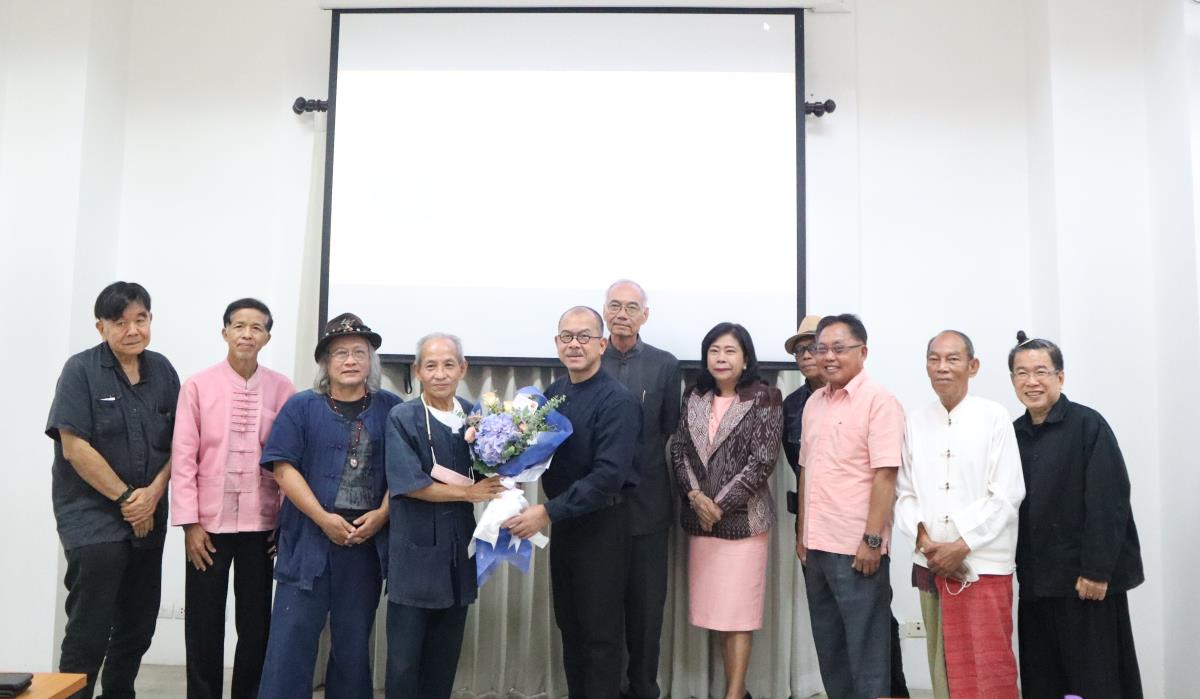 ผู้ช่วยศาสตราจารย์ ดร. เอกชัย มหาเอก รองอธิการบดี รักษาการแทน ผู้อำนวยการสำนักส่งเสริมศิลปวัฒนธรรมและล้านนาสร้างสรรค์ มหาวิทยาลัยเชียงใหม่ พร้อมด้วยคณะกรรมการผู้ทรงคุณวุฒิการคัดเลือก หรือสรรหาผู้สมควรได้รับรางวัลภูมิแผ่นดินปิ่นล้านนา มหาวิทยาลัยเชียงใหม่ ประจำปี พ.ศ. 2565 มอบช่อดอกไม้แสดงความยินดีกับพ่อครูดิเรก สิทธิการ ผู้ได้รับมอบรางวัลภูมิแผ่นดิน ปิ่นล้านนา มหาวิทยาลัยเชียงใหม่ ประจำปี 2552 เนื่องในโอกาสที่ได้รับการยกย่องเชิดชูเกียรติให้เป็นศิลปินแห่งชาติ ประจำปี 2565 สาขาทัศนศิลป์ จากกรมส่งเสริมวัฒนธรรม กระทรวงวัฒนธรรม ในวันที่ 11 ตุลาคม 2566 ณ ห้องประชุม สำนักส่งเสริมศิลปวัฒนธรรมและล้านนาสร้างสรรค์ มหาวิทยาลัยเชียงใหม่