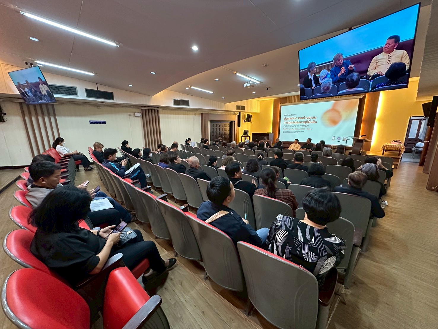 ภายในงานมีการปาฐกถาพิเศษในหัวข้อ “ผู้ดูแลคือหัวใจของการดูแลผู้สูงอายุ: จากครอบครัวสู่ระบบสนับสนุน” โดย คุณสว่าง แก้วกันทา ผู้อำนวยการมูลนิธิพัฒนางานผู้สูงอายุ ซึ่งสะท้อนให้เห็นถึงบทบาทสำคัญของผู้ดูแลในฐานะกลไกหลักของระบบการดูแล และความจำเป็นของการพัฒนากลไกสนับสนุนที่เหมาะสม ทั้งในมิติครอบครัว ชุมชน และโครงสร้างเชิงระบบ
