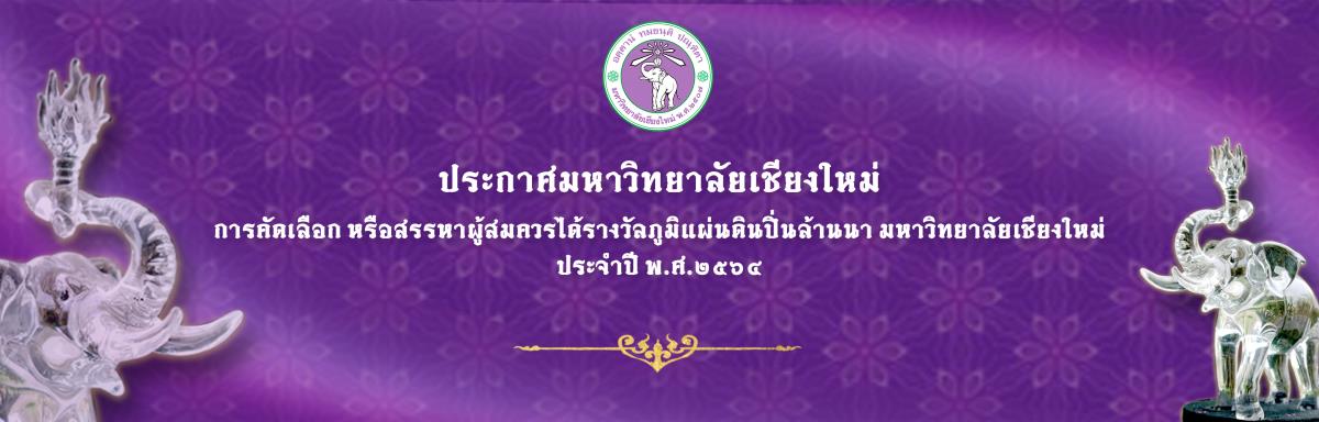 มหาวิทยาลัยเชียงใหม่ ขอเชิญผู้สนใจเสนอประวัติผลงานเพื่อดำเนินการคัดเลือก หรือสรรหาผู้สมควรได้รับรางวัลภูมิแผ่นดินปิ่นล้านนา ประจำปี พ.ศ. 2564