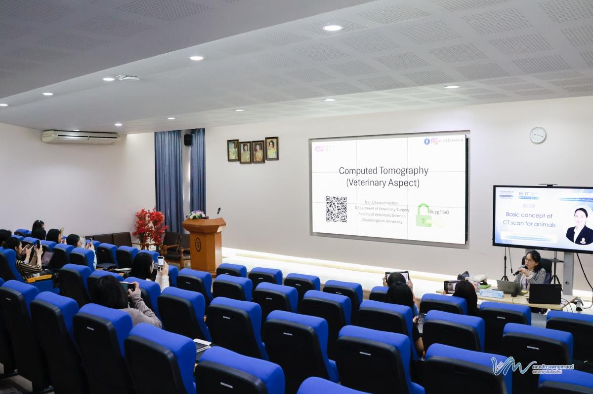ภายในงานได้รับเกียรติจาก รศ. ดร. สพ.ญ.แนน ช้อยสุนิรชร วิทยากรผู้เชี่ยวชาญจากคณะสัตวแพทยศาสตร์ จุฬาลงกรณ์มหาวิทยาลัย มาร่วมถ่ายทอดองค์ความรู้เชิงลึกด้านการประยุกต์ใช้ CT Scan เพื่อเพิ่มความแม่นยำในการวินิจฉัยและวางแผนการรักษาอย่างตรงจุด และ อ. ดร. น.สพ.อภินันท์ โพธิ์ศรี มาร่วมถ่ายทอดและแบ่งปันเทคนิคการแปลผลภาพทัศนวินิจฉัยพื้นฐานอย่างเป็นระบบ ครอบคลุมการจัดการภาวะ Abdominal Mass อย่างครบวงจร การจัดกิจกรรมครั้งนี้สะท้อนความมุ่งมั่นของคณะฯ ในการบูรณาการองค์ความรู้ เทคโนโลยีขั้นสูง และเครือข่ายผู้เชี่ยวชาญ เพื่อยกระดับมาตรฐานการวินิจฉัยทางคลินิก เสริมสร้างความเข้มแข็งของการศึกษาหลังปริญญา และขับเคลื่อนวิชาชีพสัตวแพทย์ไทยสู่ความเป็นสากลอย่างยั่งยืน