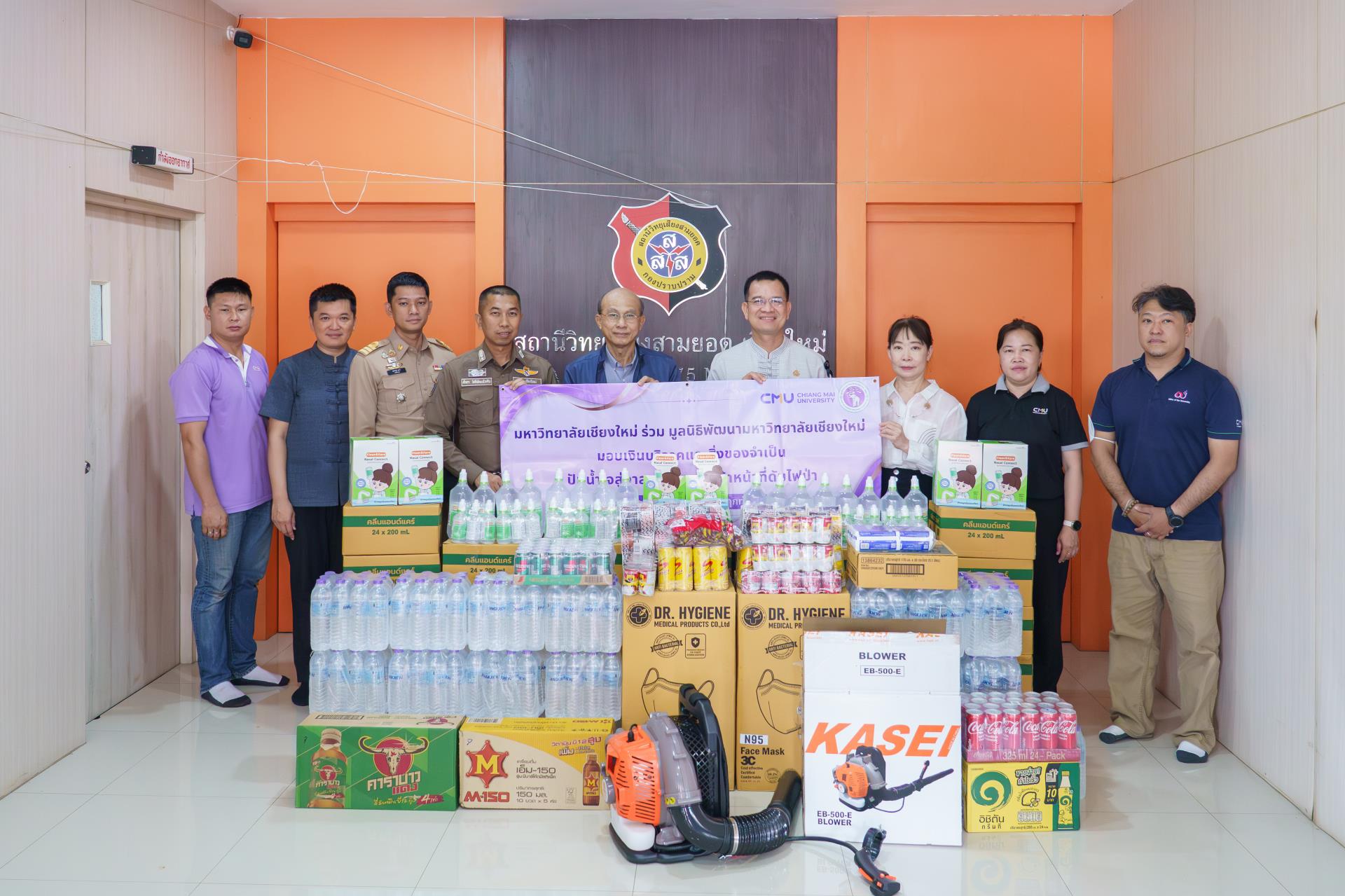 มหาวิทยาลัยเชียงใหม่ ร่วมกับ มูลนิธิพัฒนามหาวิทยาลัยเชียงใหม่ โดย รองศาสตราจารย์ นายแพทย์ธนู หินทอง ผู้อำนวยการสำนักงานบริหารและจัดการทรัพย์สิน และเลขานุการมูลนิธิพัฒนามหาวิทยาลัยเชียงใหม่ เป็นผู้แทนมอบสิ่งของ เพื่อสนับสนุนภารกิจดับไฟป่า โดยมี นายศิวกร บัวป้อง รองผู้ว่าราชการจังหวัดเชียงใหม่ พร้อมด้วยคณะเจ้าหน้าที่สถานีวิทยุกระจายเสียง "เสียงสามยอด" จังหวัดเชียงใหม่ เป็นผู้แทนรับมอบเพื่อนำไปกระจายความช่วยเหลือให้กับเจ้าหน้าที่ดับไฟป่าในพื้นที่แนวหน้าต่อไป