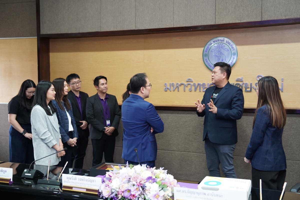 ผู้ช่วยศาสตราจารย์ ดร.ธัญญานุภาพ อานันทนะ รองอธิการบดี มหาวิทยาลัยเชียงใหม่ (มช.) และคุณรังสิ วงษ์กิจบัญชา ผู้ช่วยผู้จัดการใหญ่ ผู้บริหารสายงาน Corporate Banking 2 ธนาคารไทยพาณิชย์ จำกัด (มหาชน) พร้อมด้วย ผู้ช่วยศาสตราจารย์ ดร.ชาย รังสิยากูล ผู้อำนวยการศูนย์บริหารจัดการเมืองอัจฉริยะ มหาวิทยาลัยเชียงใหม่ และ คุณวันทนีย์ สุรพิบูล ผู้อำนวยการอาวุโส ผู้บริหารฝ่าย Corporate Banking 2 Client Coverage 2.1 ร่วมลงนามในบันทึกข้อตกลง โครงการ SMART UNIVERSITY ร่วมกัน เมื่อวันศุกร์ที่ 16 กุมภาพันธ์ 2567 ณ ห้องประชุมบัวเรศ คำทอง สำนักงานมหาวิทยาลัย มหาวิทยาลัยเชียงใหม่