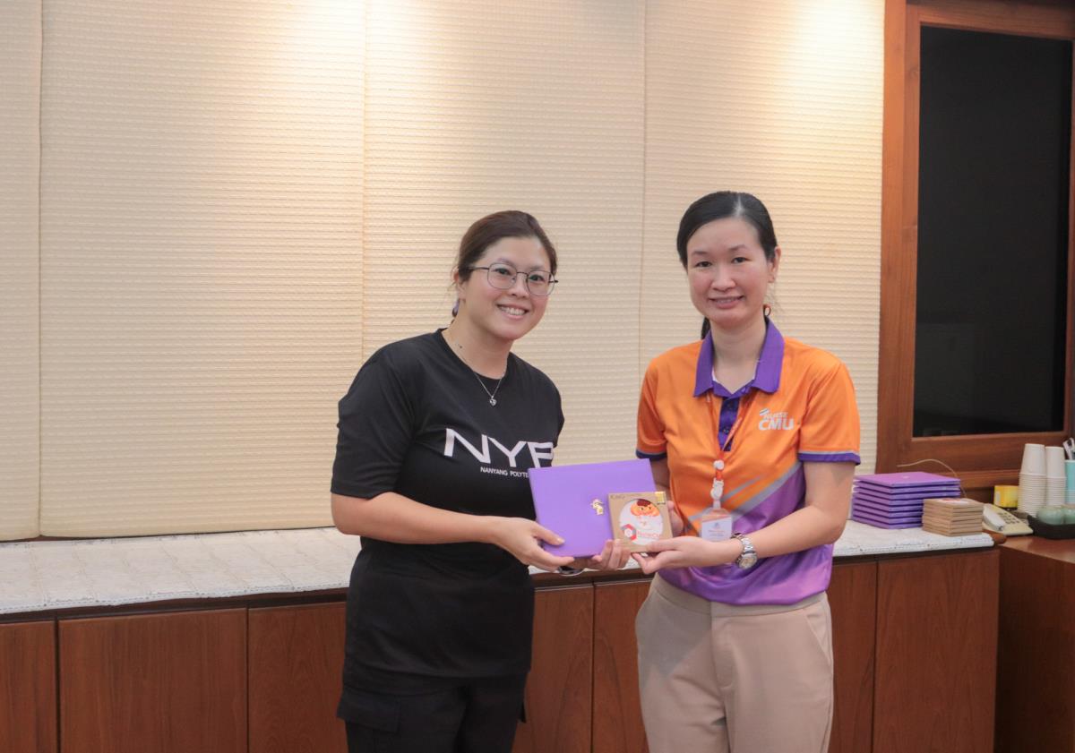 วันพฤหัสบดีที่ 2 ตุลาคม 2568 ผู้ช่วยศาสตราจารย์ ดร.ปรียกมล ไกรกิจราษฎร์ ผู้ช่วยคณบดี คณะพยาบาลศาสตร์ มหาวิทยาลัยเชียงใหม่ ร่วมแสดงความยินดีและมอบประกาศนียบัตรแก่คณาจารย์และนักศึกษาจาก School of Health and Social Science, Nanyang Polytechnic ประเทศสิงคโปร์ ณ ห้องประชุมวิลาวัณย์ เสนารัตน์ อาคาร 4 ในโอกาสเข้าร่วมโครงการศึกษาดูงานเพื่อส่งเสริมองค์ความรู้ทางการพยาบาลและเสริมสร้างการเรียนรู้ระหว่างวัฒนธรรม ระหว่างวันที่ 29 กันยายน - 3 ตุลาคม 2568