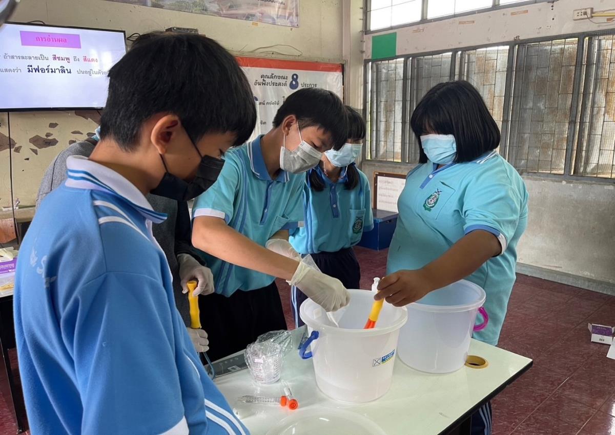 นำโดย อาจารย์ ดร.สุรัตน์ หงษ์สิบสอง อาจารย์ประจำสำนักวิชาการสถาบันวิจัยวิทยาศาสตร์สุขภาพ พร้อมด้วยนักศึกษาระดับปริญญาโทและปริญญาเอกและคณะทำงานจากหน่วยวิจัยสิ่งแวดล้อมและสุขภาพ สถาบันวิจัยวิทยาศาสตร์สุขภาพ ได้ดำเนินการจัดกิจกรรมโครงการคุ้มครองผู้บริโภคในสถานศึกษา (กิจกรรม อย.น้อย) ให้กับนักเรียนโรงเรียนบ้านหัวริน ต.ทุ่งสะโตก อ.สันป่าตอง จ.เชียงใหม่ จัดกิจกรรมให้ความรู้เกี่ยวกับความอันตรายของสารเคมีที่ปนเปื้อนในอาหาร ได้แก่ สารบอแรกซ์ สารกันรา สารฟอกขาว และสารฟอร์มาลีน เพื่อให้นักเรียนมีความรู้ความเข้าใจ และตระหนักถึงพิษภัยของสารเคมีที่ปนเปื้อนในอาหารที่จะส่งผลกระทบต่อสุขภาพร่างกาย รวมทั้งให้ความรู้เรื่องเจลล้างมือแอลกอฮอล์และสาธิตขั้นตอนการทำเพื่อป้องกันโรคโควิด19 ในโรงเรียน
