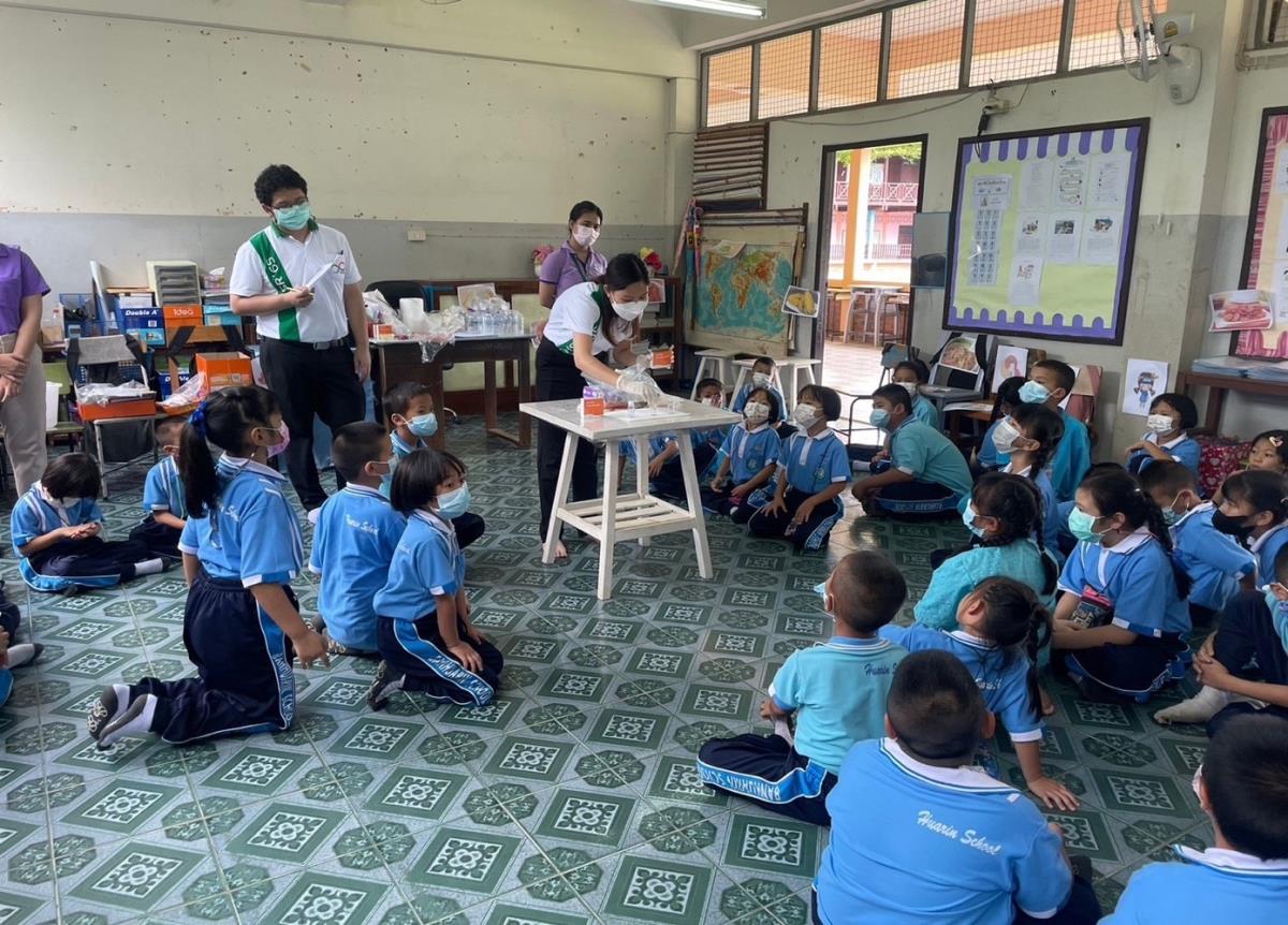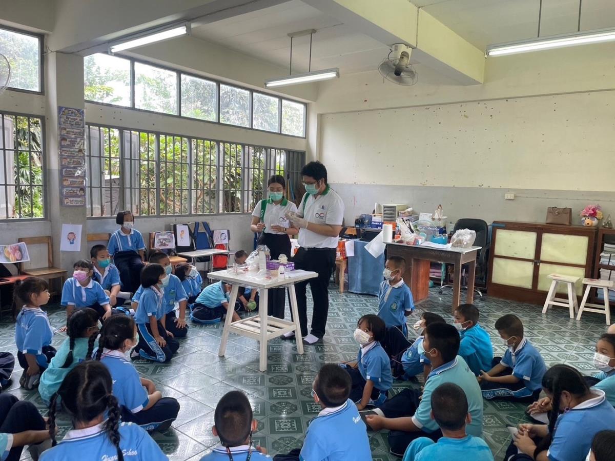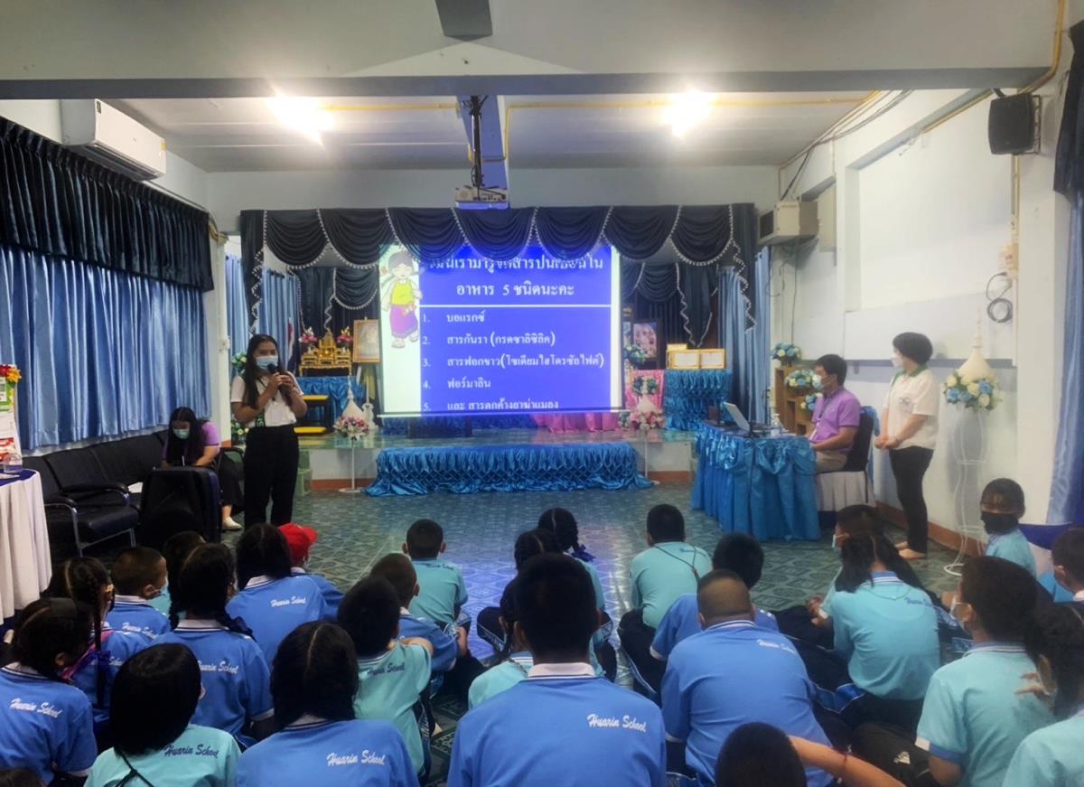 อาจารย์ ดร.สุรัตน์ หงษ์สิบสอง อาจารย์ประจำสำนักวิชาการสถาบันวิจัยวิทยาศาสตร์สุขภาพและนักศึกษาดำเนินการจัดกิจกรรมโครงการคุ้มครองผู้บริโภคในสถานศึกษา (กิจกรรม อย.น้อย) ให้กับนักเรียนโรงเรียนบ้านหัวริน ต.ทุ่งสะโตก อ.สันป่าตอง จ.เชียงใหม่