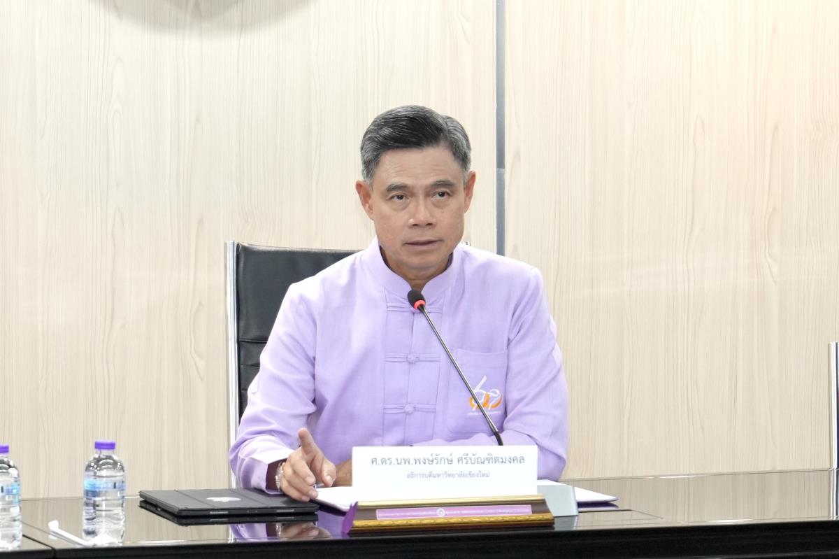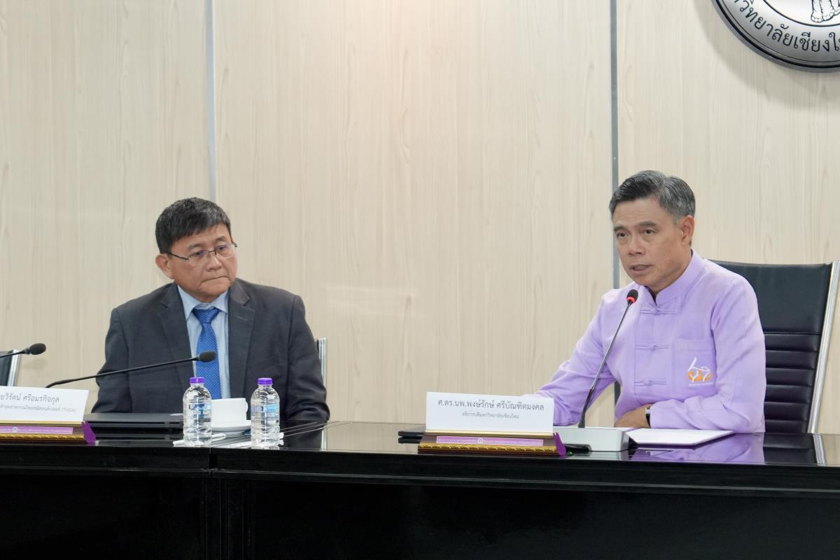 ศาสตราจารย์ ดร.นายแพทย์ พงษ์รักษ์ ศรีบัณฑิตมงคล อธิการบดีมหาวิทยาลัยเชียงใหม่ ให้การต้อนรับนายวิรัตน์ ศรีอมรกิจกุล นายกสมาคมการค้าอุตสาหกรรมไทยเซมิคอนดักเตอร์ (Thai Semiconductor Industry Trade Association: THSIA) และคณะฯ ในโอกาสเยี่ยมชมมหาวิทยาลัยเชียงใหม่ และประชุมหารือเกี่ยวกับความร่วมมือทางด้านเซมิคอนดักเตอร์ ภาคเหนือระหว่างสมาคมการค้าอุตสาหกรรมไทยเซมิคอนดักเตอร์ และมหาวิทยาลัยเชียงใหม่ เพื่อร่วมกันพัฒนาบุคลากรและองค์ความรู้ในด้านเทคโนโลยีเซมิคอนดักเตอร์ ณ ห้องประชุมพระยาศรีวิสารวาจา สำนักงานมหาวิทยาลัย มหาวิทยาลัยเชียงใหม่ เมื่อวันศุกร์ที่ 17 ตุลาคม พ.ศ.2568