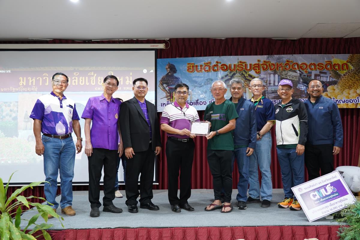 ผู้ช่วยศาสตราจารย์ ดร.ปิติพงษ์ ยอดมงคล รองอธิการบดีมหาวิทยาลัยเชียงใหม่ พร้อมด้วยคณะผู้บริหาร ร่วมให้การต้อนรับนักปั่นเพื่อน้อง กรุงเทพ-เชียงใหม่ ครั้งที่ 5 ตอนเพื่ออาคารสุจิณฺโณ ณ จังหวัดอุตรดิตถ์ โดยมี นายพิพัฒน์ เอกภาพันธ์ อดีตผู้ว่าราชการจังหวัดอุตรดิตถ์ กล่าวต้อนรับ นายแพทย์อิ๊ดยังวัน ยงย่วน นายแพทย์สาธารณสุขจังหวัดอุตรดิตถ์ มอบเงินสนับสนุนโครงการปั่นฯ พร้อมด้วยชมรมนักศึกษาเก่ามหาวิทยาลัยเชียงใหม่จังหวัดอุตรดิตถ์ ร่วมให้การต้อนรับนักปั่นฯ ณโรงแรมอารยารีสอร์ท จังหวัดอุตรดิตถ์ เมื่อวันพุธที่ 21 ธันวาคม พ.ศ.2565