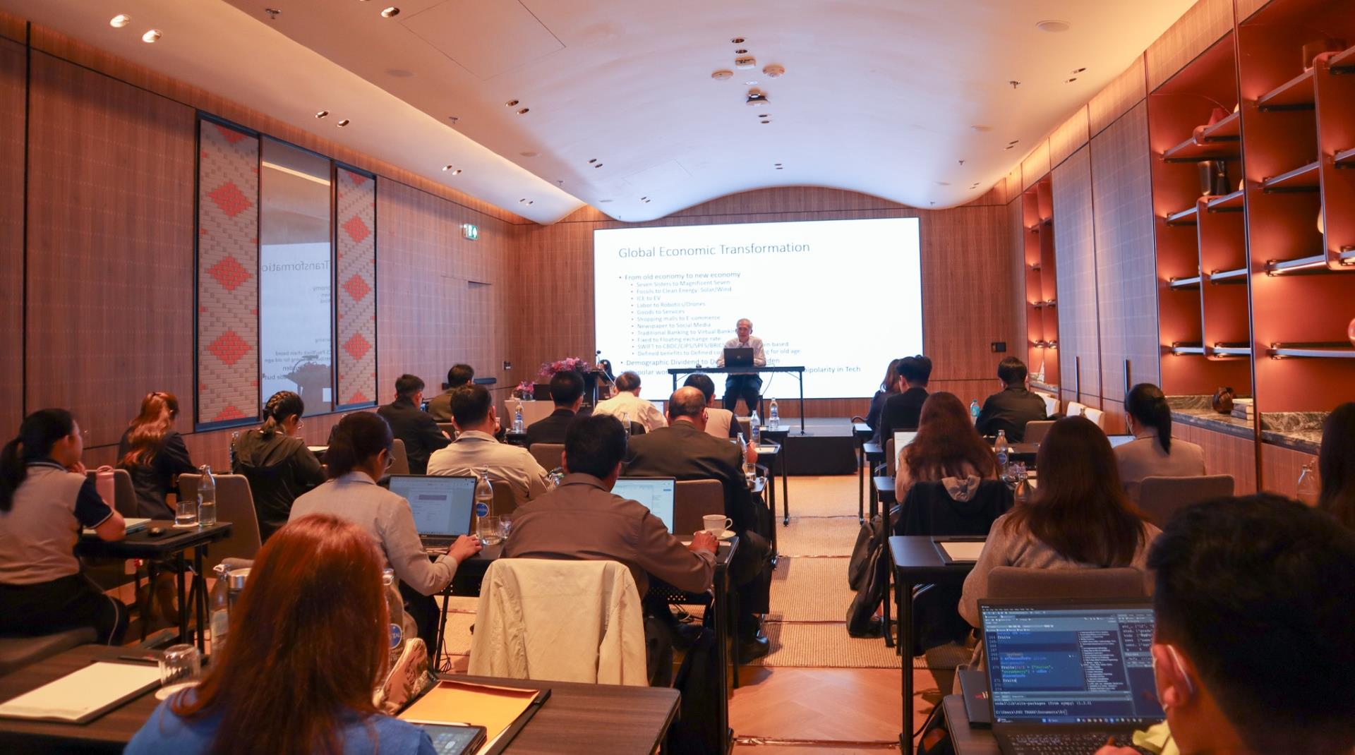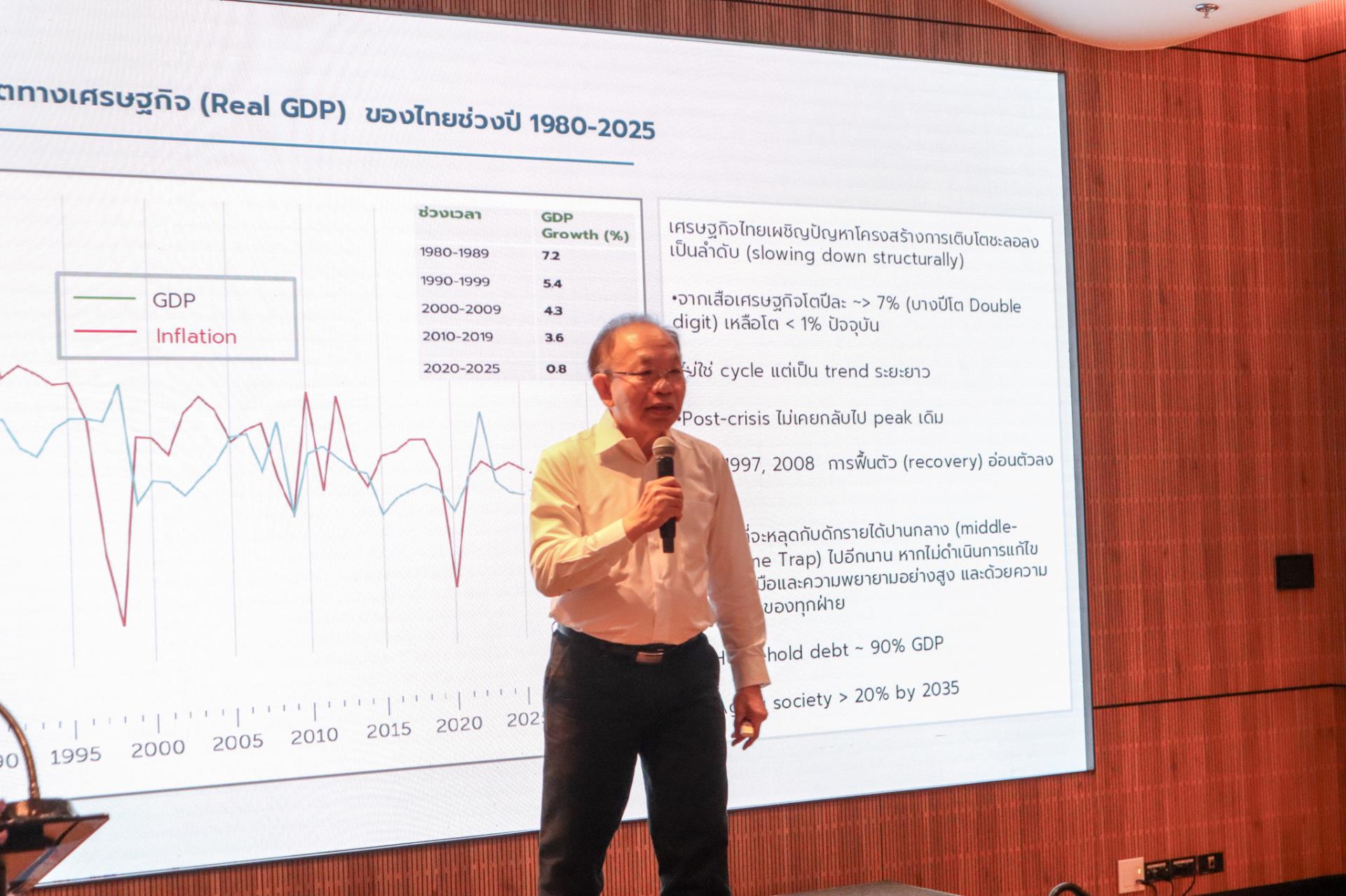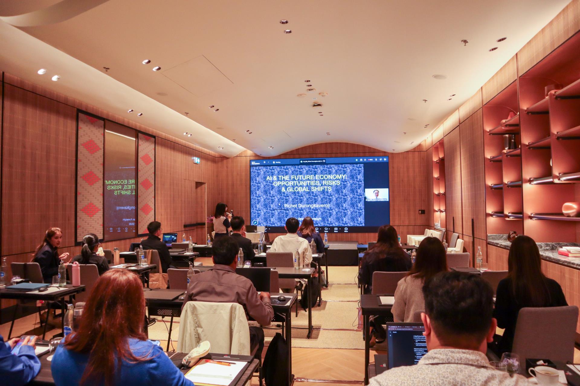 • ดร.พิเชฐ ดุรงคเวโรจน์ อดีตรัฐมนตรีว่าการกระทรวงดิจิทัลเพื่อเศรษฐกิจและสังคม บรรยายหัวข้อ “AI and the Future Economy: Opportunities, Risks, and Global Shifts”
