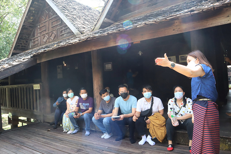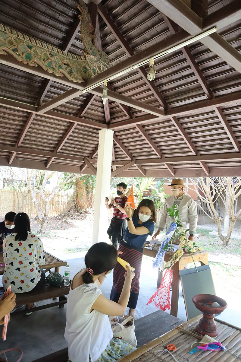 เมือวันที่ 20 กุมภาพันธ์ 2565 พิพิธภัณฑ์เรือนโบราณล้านนา สำนักส่งเสริมศิลปวัฒนธรรม มช. ให้การต้อนรับคณาจารย์และนักศึกษาหลักสูตรสาธารณสุขศาสตรมหาบัณฑิต (หลักสูตรนานาชาติ) คณะสาธารณสุขศาสตร์ มหาวิทยาลัยมหิดล ที่เข้าทัศนศึกษาพร้อมทั้งเยี่ยมชมนิทรรศการในเรือนทรงอาณานิคม (คิวรีเปอล์) นิทรรศการข้าวของเครื่องใช้ ณ เรือนไทลื้อ (หม่อนตุด) นิทรรศการภูมิปัญญาสล่าสร้างเรือนในเรือนทรงปั้นหยา (อนุสารสุนทร) และเรือนล้านนาภายในพิพิธภัณฑ์ฯ พร้อมกันนี้ พิพิธภัณฑ์เรือนโบราณล้านนา ได้จัดกิจกรรมด้านศิลปวัฒนธรรมการตัดตุงล้านนา เพื่อให้ผู้เข้าร่วมได้เรียนรู้งานหัตถศิลป์ล้านนา ณ พิพิธภัณฑ์เรือนโบราณล้านนา สำนักส่งเสริมศิลปวัฒนธรรม มช.