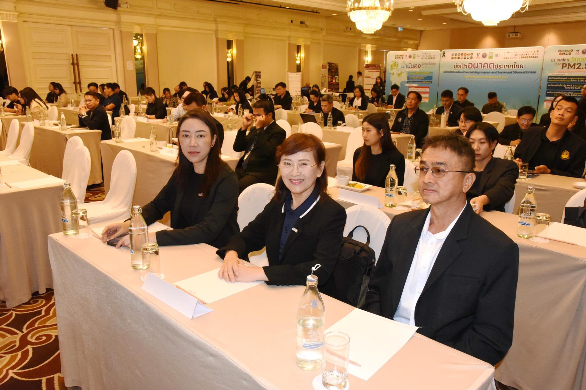 ในการแถลงผลงานครั้งนี้ ผู้อำนวยการสำนักงานการวิจัยแห่งชาติ กล่าวว่า กองทุนส่งเสริมวิทยาศาสตร์ วิจัยและนวัตกรรม ได้บูรณาการการทำงานร่วมกับหน่วยงานต่าง ๆ ในพื้นที่ เพื่อให้บรรลุเป้าหมาย เช่น การลดจุดความร้อน จำนวน 5,000 จุด/ปี การลดจำนวนผู้ป่วย COPD จำนวน 1,000 คน/ปี และบรรลุเป้าหมายน้ำมั่งคง ไม่ท่วม ไม่แล้ง โดยให้ดำเนินการทำงานครอบคลุมกว่า 100 ตำบล ช่วยเหลือประชาชนให้ได้มากกว่า 120,000 ครัวเรือน การเพิ่มมูลค่าทางเศรษฐกิจให้ไม่น้อยกว่า 900 ล้านบาท โดยจะนำนวัตกรรมต่าง ๆ มาใช้แก้ไขปัญหาในทุกมิติตามเป้าหมายส่งเสริมคุณภาพอากาศที่ดีและน้ำที่มั่งคงยั่งยืนต่อไป