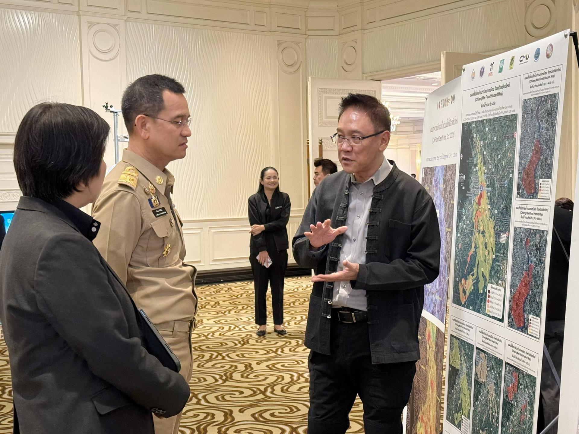 เพื่อนำเสนอแนวทางบริหารจัดการทรัพยากรน้ำ การลดความเสี่ยงด้านสิ่งแวดล้อม และการเสริมสร้างความมั่นคงด้านน้ำในระดับพื้นที่ โดยมี รศ.ชูโชค อายุพงศ์ หัวหน้าโครงการระบบเตือนภัยน้ำท่วมเมืองเชียงใหม่ และผศ.ดร.ภูดินันท์ สิงห์คำฟู หัวหน้าโครงการวัดความสูงระดับพื้นดิ้นด้วยอากาศยานไร้คนขับ ร่วมเสวนา