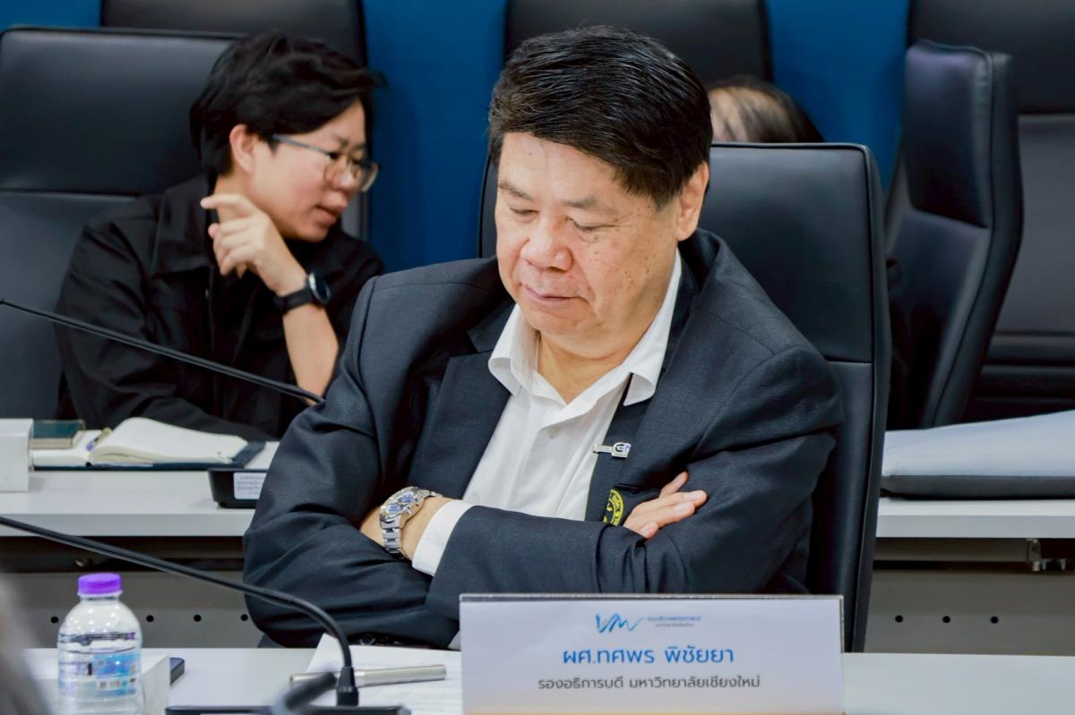 เมื่อวันที่ 13 กุมภาพันธ์ 2569 ผศ.ทศพร พิชัยยา รองอธิการบดี และประธานคณะกรรมการอำนวยการประจำคณะสัตวแพทยศาสตร์ พร้อมด้วย ศ. (เชี่ยวชาญพิเศษ) ดร. น.สพ.กรกฎ งานวงศ์พาณิชย์ คณบดีคณะสัตวแพทยศาสตร์ มหาวิทยาลัยเชียงใหม่ คณะผู้บริหาร คณาจารย์ และบุคลากร ร่วมรับฟังการสรุปรายงานผลการตรวจประเมินสถาบัน จากคณะกรรมการตรวจประเมินสถาบันเพื่อการรับรองปริญญาสัตวแพทยศาสตรบัณฑิต จากสัตวแพทยสภา ณ ห้องประชุมเทอด เทศประทีป อาคารสัตวเวชบำรุง คณะสัตวแพทยศาสตร์ มหาวิทยาลัยเชียงใหม่