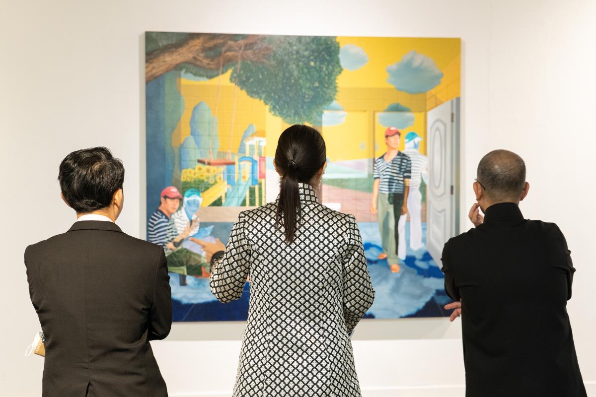 ภายหลังเสร็จสิ้นคำกล่าวรายงาน ประธานในพิธีพร้อมด้วยคณะผู้บริหารและแขกผู้มีเกียรติ ได้ร่วมกันตัดริบบิ้นเพื่อเปิดงานอย่างเป็นทางการและถ่ายภาพเป็นที่ระลึกร่วมกัน จากนั้น รองศาสตราจารย์วิรัญญา จิราธิกิตติ์ ได้นำคณะประธานและผู้เข้าร่วมงานเดินเยี่ยมชมผลงานศิลปกรรมภายในนิทรรศการ ซึ่งรวบรวมผลงานสร้างสรรค์อันทรงคุณค่าจากศิลปินระดับชาติและศิลปินรุ่นใหม่มาจัดแสดง