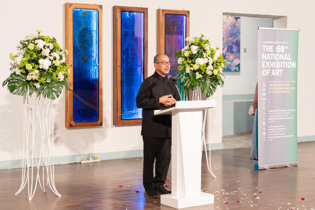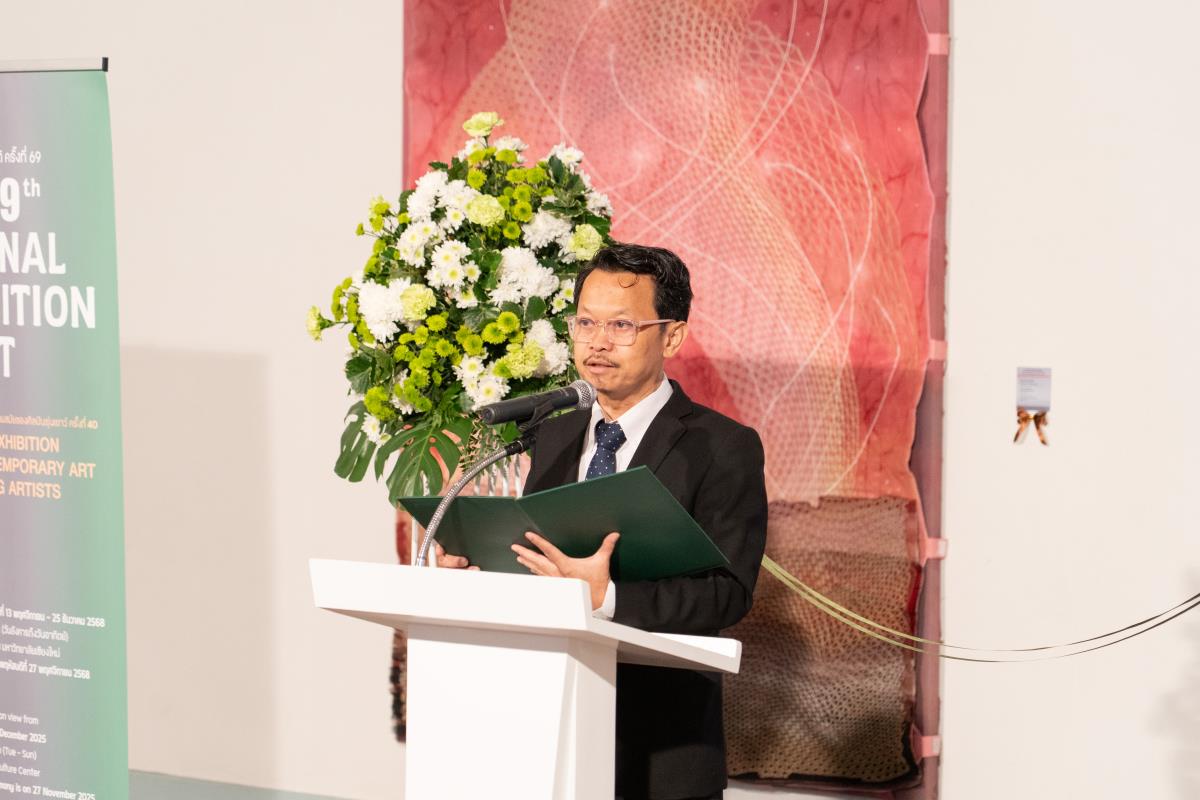 ศาสตราจารย์ปฏิบัติ ดร.เอกชัย มหาเอก รองอธิการบดี มหาวิทยาลัยเชียงใหม่ เป็นประธานเปิดนิทรรศการ “ศิลปกรรมสัญจร ประจำปี 2568” ซึ่งประกอบด้วย การแสดงศิลปกรรมแห่งชาติ ครั้งที่ 69 (THE 69