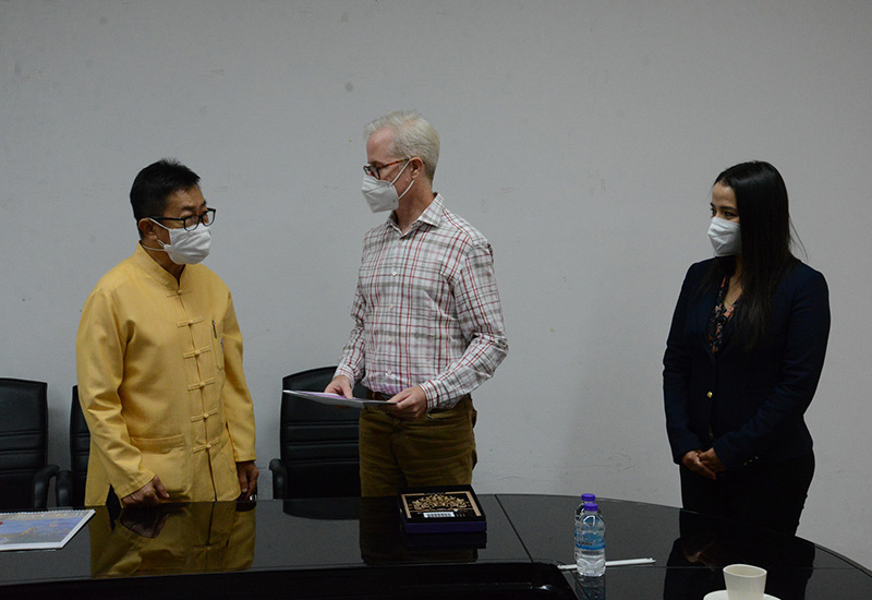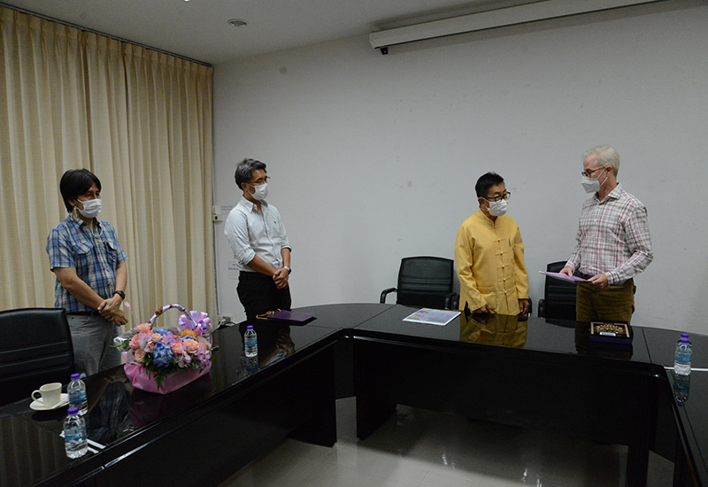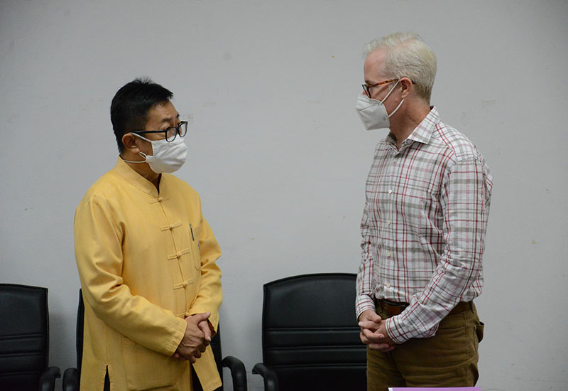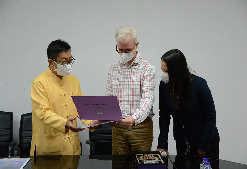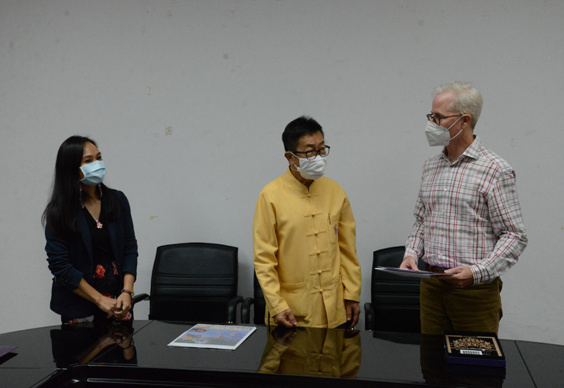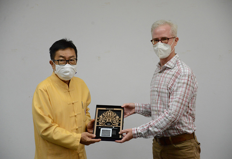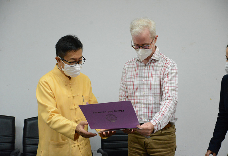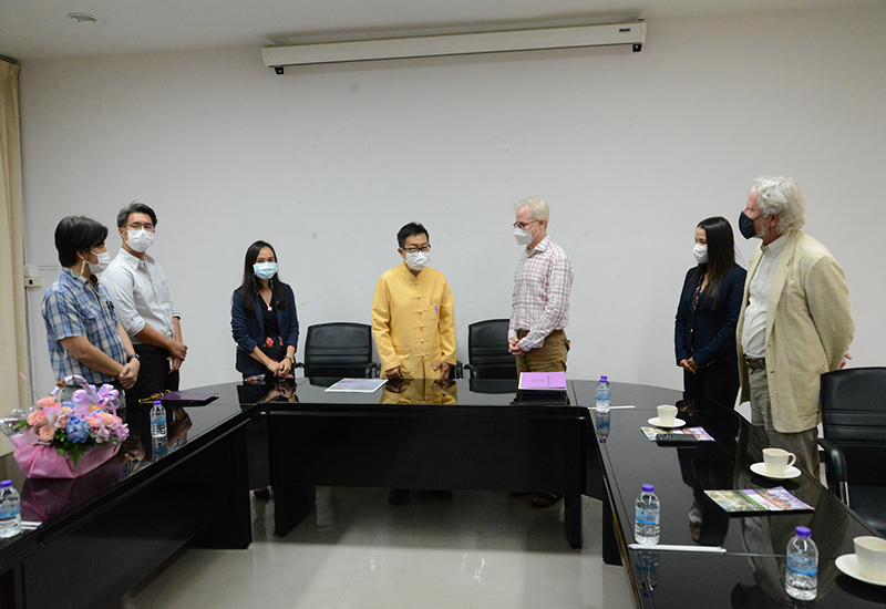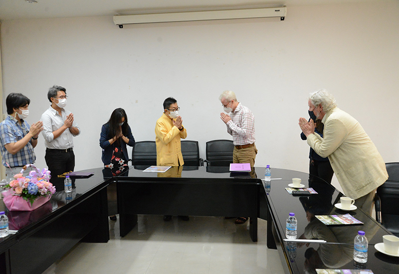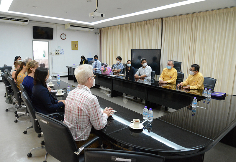 รองศาสตราจารย์โรม จิรานุกรม รองอธิการบดี พร้อมด้วยคณะผู้บริหารของมหาวิทยาลัยเชียงใหม่ ต้อนรับ Dr. Arthur McKeown, Faculty Director of Buddhist Studies in India and Associate Professor of Asian Studies, Carleton College USA พร้อมคณะ ในโอกาสที่มาเข้าพบเพื่อปรึกษาหารือเกี่ยวกับความร่วมมือกับภาควิชาปรัชญาและศาสนา คณะมนุษยศาสตร์ มหาวิทยาลัยเชียงใหม่ ณ ห้องประชุมบุญสม มาร์ติน อาคารยุทธสาสตร์ สำนักงานมหาวิทยาลัย มหาวิทยาลัยเชียงใหม่ วันจันทร์ที่ 4 ตุลาคม พ.ศ. 2564
