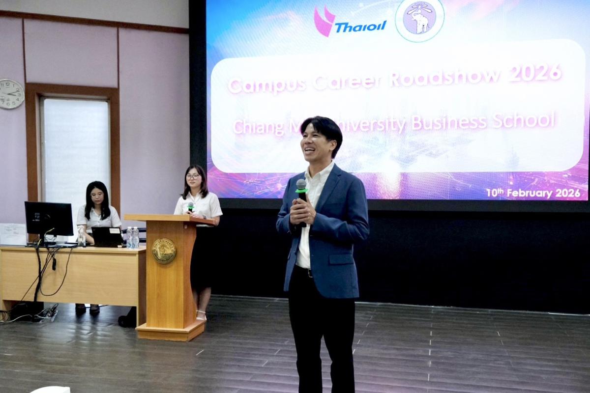 วันที่ 10 กุมภาพันธ์ 2569 ศูนย์พัฒนาความสำเร็จแห่งอาชีพ (CSC) คณะบริหารธุรกิจ มหาวิทยาลัยเชียงใหม่ จัดกิจกรรม Company Presentation แนะนำธุรกิจของ บริษัท ไทยออยล์ จำกัด (มหาชน) เพื่อเปิดโอกาสให้นักศึกษาได้เรียนรู้เกี่ยวกับสายงาน แนวทางการสมัครงาน และเส้นทางความก้าวหน้าในองค์กร โดยได้รับเกียรติจาก ผู้ช่วยศาสตราจารย์ ดร.วีระพงษ์ กิติวงค์ ผู้ช่วยคณบดี กล่าวเปิดกิจกรรมและให้การต้อนรับ คุณกิตติพัฒน์ ดารากร ณ อยุธยา ผู้ช่วยผู้จัดการ ด้านบริหารทรัพยากรบุคคล ซึ่งเป็นวิทยากรถ่ายทอดประสบการณ์และข้อมูลเชิงลึก ณ ห้องประชุม 1 คณะบริหารธุรกิจ มหาวิทยาลัยเชียงใหม่