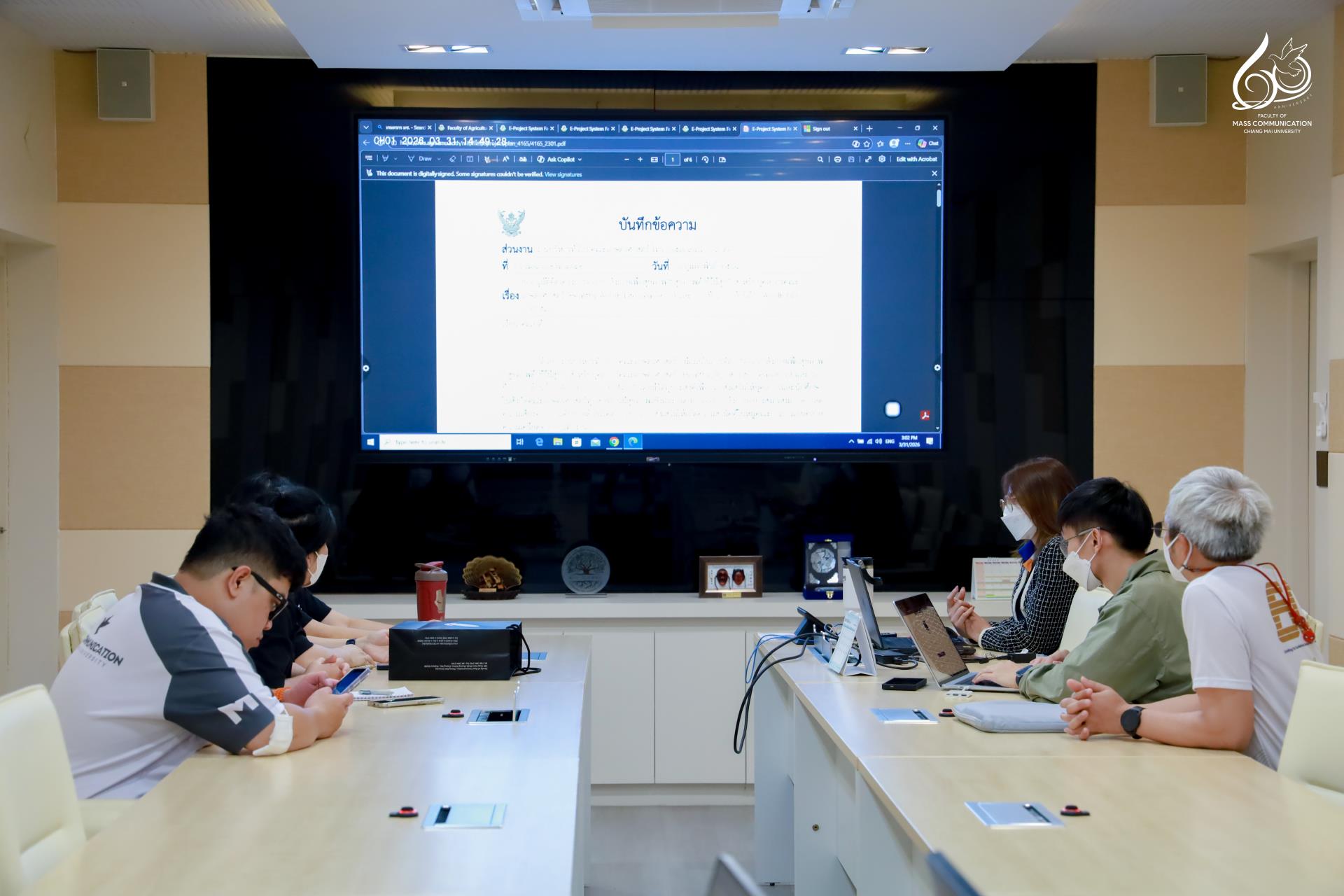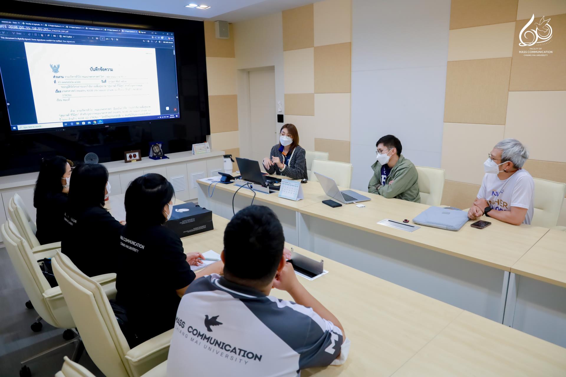 คณะการสื่อสารมวลชน มหาวิทยาลัยเชียงใหม่ นำโดย นางปิยะวัน จันทราภานนท์ เลขานุการคณะ พร้อมด้วยบุคลากรสายสนับสนุน เข้าศึกษาดูงานและแลกเปลี่ยนเรียนรู้ด้านการจัดโครงการสุขภาพและการใช้แอปพลิเคชันสำหรับจัดเก็บข้อมูลสุขภาพของบุคลากรคณะเกษตรศาสตร์ เพื่อยกระดับแนวทางการดูแลสุขภาวะบุคลากรและพัฒนาระบบบริหารจัดการข้อมูลสุขภาพภายในองค์กรให้มีประสิทธิภาพยิ่งขึ้น ณ ห้องประชุมพงษ์ศักดิ์ ชั้น 1 อาคารเรียนเดิม (AB1) คณะเกษตรศาสตร์ มหาวิทยาลัยเชียงใหม่ ในวันอังคารที่ 31 มีนาคม 2569 เวลา 15.00 – 16.00 น.