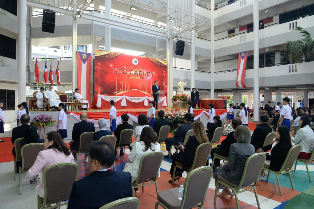 ผู้ช่วยศาสตราจารย์ ดร.ธัญญานุภาพ อานันทนะ รองอธิการบดีมหาวิทยาลัยเชียงใหม่ เป็นประธานในพิธีมอบรางวัลเกียรติยศเชิดชูเกียรตินักเรียนที่สร้างชื่อเสียงให้แก่โรงเรียน “MC RED CARPET” ประจำปีการศึกษา 2567 ภายในงานประกอบด้วยพิธีวางพวงมาลาสักการะนักบุญหลุยส์ กล่าวเปิดงานและให้โอวาทแก่นักเรียนที่ได้รับรางวัล พิธีมอบรางวัล MC Elite Award ระดับ Pound และระดับ Outstanding พิธีมอบโล่เกียริตยศ MC Elite Award ระดับ Extraordinary พิธีมอบเสื้อสามารถให้แก่นักเรียนที่ได้รับรางวัลเกียรติยศ MC Prestige Award พิธีมอบเกียรติบัตรให้กับนักเรียนระดับชั้นมัธยมศึกษาปีที่ 6 ที่ได้รับรางวัล MC Glory Award และขับร้องเพลงมาร์ชมงฟอร์ต โดยมี ม.ธีรภัทร์ วิโรจน์ หัวหน้าฝ่ายวิชาการ ประธานดำเนินงาน กล่าวรายงาน ภราดา ดร.ชำนาญ เหล่ารักผล ผู้อำนวยการโรงเรียน ร่วมมอบรางวัลและมอบของที่ระลึก พร้อมด้วยคณาจารย์ เจ้าหน้าที่ ผู้ปกครองและนักเรียนร่วมแสดงความยินดี ณ ลานเอนกประสงค์ มงฟอร์ตอารีน่า โรงเรียนมงฟอร์ตวิทยาลัย วันอังคารที่ 11 กุมภาพันธ์ พ.ศ. 2568