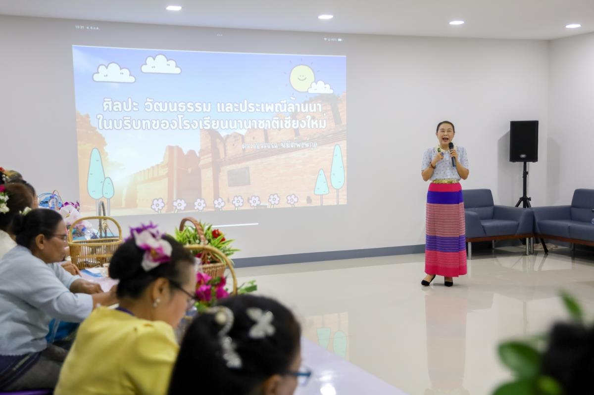 เนื้อหาการอบรมในครั้งนี้ เป็นการบรรยายและแลกเปลี่ยนประสบการณ์ เรื่อง ความหลากหลายทางวัฒนธรรมในโรงเรียนนานาชาติเชียงใหม่ และความสำคัญของการสอดแทรกศิลปวัฒนธรรมล้านนา ในการเรียนการสอนและกิจกรรมในโรงเรียนนานาชาติ การจัดกิจกรรมต่างๆ ภายในโรงเรียน มุ่งเน้นการเรียนรู้วิถีชีวิตคนเมืองและวัฒนธรรมล้านนา มุ่งเน้นให้นักเรียนเป็นศูนย์กลางการเรียนรู้ ไม่ใช้การบังคับร่วมกิจกรรมแต่เป็นไปด้วยความสมัครใจ โดยมี ดร.วรวรรณ นิมิตพงษ์กุล เป็นวิทยากร ซึ่งกิจกรรมที่ได้รับความสนใจจากนักเรียนและครูชาวต่างชาติเป็นอย่างมาก ได้แก่ การฟ้อนเมือง การแต่งกายแบบพื้นเมือง ประเพณียี่เป็ง ศิลปหัตถกรรมพื้นบ้าน อาหารพื้นเมือง และดนตรีพื้นเมือง เป็นต้น อีกทั้งวิทยากรได้บรรยายถึงประสบการณ์ การแลกเปลี่ยนวัฒนธรรมและประเพณี ณ สาธารณรัฐเกาหลี โดยการนำทีมช่างฟ้อนจากเชียงใหม่ไปแสดงที่เมืองจินจู สาธารณรัฐเกาหลี