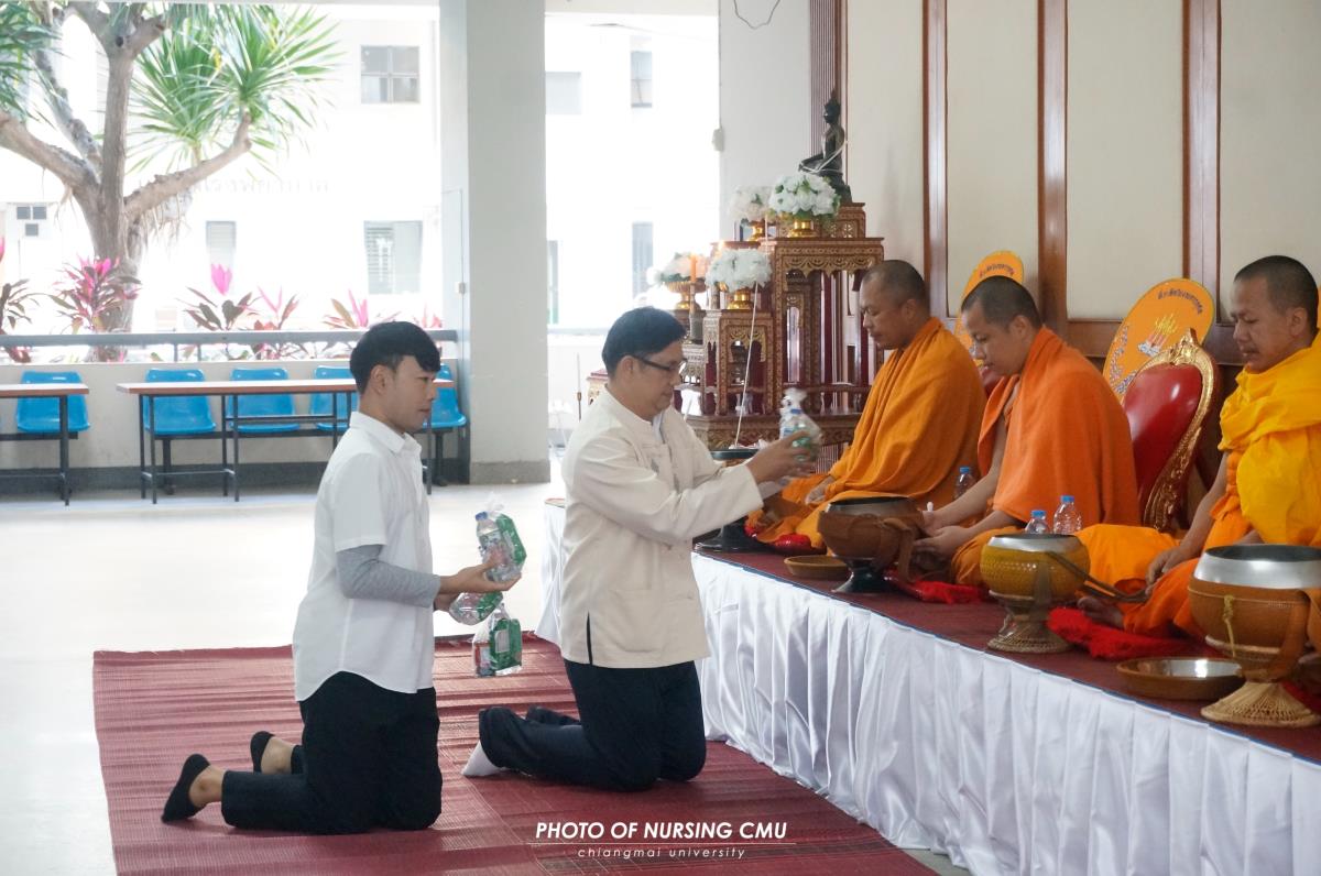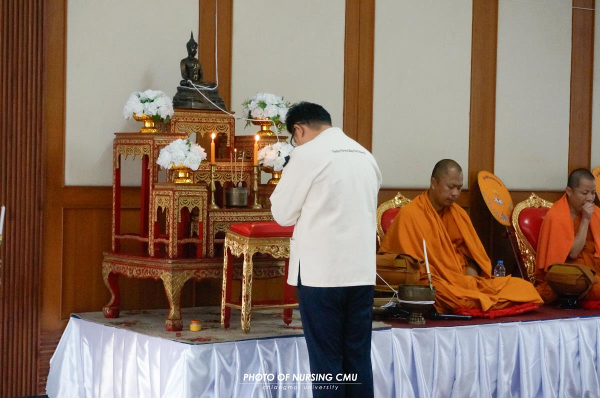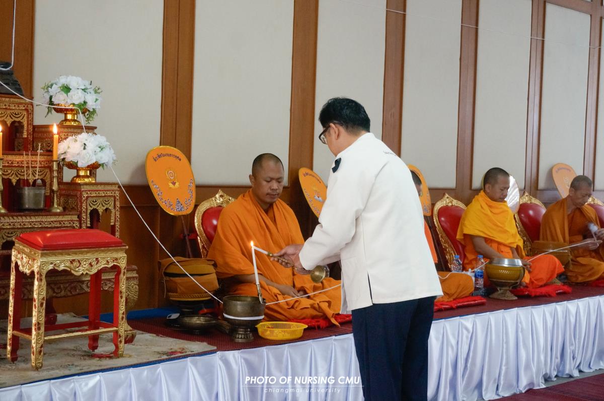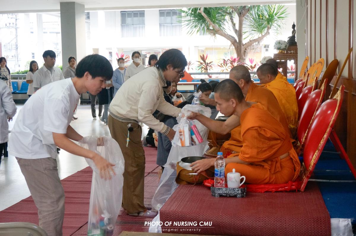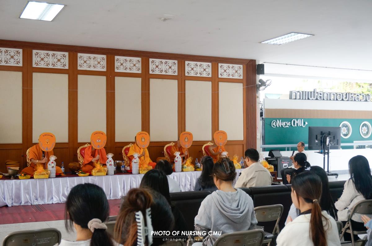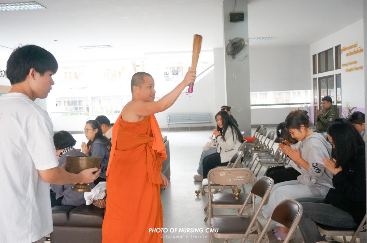 สโมสรนักศึกษา คณะพยาบาลศาสตร์ มหาวิทยาลัยเชียงใหม่ จัดพิธีทำบุญหอพักนักศึกษาพยาบาล 1 ประจำปีการศึกษา 2568 โดยมี ผู้ช่วยศาสตราจารย์ ดร.อนนท์ วิสุทธิ์ธนานนท์ ผู้ช่วยคณบดี เป็นประธานในพิธี โดยได้นิมนต์พระสงฆ์จำนวน 5 รูปมาประกอบพิธีกรรมทางศาสนา ณ ข่วงม่วนใจ๋ อาคาร 2 เพื่อเสริมสร้างความเป็นสิริมงคลแก่นักศึกษาและบุคลากรที่พักอาศัยอยู่ในหอพัก ในโอกาสนี้ได้มอบรางวัลห้องพักสะอาดให้แก่นักศึกษาพยาบาลทุกชั้นปีที่ผ่านการประเมินจากคณะกรรมการหอพักของคณะฯ เมื่อวันอาทิตย์ที่ 11 มกราคม 2569