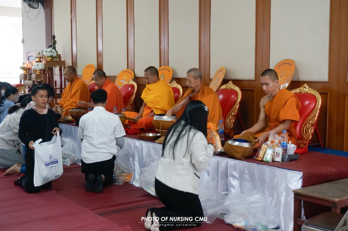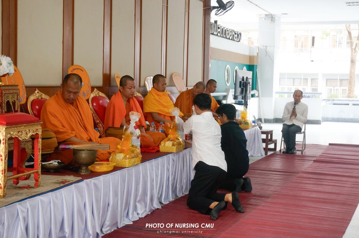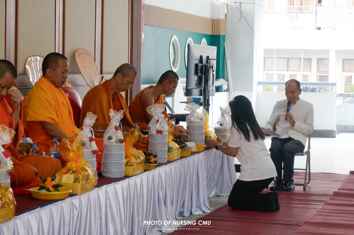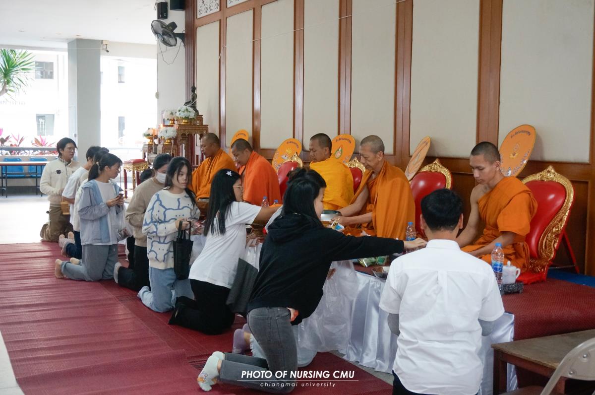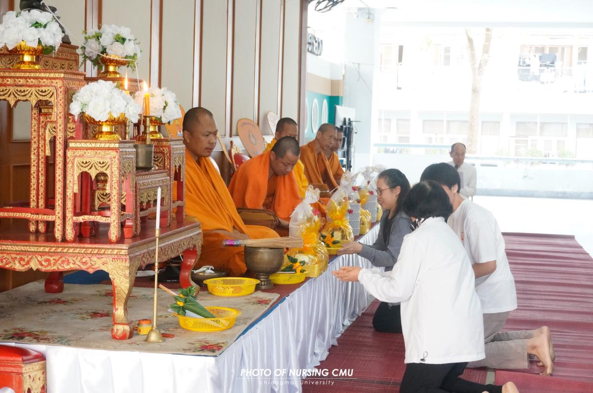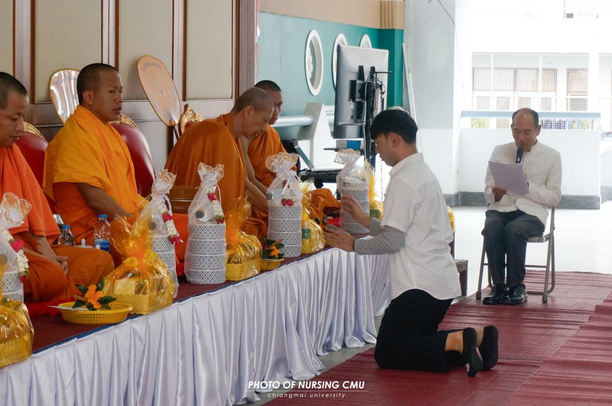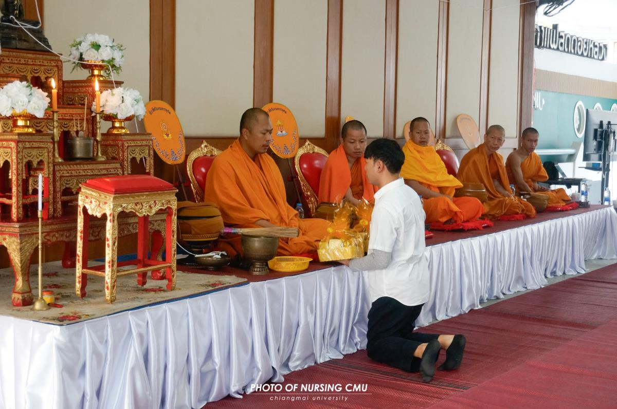 สโมสรนักศึกษา คณะพยาบาลศาสตร์ มหาวิทยาลัยเชียงใหม่ จัดพิธีทำบุญหอพักนักศึกษาพยาบาล 1 ประจำปีการศึกษา 2568 โดยมี ผู้ช่วยศาสตราจารย์ ดร.อนนท์ วิสุทธิ์ธนานนท์ ผู้ช่วยคณบดี เป็นประธานในพิธี โดยได้นิมนต์พระสงฆ์จำนวน 5 รูปมาประกอบพิธีกรรมทางศาสนา ณ ข่วงม่วนใจ๋ อาคาร 2 เพื่อเสริมสร้างความเป็นสิริมงคลแก่นักศึกษาและบุคลากรที่พักอาศัยอยู่ในหอพัก ในโอกาสนี้ได้มอบรางวัลห้องพักสะอาดให้แก่นักศึกษาพยาบาลทุกชั้นปีที่ผ่านการประเมินจากคณะกรรมการหอพักของคณะฯ เมื่อวันอาทิตย์ที่ 11 มกราคม 2569