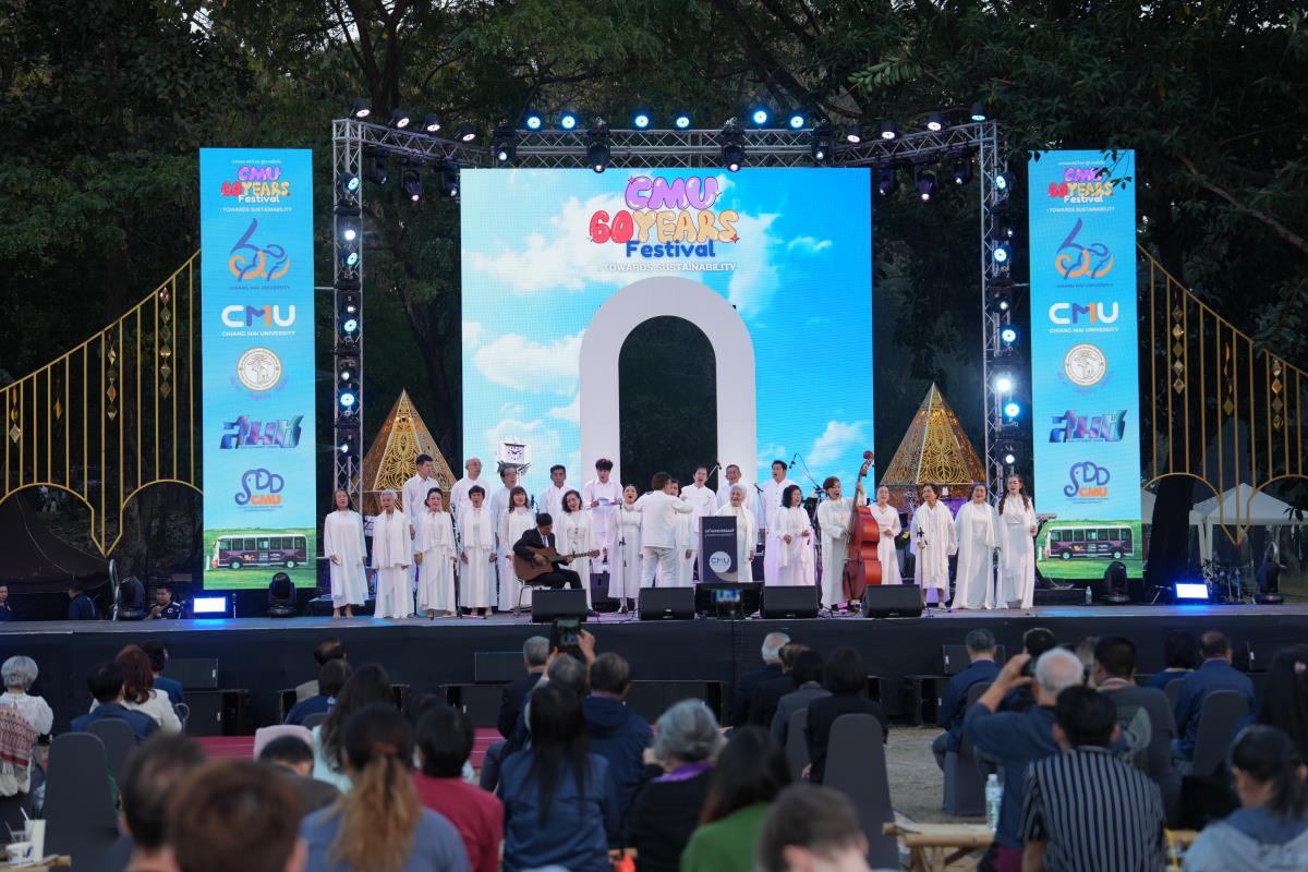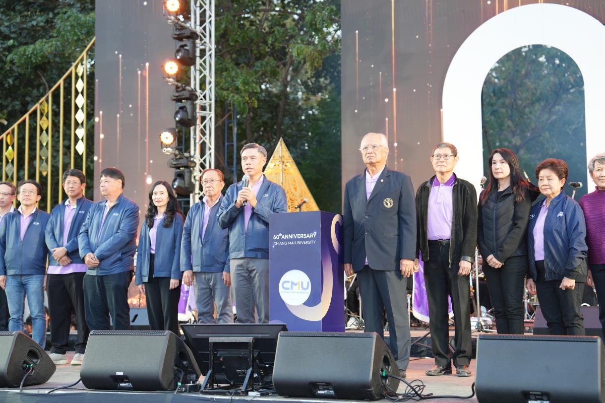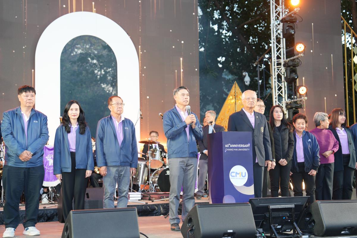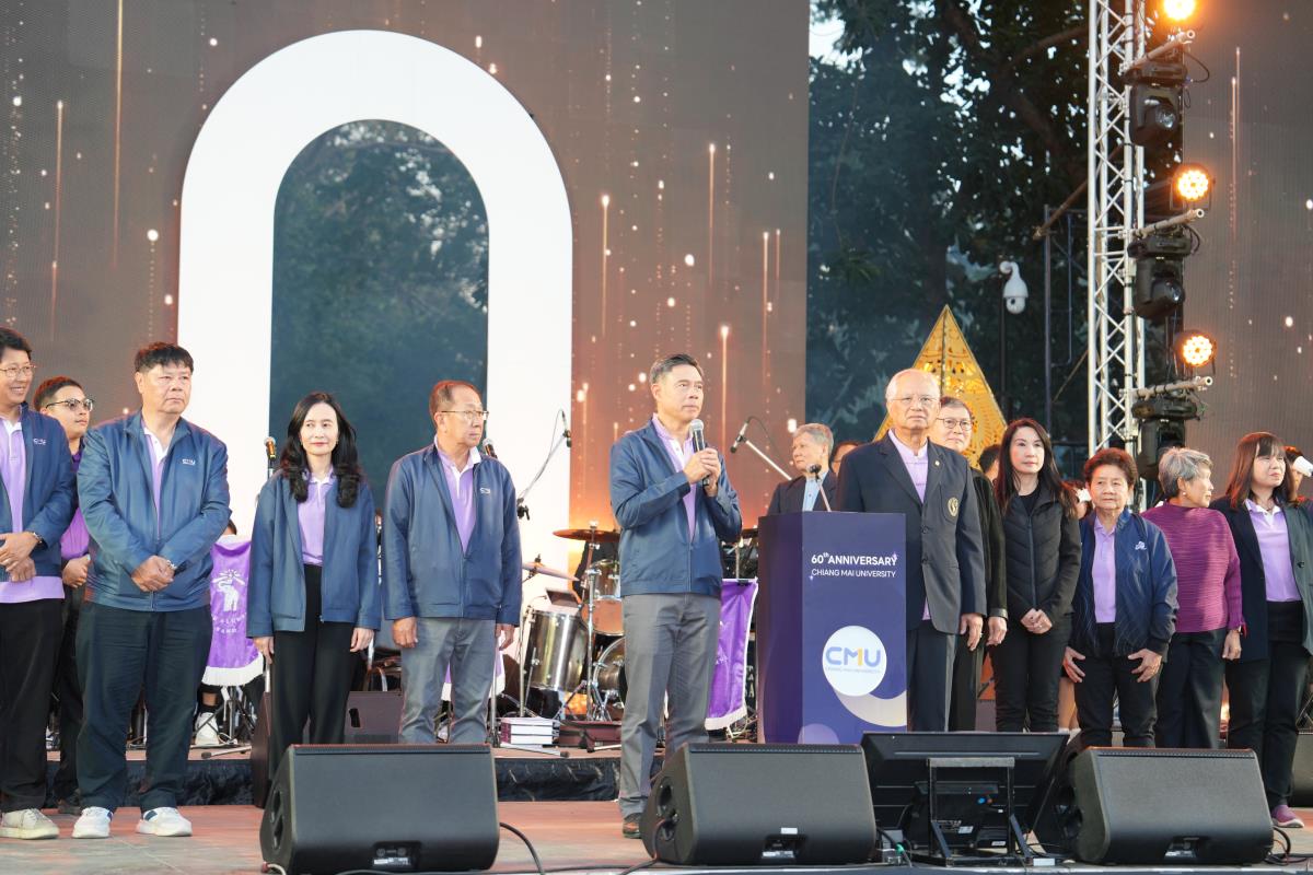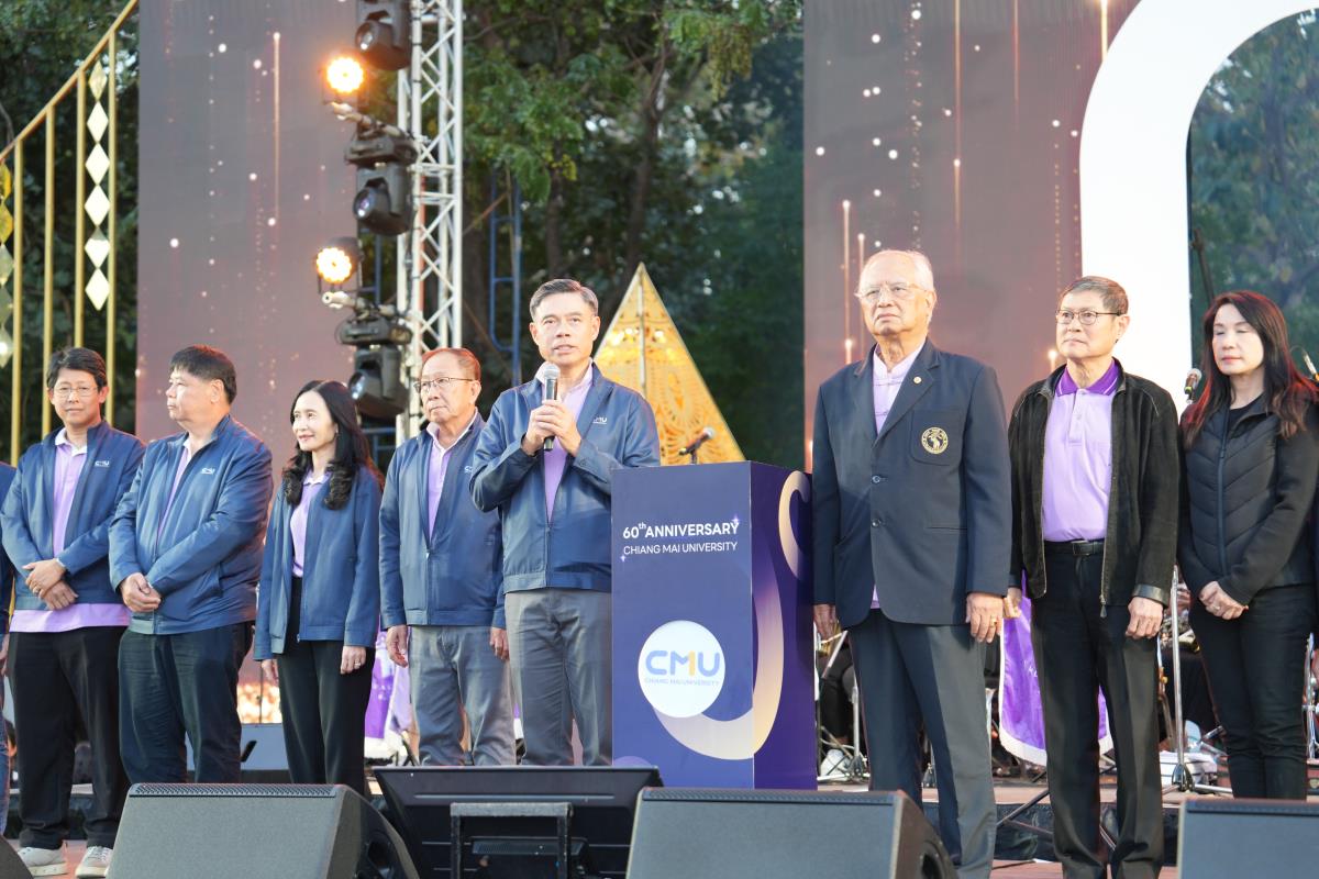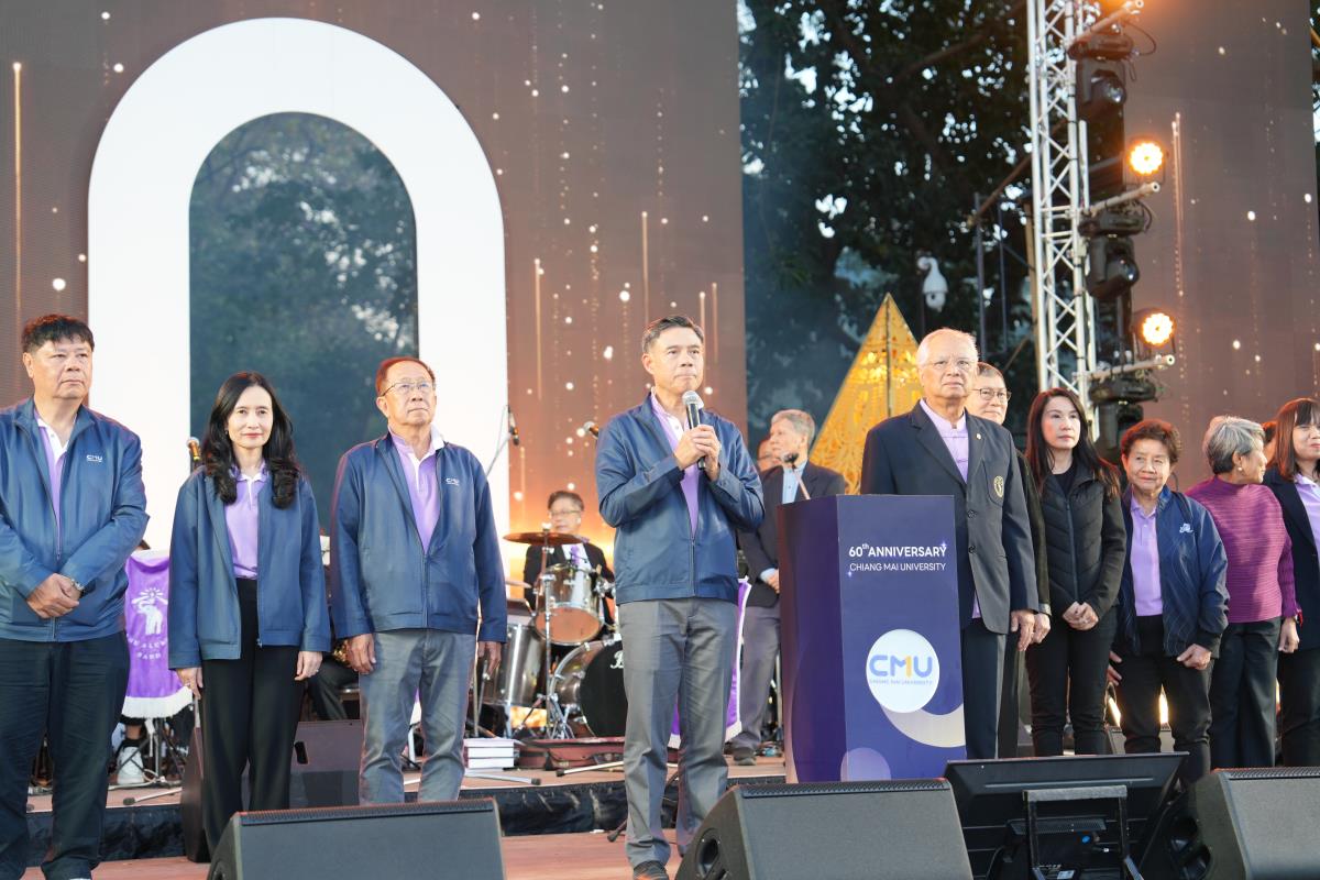 ศาสตราจารย์ ดร.นพ.พงษ์รักษ์ ศรีบัณฑิตมงคล อธิการบดีมหาวิทยาลัยเชียงใหม่ กล่าวเปิดงานมกิจกรรม มหกรรม 60 ปี สู่ความยั่งยืน CMU 60th Festival :Towards Sustainability เพื่อฉลองครบรอบ 60 ปี แห่งการสถาปนามหาวิทยาลัย ภายในงานพบกับ วันที่ระลึก “วันทรงดนตรี” เพื่อน้อมรำลึกถึงพระอัจฉริยภาพทางด้านดนตรีพระบาทสมเด็จพระบรมชนกาธิเบศรมหาภูมิพลอดุลยเดชมหาราชบรมนาถบพิตร ทรงดนตรีร่วมกับวงดนตรีสากล สโมสรนักศึกษามหาวิทยาลัยเชียงใหม่ เมื่อวันที่ 10 มกราคม 2518 ในงานอุทยานสโมสร, นิทรรศการครบรอบ 60 ปี แห่งการสถาปนามหาวิทยาลัยเชียงใหม่ และงานสานศิลป์ กิ๋น แอ่ว อู้ ระหว่างวันที่ 19 - 23 มกราคม 2568 เวลา 15.00 - 22:00 ณ ลานสัก และลานสังคีต มหาวิทยาลัยเชียงใหม่