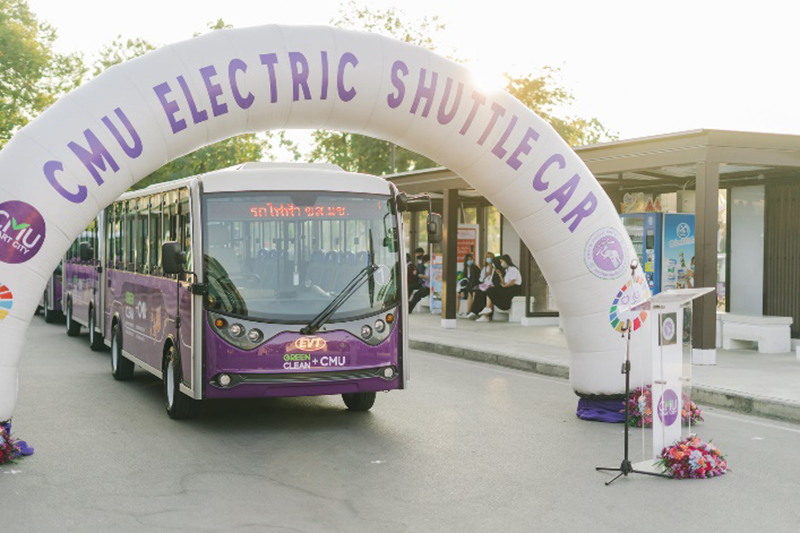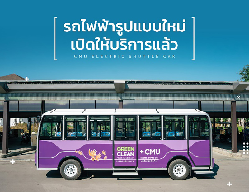 ขนส่งมวลชนมหาวิทยาลัยเชียงใหม่ เปิดตัวรถไฟฟ้ารูปแบบใหม่ (CMU Electric Shuttle Car) จำนวน 40 คัน ด้วยคุณสมบัติยานยนต์ที่ขับเคลื่อนด้วยพลังงานไฟฟ้าซึ่งถือเป็นพลังงานสะอาด ให้บริการครอบคลุมการสัญจรทุกพื้นที่ของมหาวิทยาลัย ตั้งแต่เวลา 7.00 น. – 22.00 น. ตลอดทั้ง 7 วันต่อสัปดาห์ ช่วยอำนวยความสะดวกให้กับนักศึกษาและบุคลากร ซึ่งจากการดำเนินงานที่ผ่านมา มีผู้ใช้บริการสะสมมากกว่า 5,700,000 คน รวมระยะทางที่ให้บริการมากกว่า 5.8 ล้านกิโลเมตร มีส่วนช่วยลดการปล่อยก๊าซเรือนกระจกได้ 1,650 ตันคาร์บอนไดออกไซด์ ด้วยเป้าหมายการเป็นผู้นำในการสร้างและการจัดการเทคโนโลยีนวัตกรรมสีเขียวที่ยั่งยืน