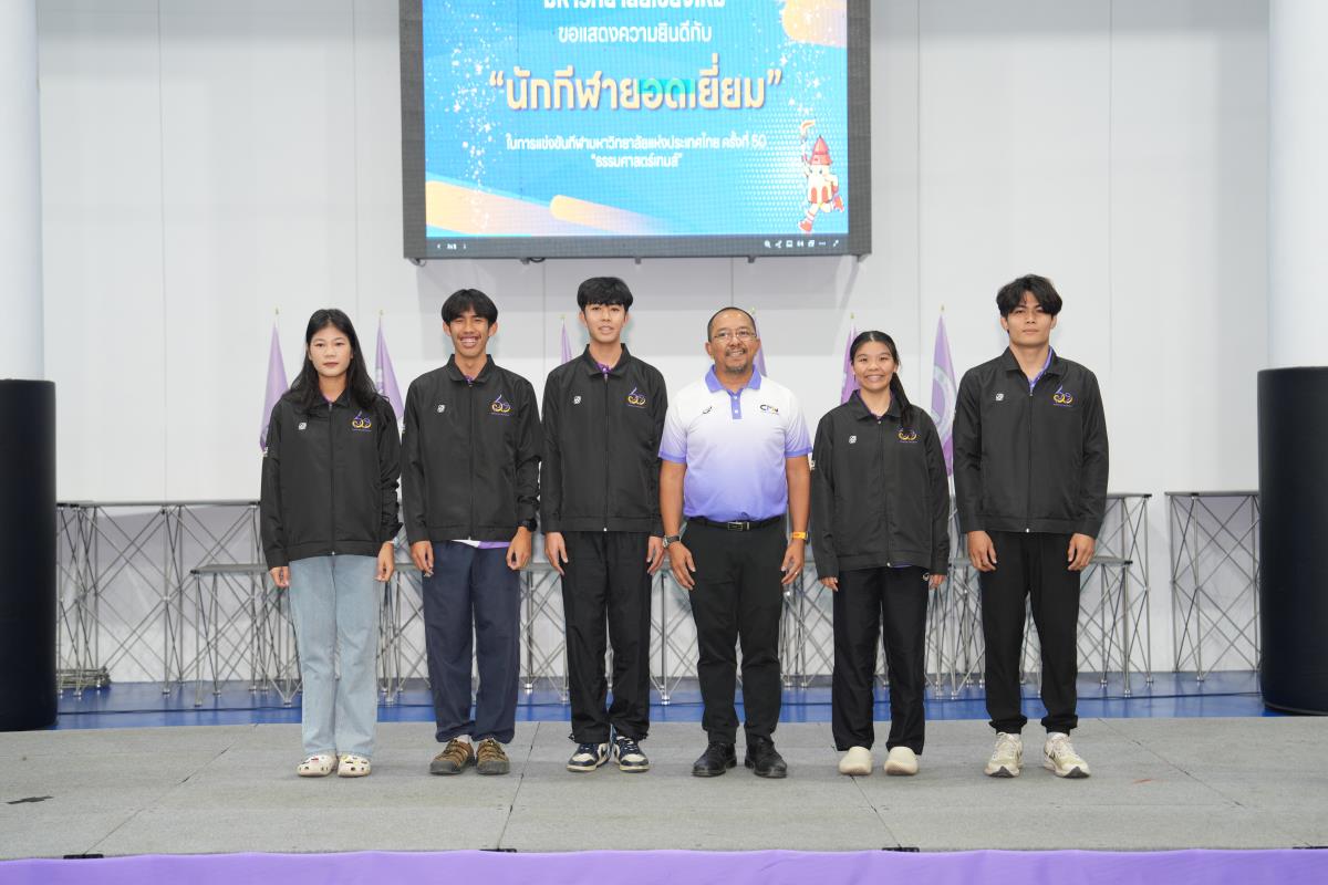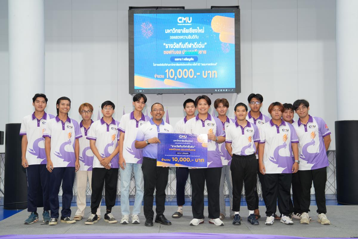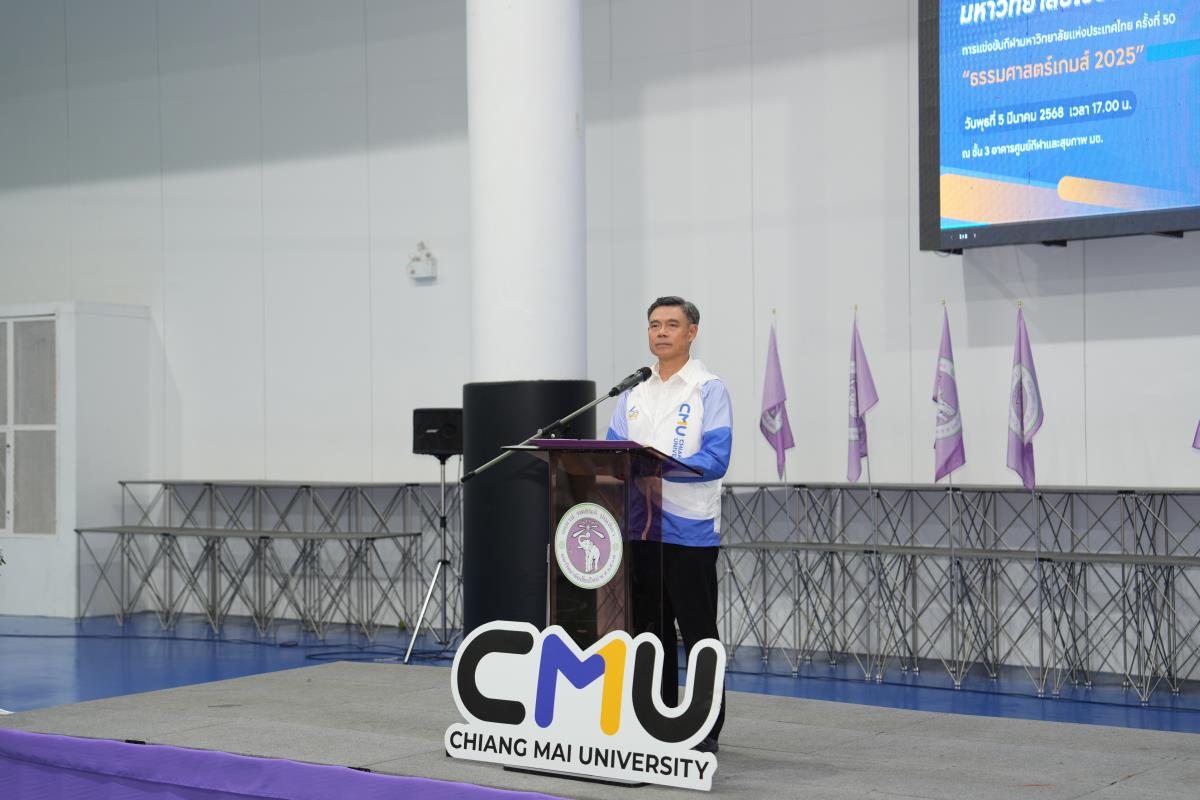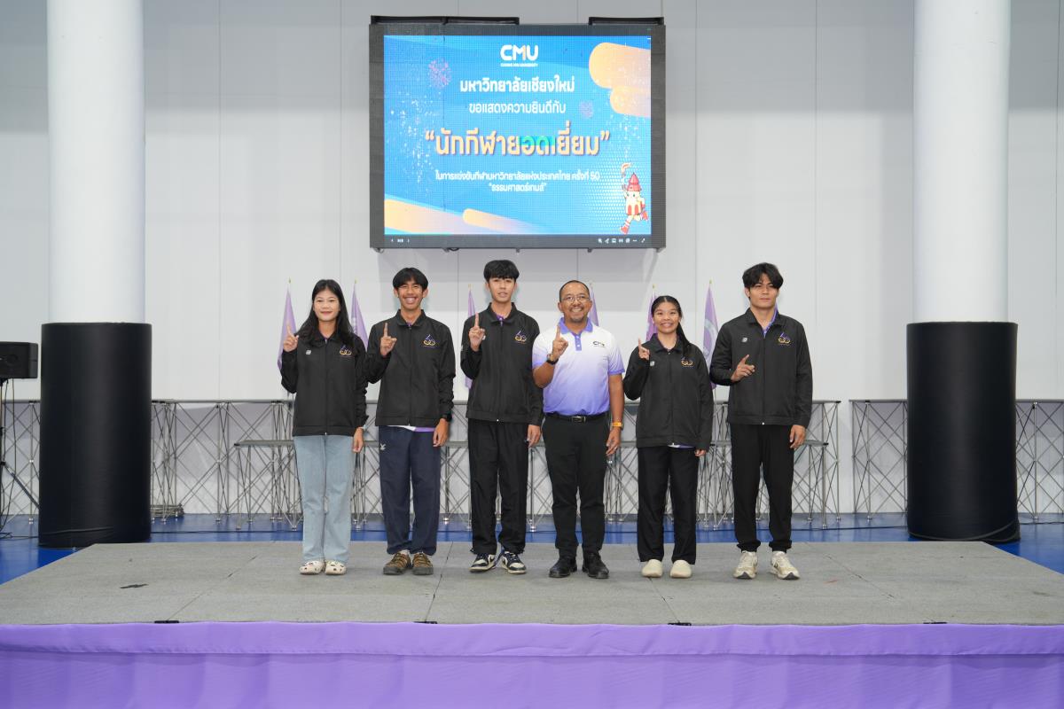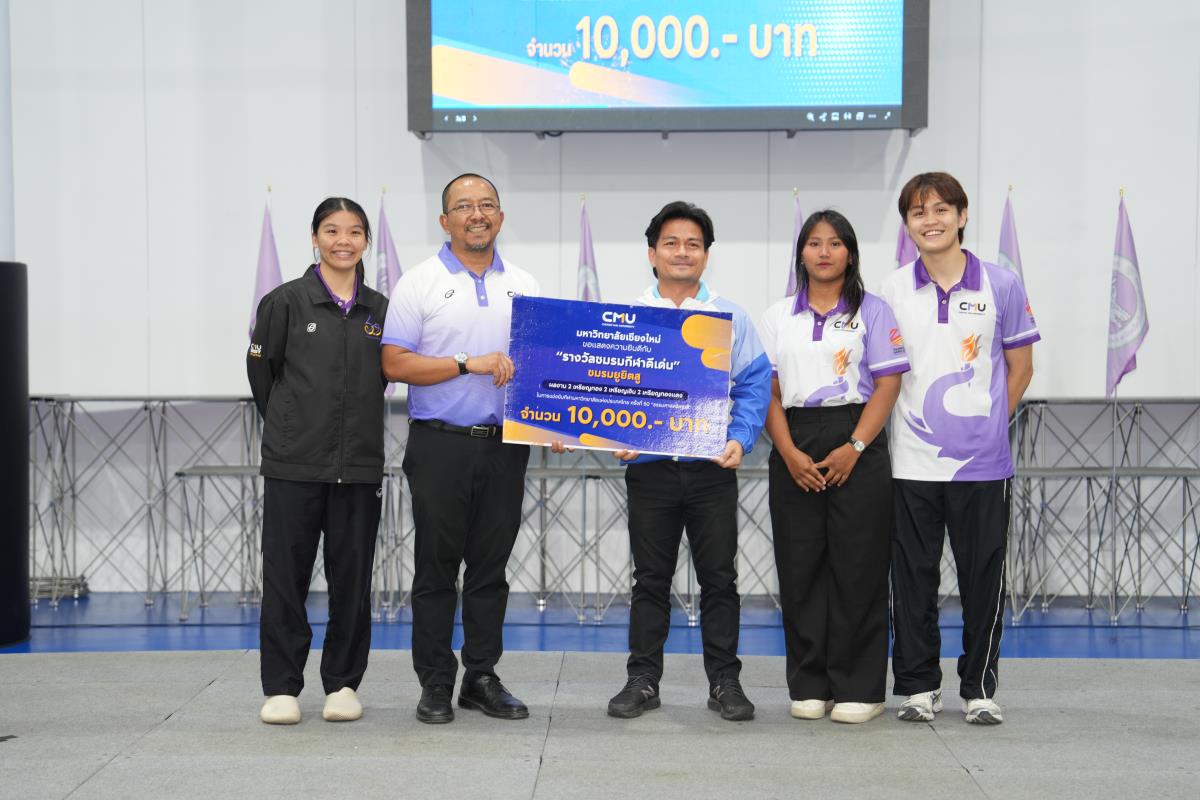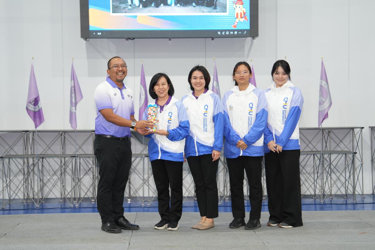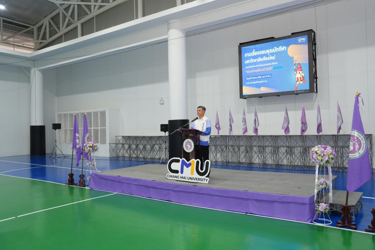ศาสตราจารย์ ดร.นายแพทย์พงษ์รักษ์ ศรีบัณฑิตมงคล อธิการบดีมหาวิทยาลัยเชียงใหม่ พร้อมด้วยคณะผู้บริหารมหาวิทยาลัยเชียงใหม่ มอบเสื้อให้แก่นักกีฬายอดเยี่ยมฝ่ายชายและฝ่ายหญิง มอบเงินรางวัลทีมกีฬาดีเด่น มอบเงินรางวัลชมรมกีฬาดีเด่น และมอบเงินสนับสนุนนักกีฬาที่ได้รับเหรียญรางวัล ที่เข้าร่วมการแข่งขันกีฬามหาวิทยาลัยแห่งประเทศไทย ครั้งที่ 50 “ธรรมศาสตร์เกมส์” ระหว่างวันที่ 9-18 มกราคม 2568 ณ มหาวิทยาลัยธรรมศาสตร์ ศูนย์รังสิต จังหวัดปทุมธานี และกล่าวขอบคุณผู้ที่เกี่ยวข้องและให้การสนับสนุน สำหรับผลงานของทัพนักกีฬามหาวิทยาลัยเชียงใหม่ อยู่อันดับที่ 10 จากสถาบันอุดมศึกษาที่เข้าร่วมการแข่งขันกว่า 110 สถาบัน คว้าชัย 6 เหรียญทอง 13 เหรียญเงิน และ 33 เหรียญทองแดง รวม 52 เหรียญ มีนักกีฬามหาวิทยาลัยเชียงใหม่ได้รับเหรียญรางวัล จำนวน 88 คน และได้รับทุนสนับสนุนการศึกษาสำหรับนักกีฬาที่ทำชื่อเสียงให้มหาวิทยาลัยเชียงใหม่ในการแข่งขันกีฬามหาวิทยาลัยแห่งประเทศไทย ครั้งที่ 50 ดังกล่าว จำนวนมูลค่ารวมทั้งสิ้น 483,000.-บาท (สี่แสนแปดหมื่นสามพันบาทถ้วน) ณ อาคารศูนย์กีฬาและสุขภาพ ชั้น 3 มหาวิทยาลัยเชียงใหม่ เมื่อวันพุธที่ 5 มีนาคม พ.ศ.2568