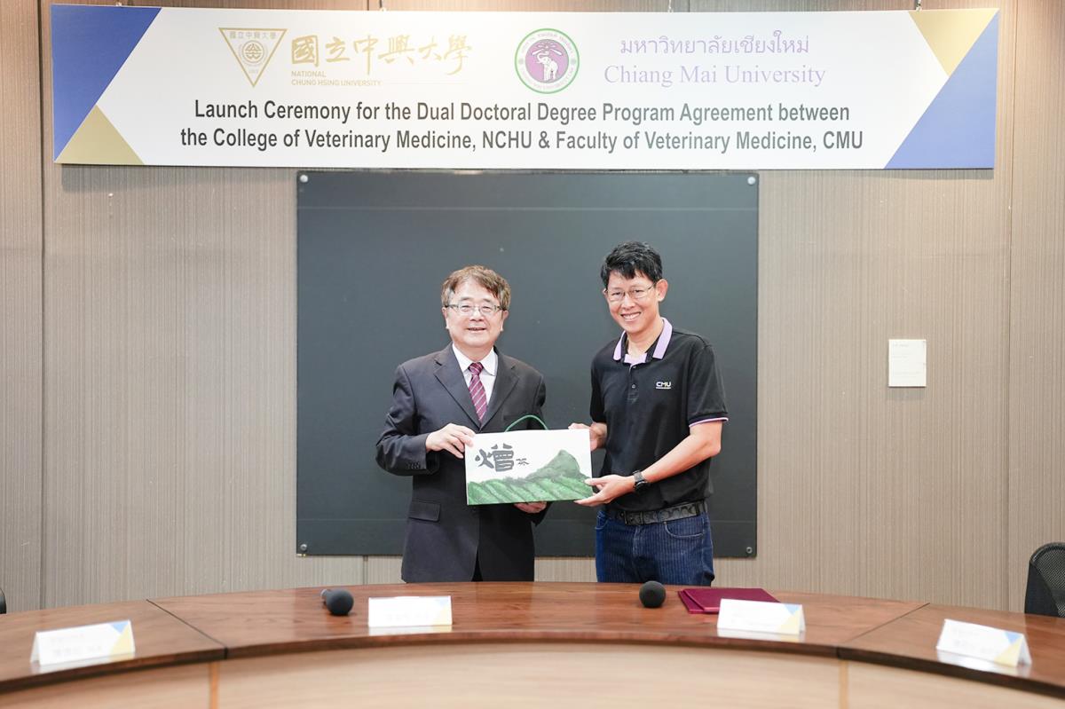 ศ.(เชี่ยวชาญพิเศษ) ดร. น.สพ.กรกฎ งานวงศ์พาณิชย์ คณบดี เดินทางร่วมการเปิดตัว โครงการความร่วมมือปริญญาเอกคู่ (Dual Ph.D. Program) ระหว่างคณะสัตวแพทยศาสตร์ มหาวิทยาลัยเชียงใหม่ และ คณะสัตวแพทยศาสตร์ National Chung Hsing University (NCHU) สาธารณรัฐจีน (ไต้หวัน) โดยได้รับเกียรติจาก Professor Dr. Fuh-Jyh Jan อธิการบดี National Chung Hsing University และ Prof. Dr. Ter-Hsin Chen คณบดีคณะสัตวแพทยศาสตร์ เป็นผู้ลงนามในบันทึกความร่วมมือระหว่างสถาบัน เมื่อวันที่ 3 ธันวาคม 2568 ณ National Chung Hsing University