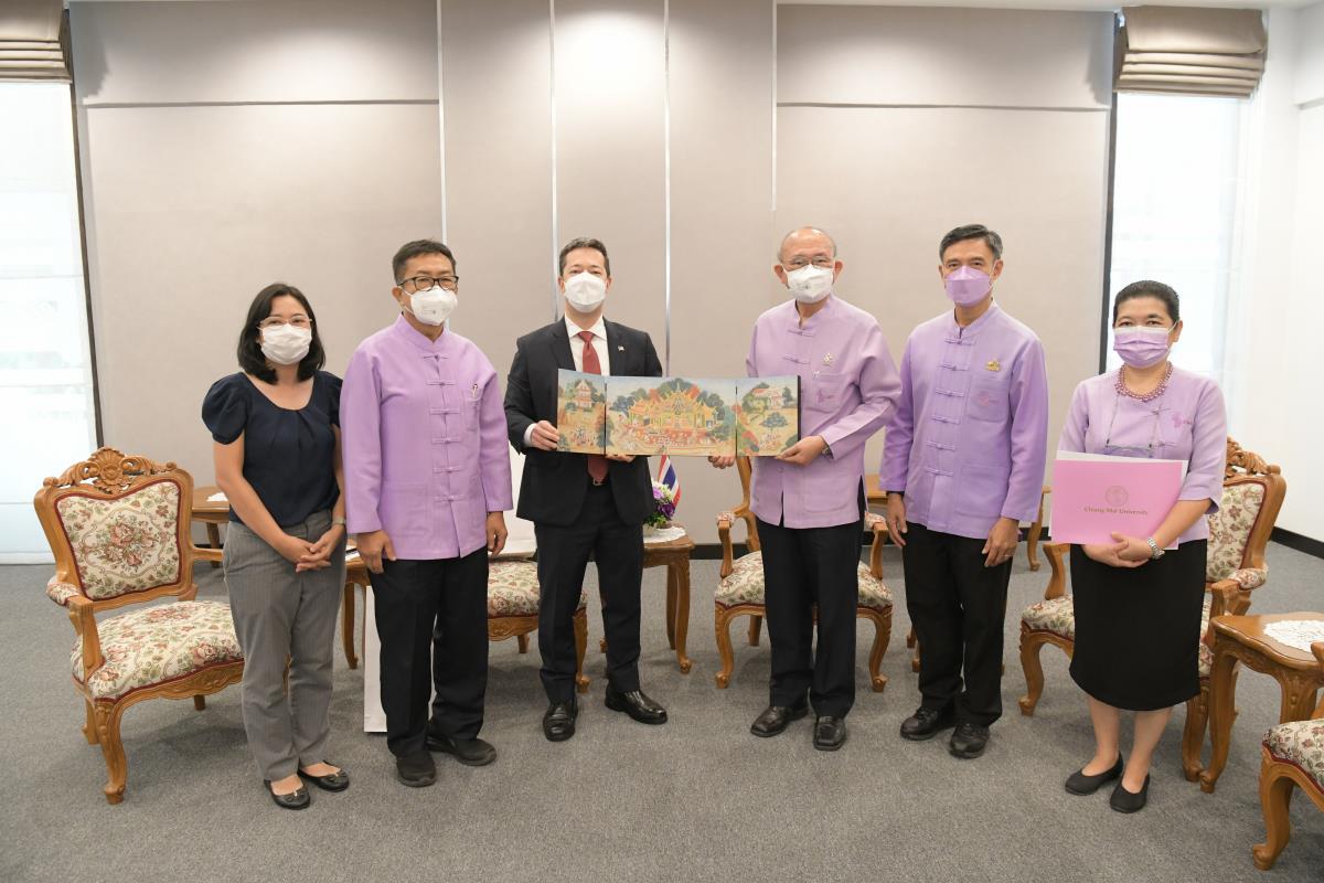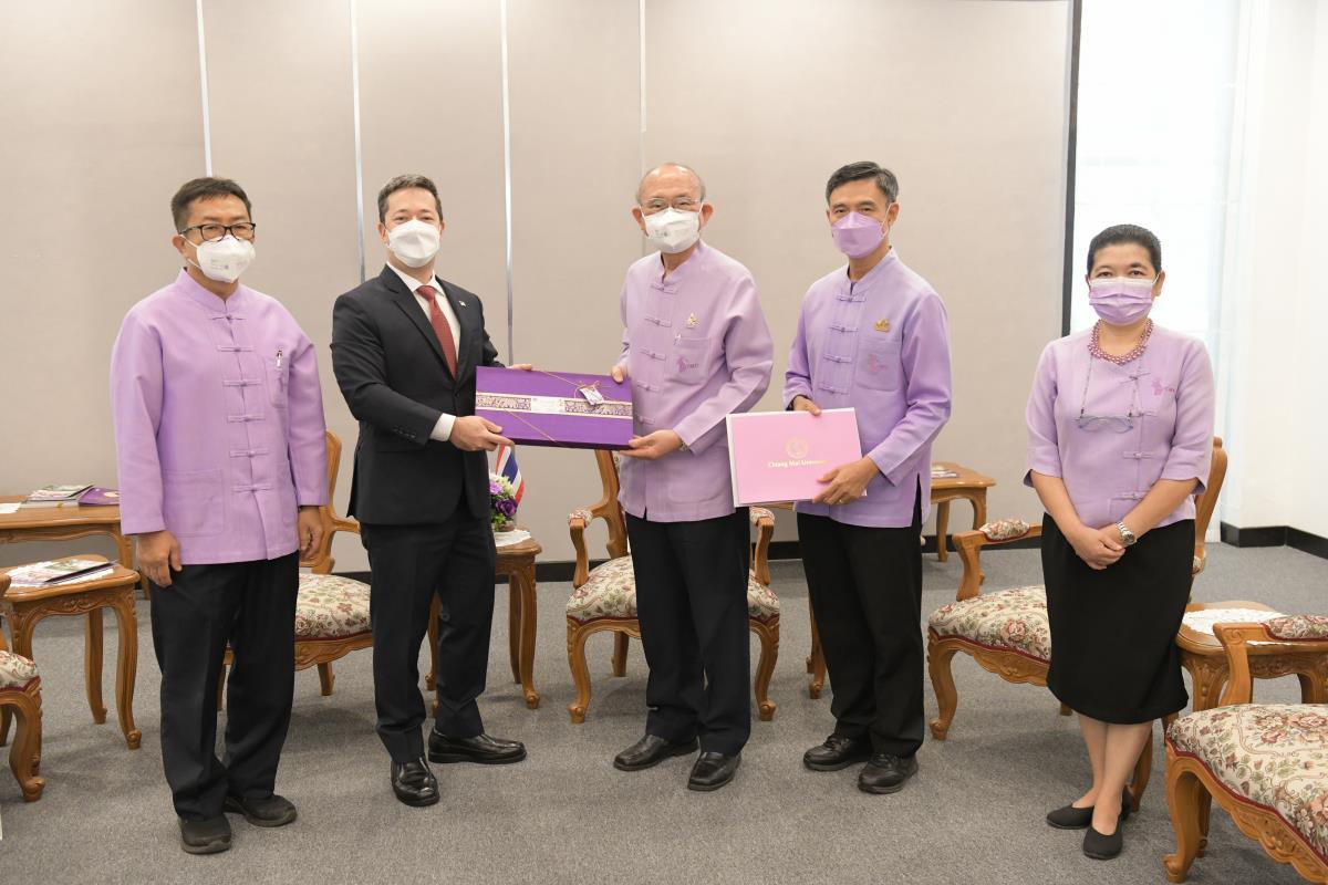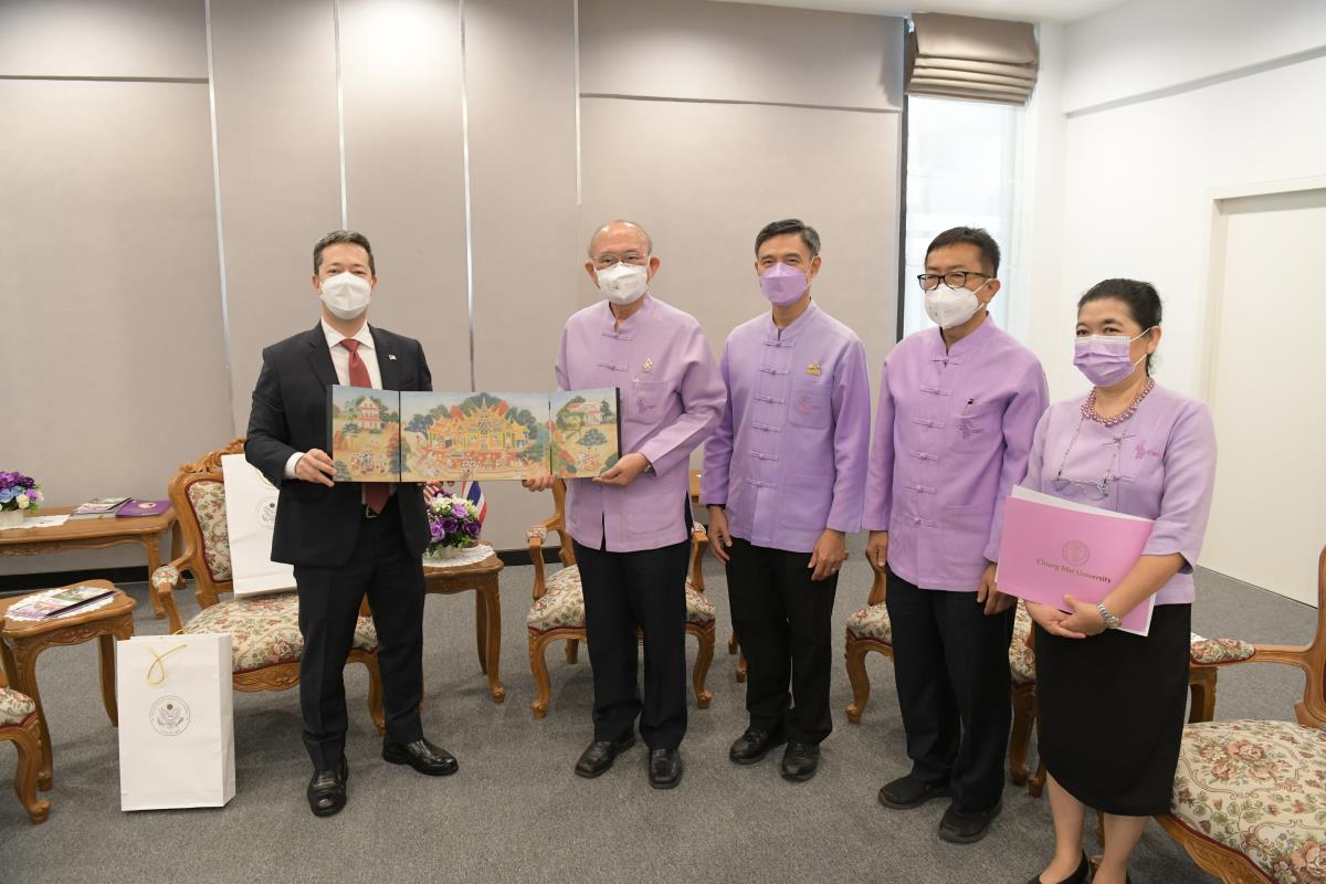 ศาสตราจารย์คลินิก นพ.นิเวศน์ นันทจิต อธิการบดีมหาวิทยาลัยเชียงใหม่ พร้อมด้วยคณะผู้บริหารมหาวิทยาลัยเชียงใหม่ ให้การต้อนรับ นายฌอน เค.โอนีลล์ กงสุลใหญ่สหรัฐอเมริกา เชียงใหม่ ในโอกาสครบวาระการดำรงตำแหน่งกงสุลใหญ่สหรัฐอเมริกา เชียงใหม่ และเยี่ยมคารวะผู้บริหารมหาวิทยาลัยเชียงใหม่ ณ ห้องหม่อมหลวงปิ่น มาลากุล สำนักงานมหาวิทยาลัย มหาวิทยาลัยเชียงใหม่ เมื่อวันอังคารที่ 12 กรกฎาคม พ.ศ.2565