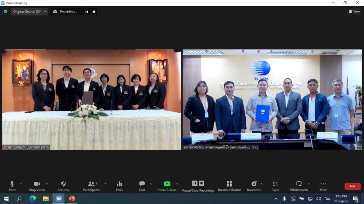 สถาบันวิจัยวิทยาศาสตร์สุขภาพเข้าร่วมพิธีลงนามบันทึกความเข้าใจ ระหว่าง สถาบันวิจัยวิทยาศาสตร์และเทคโนโลยีแห่งประเทศไทย กับ มหาวิทยาลัยเชียงใหม่ โดย สถาบันวิจัยวิทยาศาสตร์สุขภาพ