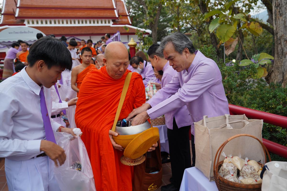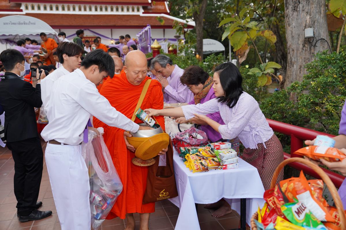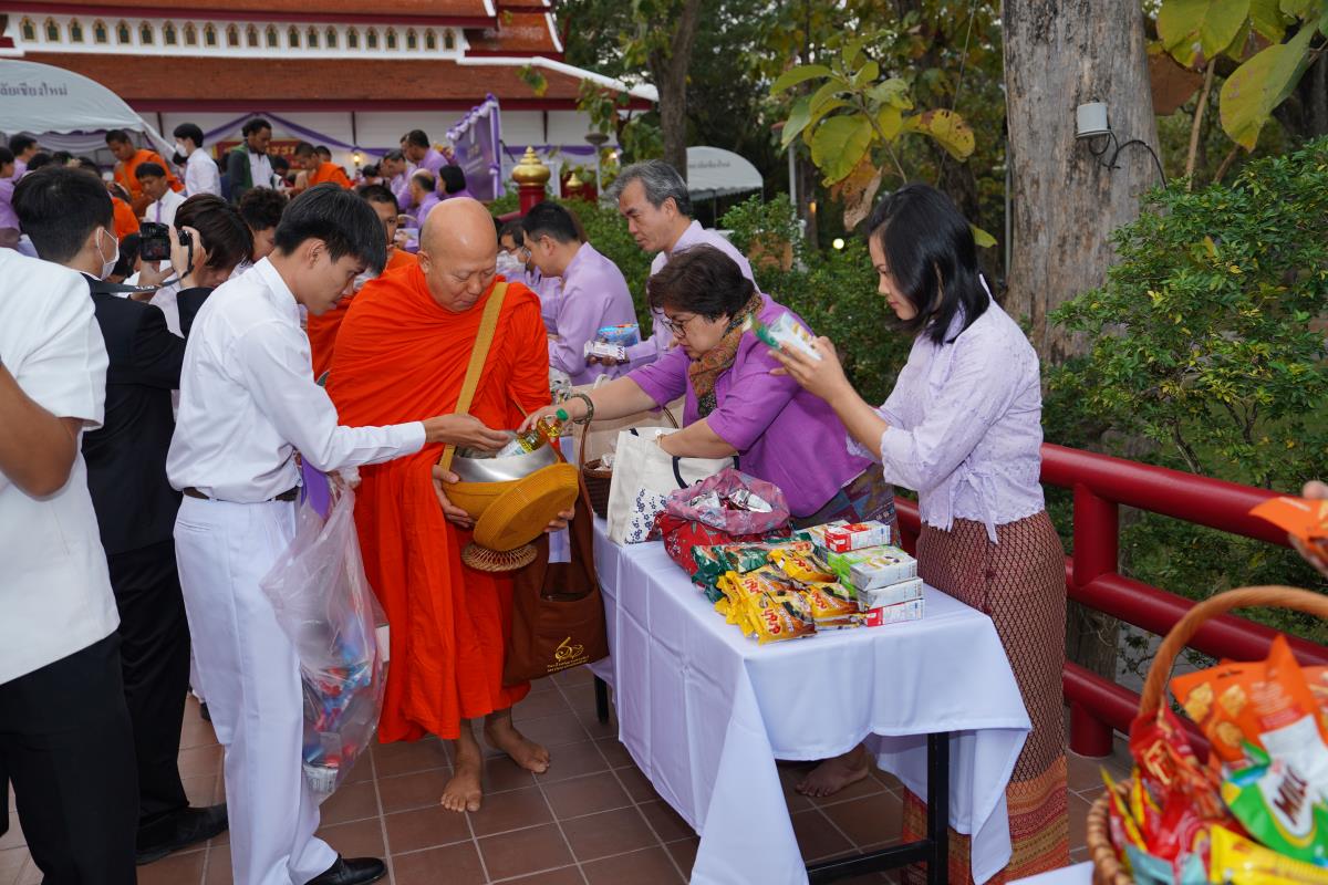 พิธีทำบุญตักบาตร พระสงฆ์ 60 รูป เนื่องในโอกาสวันคล้ายวันสถาปนาการมหาวิทยาลัยเชียงใหม่