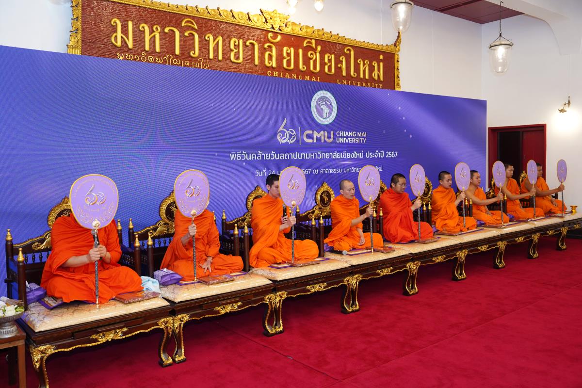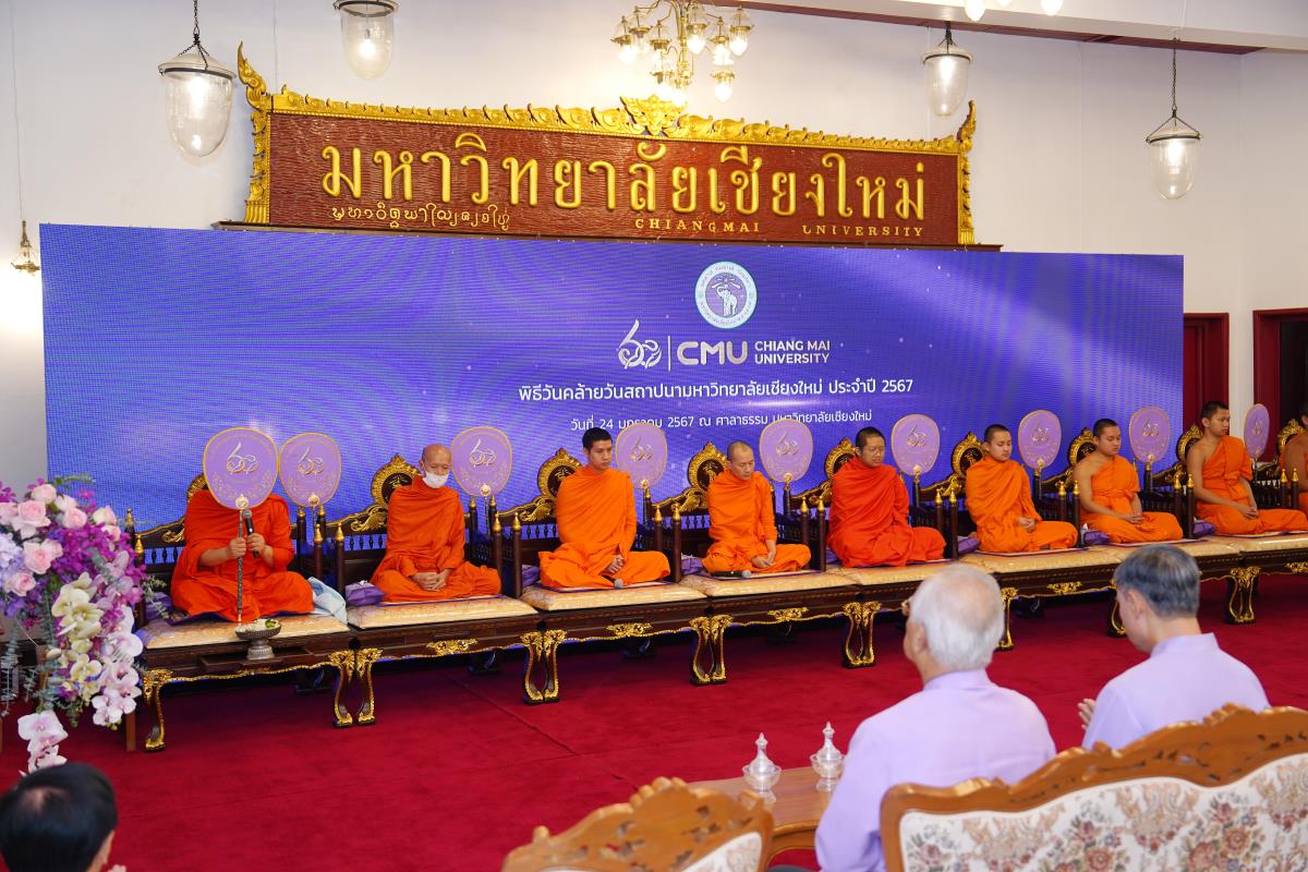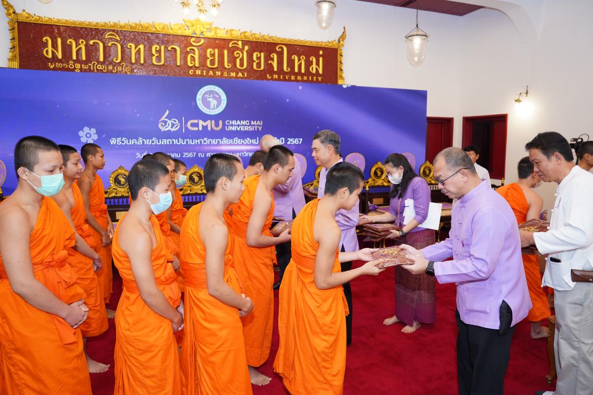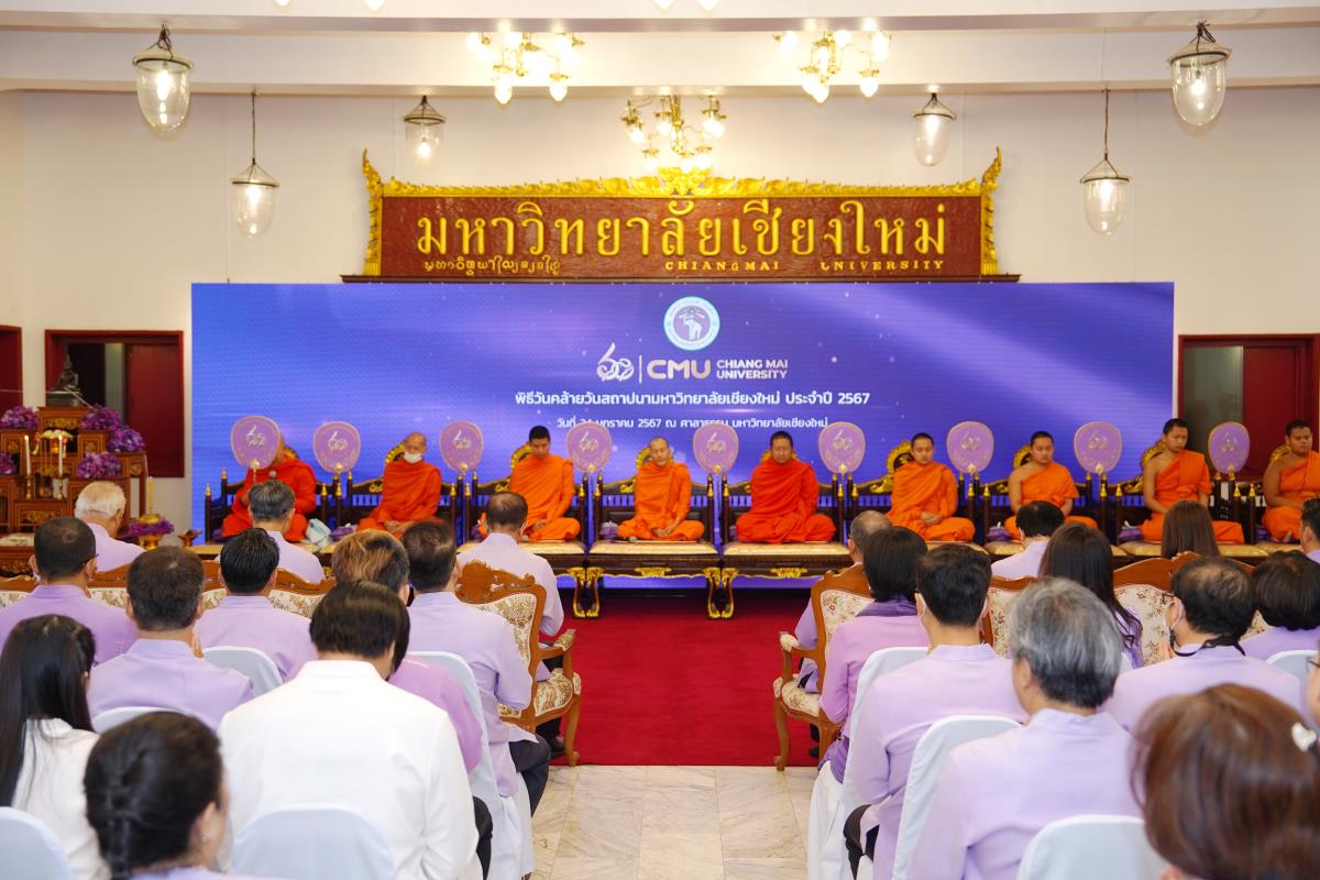 มหาวิทยาลัยเชียงใหม่ จัดพิธีทำบุญตักบาตร พระสงฆ์ 60 รูป เนื่องในโอกาสวันคล้ายวันสถาปนาการมหาวิทยาลัยเชียงใหม่ 24 มกราคม 2567 โดยมี ศาสตราจารย์เกียรติคุณ ดร.พงษ์ศักดิ์ อังกสิทธิ์ อดีตอธิการบดีมหาวิทยาลัยเชียงใหม่ เป็นประธานในพิธี พร้อมด้วยศาสตราจารย์ ดร.นพ.พงษ์รักษ์ ศรีบัณฑิตมงคล อธิการบดีมหาวิทยาลัยเชียงใหม่ คณะผู้บริหาร คณาจารย์ เจ้าหน้าที่ และนักศึกษา ร่วมพิธีฯ ณ ศาลาธรรม มหาวิทยาลัยเชียงใหม่ เมื่อวันพุธที่ 24 มกราคม พ.ศ. 2567