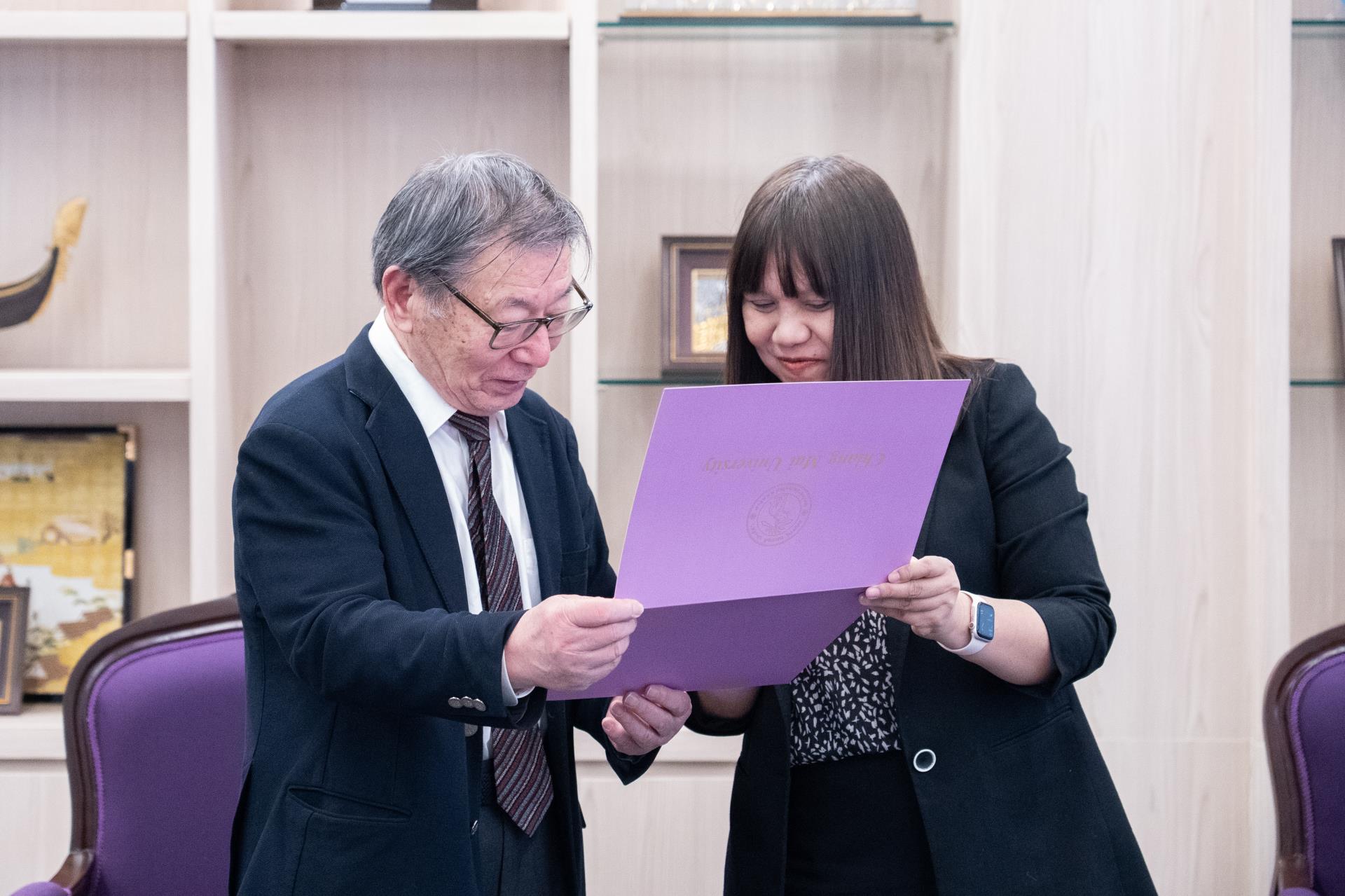 รองศาสตราจารย์ ดร.วินิตา บุณโยดม รองอธิการบดีมหาวิทยาลัยเชียงใหม่ ให้การต้อนรับ Professor Kuniaki Dohda ที่ปรึกษาพิเศษอธิการบดี จาก University of Toyama ประเทศญี่ปุ่น ในโอกาสเดินทางมาเยือนมหาวิทยาลัยเชียงใหม่ เพื่อร่วมพบปะและปรึกษาหารือเกี่ยวกับแนวทางการสร้างความร่วมมือทางวิชาการและการวิจัยระหว่างสองสถาบัน การหารือในครั้งนี้มีวัตถุประสงค์เพื่อส่งเสริมความสัมพันธ์อันดี แลกเปลี่ยนองค์ความรู้ และต่อยอดเครือข่ายทางการศึกษาในระดับนานาชาติให้มีความเข้มแข็งและยั่งยืนต่อไป โดยการต้อนรับดังกล่าวจัดขึ้น ณ ห้องรับรองหม่อมหลวงปิ่น มาลากุล สำนักงานมหาวิทยาลัย มหาวิทยาลัยเชียงใหม่ เมื่อวันศุกร์ที่ 3 เมษายน 2569