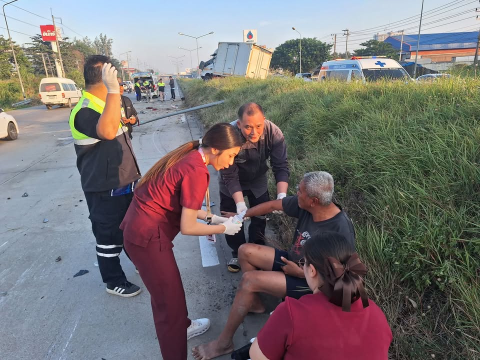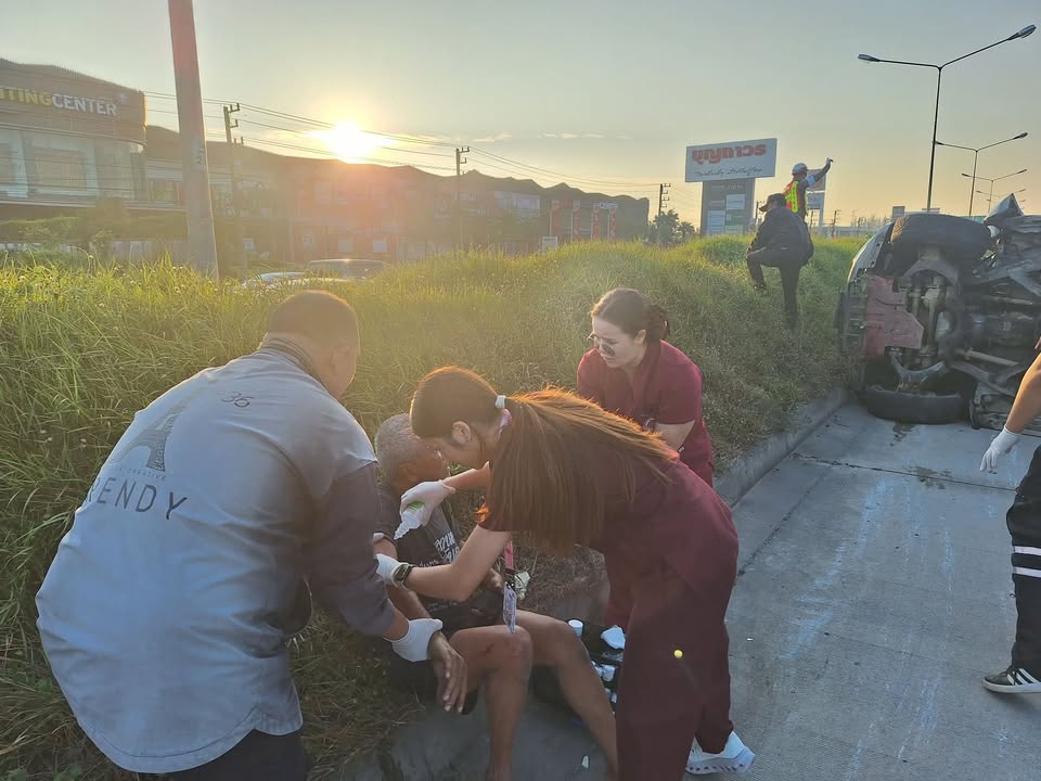 เมื่อช่วงเช้าเวลาประมาณ 07.00 น. ของวันนี้ (11 ธันวาคม 2568) ณ ถนนซุปเปอร์ไฮเวย์เชียงใหม่-ลำปาง ได้ให้การช่วยเหลือชายสูงอายุที่ได้รับบาดเจ็บจากอุบัติเหตุรถเสียหลักพลิกคว่ำบนเกาะกลางถนนและถนนที่ใช้สัญจรจำนวน 2 คัน โดยเป็นรถขนส่งสิ่งของที่มีตู้ทึบสภาพขึ้นคร่อมบริเวณเกาะกลางและอีกคันเป็นกระบะที่ขับพุ่งข้ามเกาะกลางล้มตะแคงอยู่กลางถนน โดยใช้ทักษะและจิตวิญญาณของวิชาชีพในการประเมินอาการ ระดับความรู้สึกตัว สัญญาณชีพและปฐมพยาบาลเบื้องต้น รวมทั้งประสานงานทีมกู้ชีพเพื่อนำส่งผู้ได้รับบาดเจ็บไปรักษาต่อที่โรงพยาบาลต่อไป