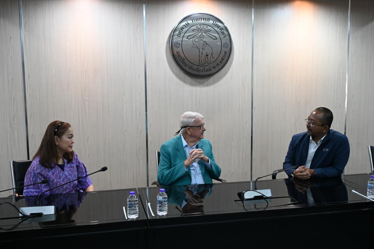 ผู้ช่วยศาสตราจารย์ ดร.จิรวัฒน์ พัสระ ผู้ช่วยอธิการบดีมหาวิทยาลัยเชียงใหม่ ให้การต้อนรับ คุณซีเวิร์ธ ลาร์ซัน ประธานกรรมการมูลนิธิทุนศึกษาสร้างฝัน Ms. Erika Brundin กรรมการมูลนิธิ Mr. Christos Papoutsas ผู้จัดการมูลนิธิคุณชนิกา เหมะพรรณ์ รองประธานกรรมการมูลนิธิ ดร.อโณทัย คล้ามไพบูลย์ เลขานุการและกรรมการมูลนิธิ คุณเกิดจักรี เหมะพรรณ์ กรรมการมูลนิธิ และ นางสาวดาราภรณ์ มุ่งเอาชัย ผู้ประสานงานมูลนิธิฯ ในโอกาสที่มาพบผู้บริหารและนักศึกษาทุน เพื่อพูดคุยแลกเปลี่ยนข้อคิดเห็นและข้อเสนอแนะ เรื่องทุนการศึกษาและการใช้ชีวิตของนักศึกษามหาวิทยาลัยเชียงใหม่ ณ ห้องประชุมพระยาศรีวิสารวาจา อาคารสำนักงานมหาวิทยาลัย 1 มหาวิทยาลัยเชียงใหม่ วันจันทร์ที่ 20 ตุลาคม พ.ศ. 2568