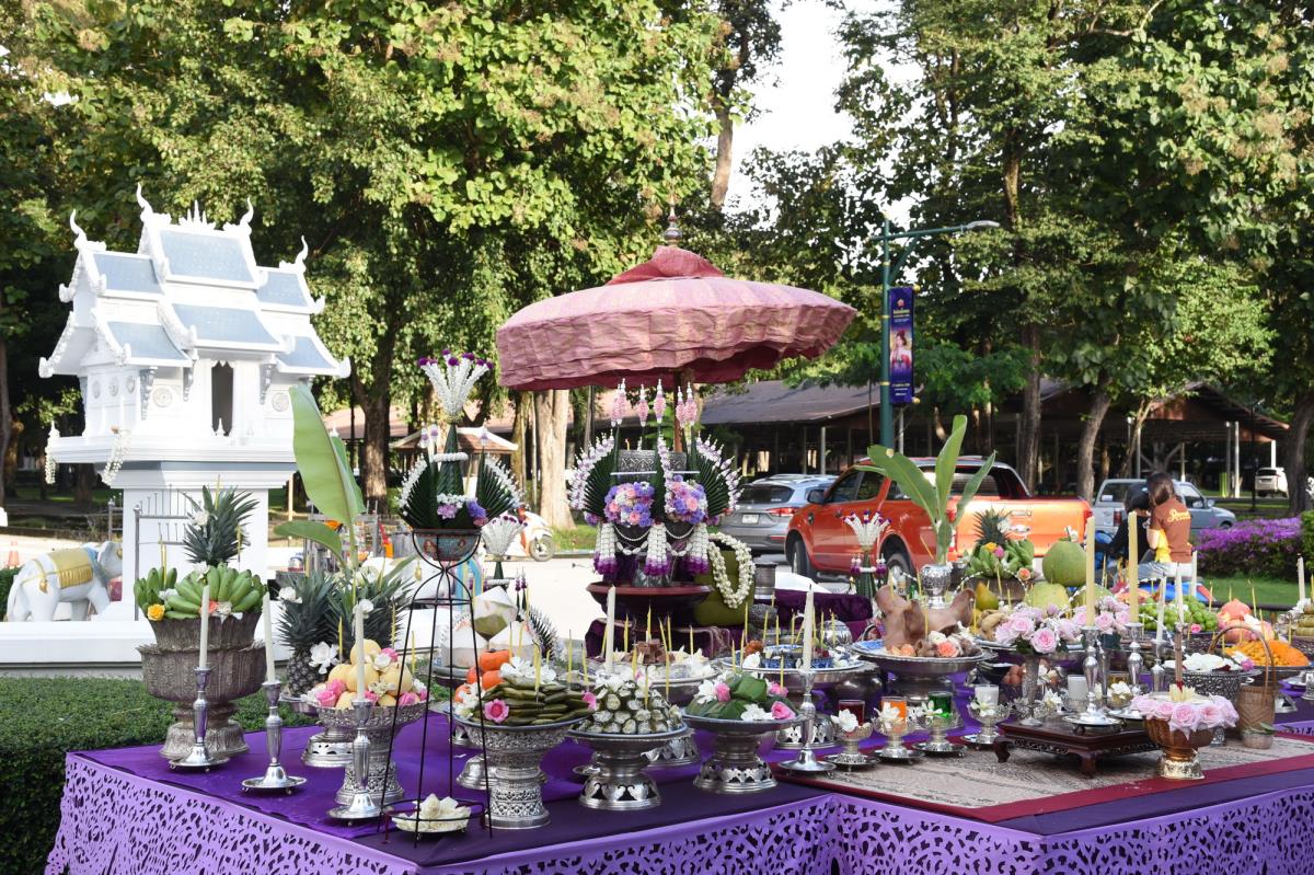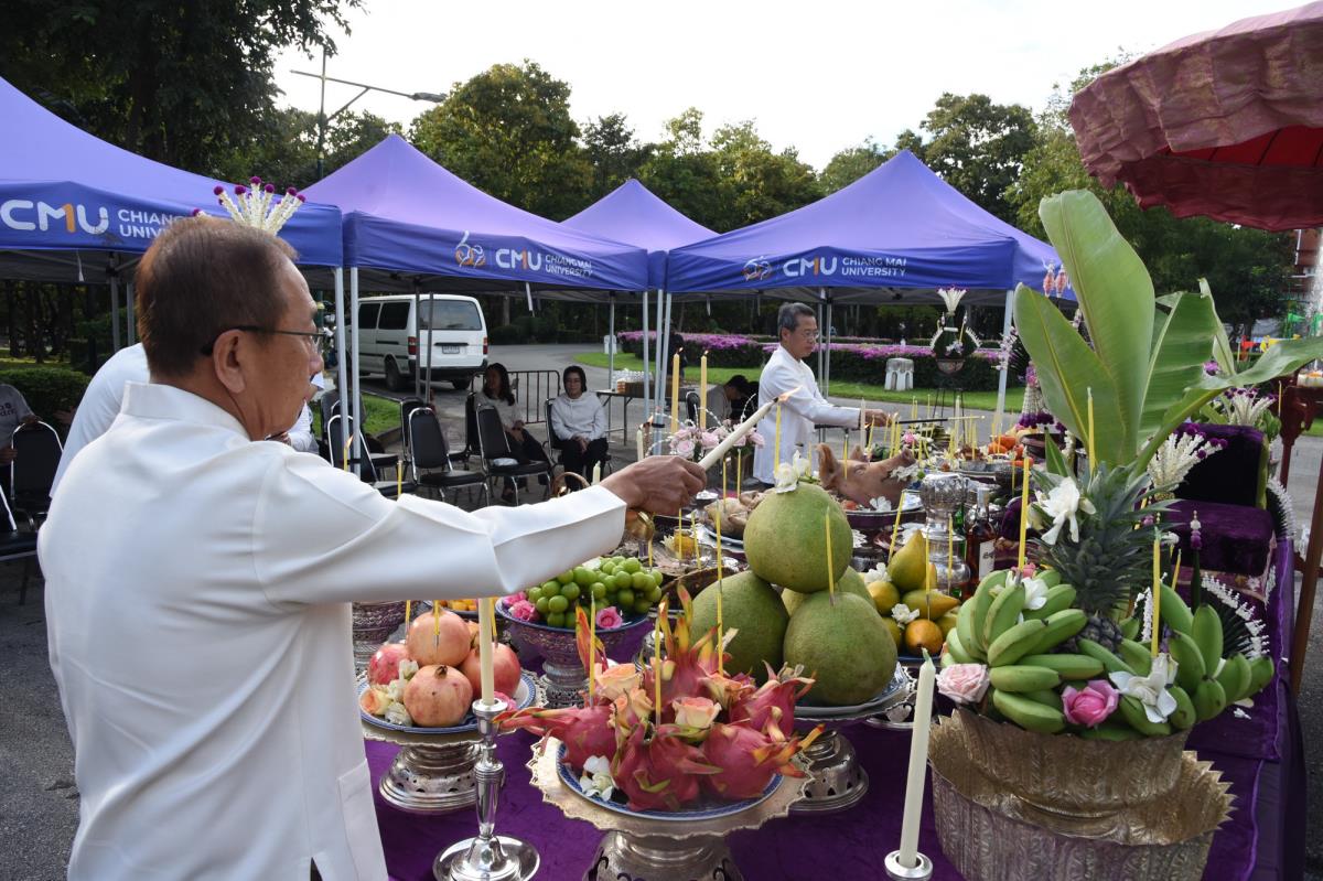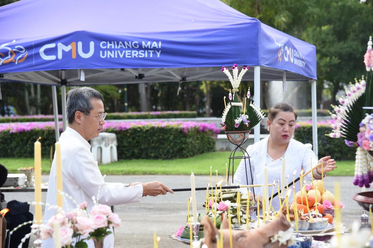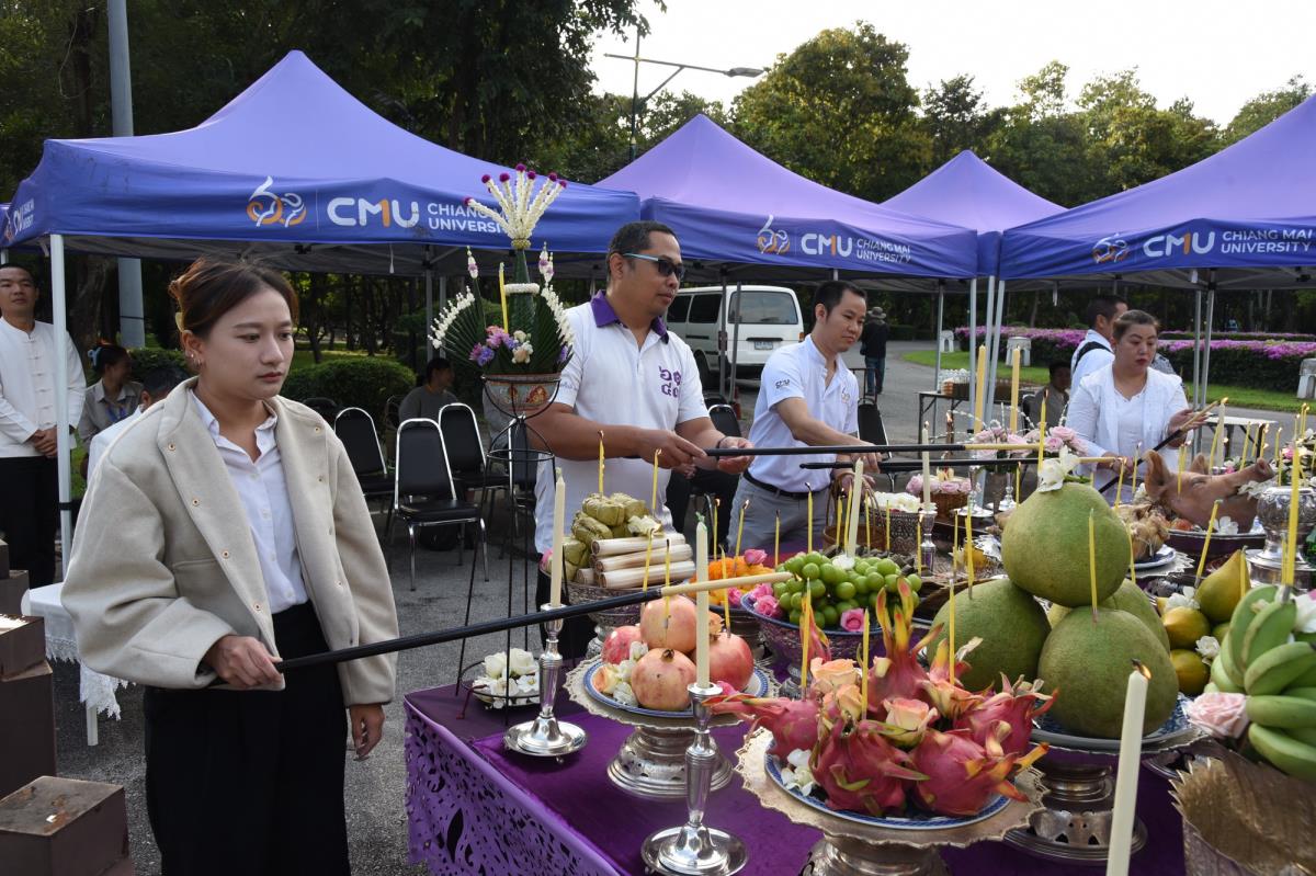 พิธีบวงสรวงศาลพระภูมิประจำมหาวิทยาลัยเชียงใหม่ ในการจัดกิจกรรม "รับน้องขึ้นดอย ร้อยภู พันธุ์เผ่า หลากเหล่าชนเนา ล้วนวัฒนา"