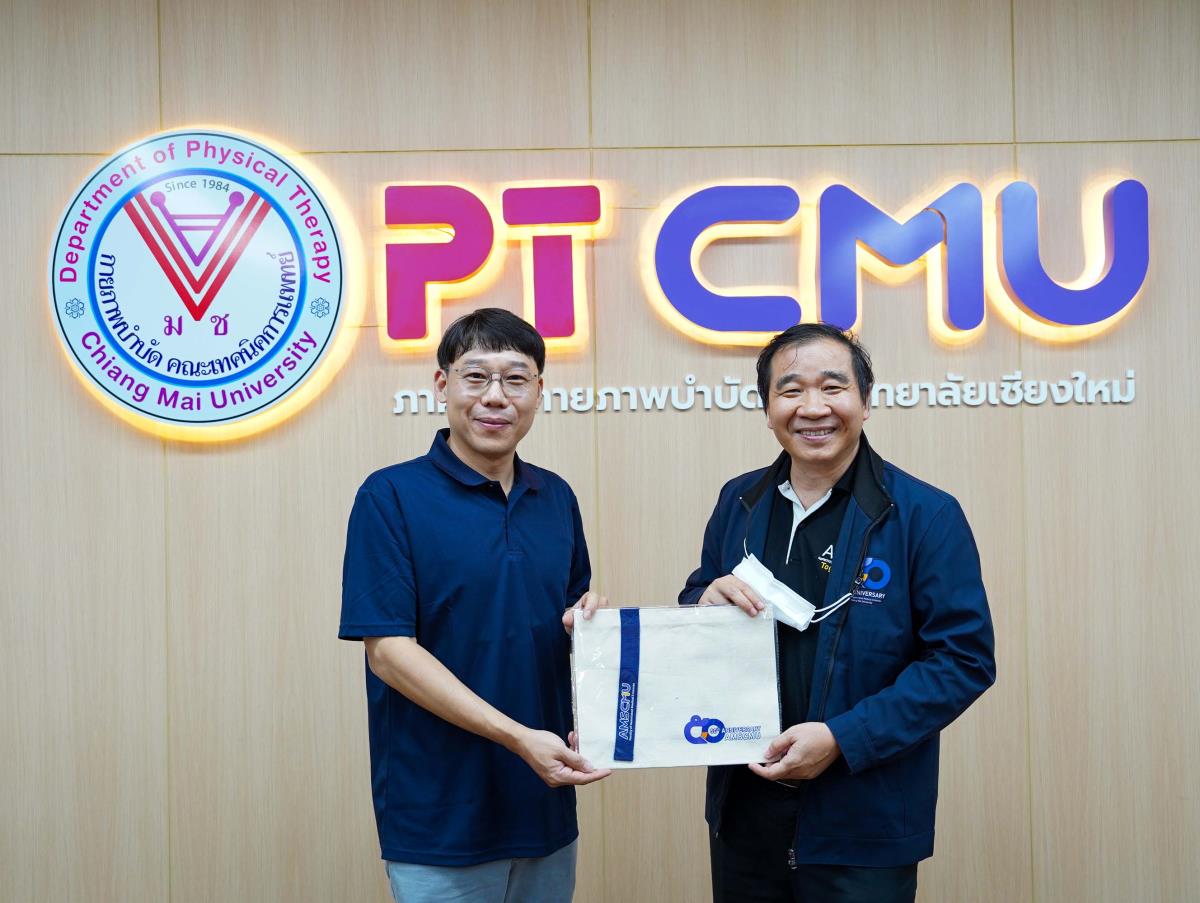ศาสตราจารย์ ดร.สาคร พรประเสริฐ คณบดี พร้อมด้วย รองศาสตราจารย์ ดร.อาทิตย์ พวงมะลิ รองคณบดี รองศาสตราจารย์ ดร.รัชดา เครสซี่ ผู้ช่วยคณบดี รองศาตราจารย์ ดร.สุรีพร อุทัยคุปต์ หัวหน้าภาควิชากายภาพบำบัด และผู้ช่วยศาสตราจารย์ ดร.เสาวลักษณ์ เดชะ อาจารย์ประจำภาควิชากายภาพบำบัด คณะเทคนิคการแพทย์ มหาวิทยาลัยเชียงใหม่ ให้การต้อนรับ Associate Professor Wonjong Yu และนักศึกษา จาก Eulji University ประเทศเกาหลีใต้ ในโอกาสมาเยือนภาควิชากายภาพบำบัด เพื่อแลกเปลี่ยนเรียนรู้เกี่ยวกับการศึกษาและการปฏิบัติทางคลินิกในสาขากายภาพบำบัด ระหว่างวันที่ 26 มกราคม 2569 - 6 กุมภาพันธ์ 2569 ณ ห้องประชุมภาควิชากายภาพบำบัด ชั้น 9 อาคาร 2 คณะเทคนิคการแพทย์ มหาวิทยาลัยเชียงใหม่ เมื่อวันอังคารที่ 27 มกราคม 2569