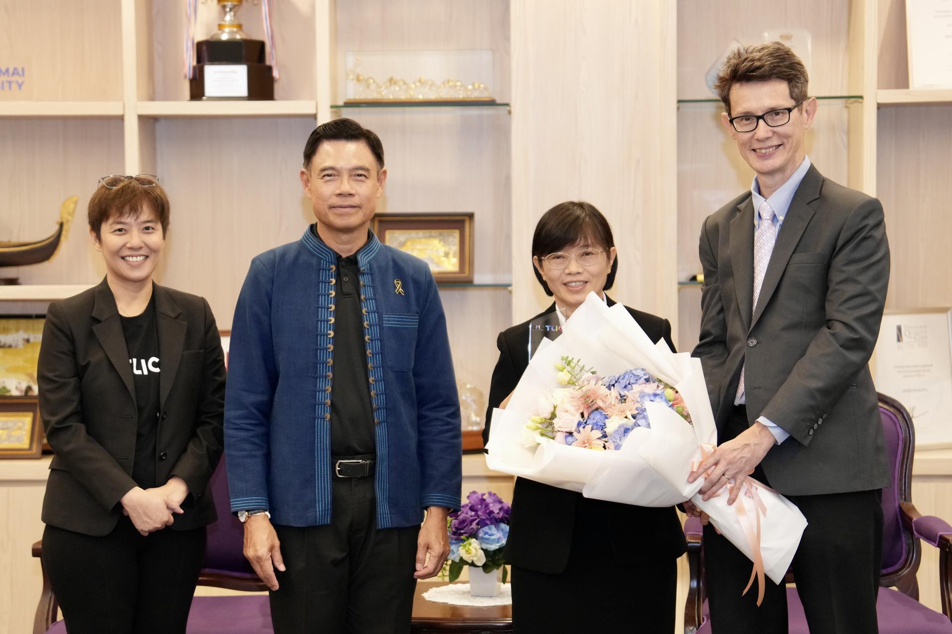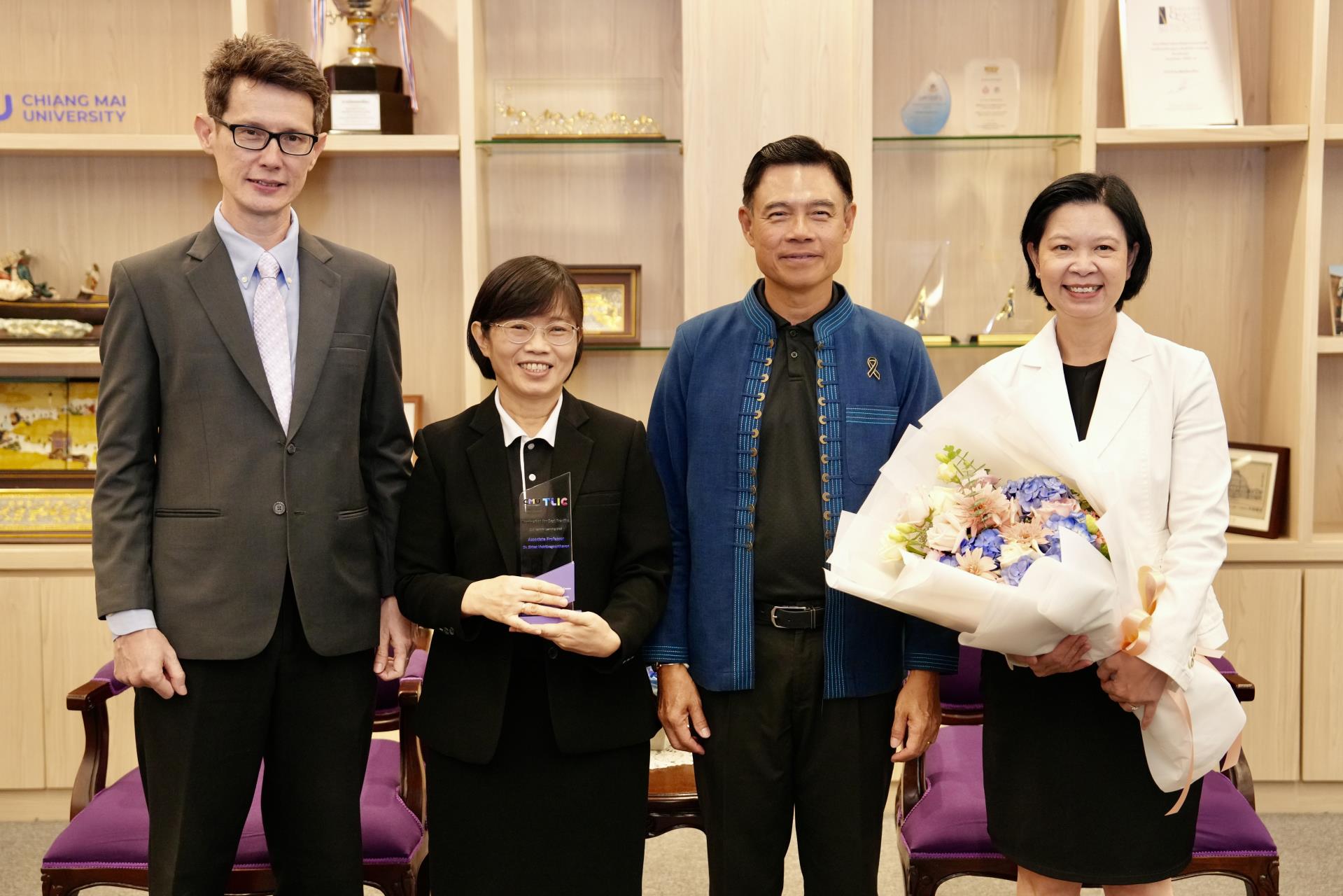 วันพฤหัสบดีที่ 23 เมษายน 2569 ศาสตราจารย์ ดร.นายแพทย์พงษ์รักษ์ ศรีบัณฑิตมงคล อธิการบดีมหาวิทยาลัยเชียงใหม่ เป็นประธานมอบรางวัลอาจารย์ต้นแบบด้านการจัดการเรียนรู้แบบใหม่ ประจำปีการศึกษา 2567 (Nomination for Best Practice) แก่ ผู้ช่วยศาสตราจารย์ ดร.ศิริรัตน์ วิชิตตระกูลถาวร กลุ่มวิชาการพยาบาลศัลยศาสตร์ คณะพยาบาลศาสตร์ มหาวิทยาลัยเชียงใหม่ โดยมี ผู้ช่วยศาสตราจารย์ ดร. เนตรทอง นามพรม รองคณบดี คณะพยาบาลศาสตร์ ร่วมแสดงความยินดี ณ ห้องรับรอง ม.ล.ปิ่น มาลากุล อาคารสำนักงานมหาวิทยาลัย มหาวิทยาลัยเชียงใหม่