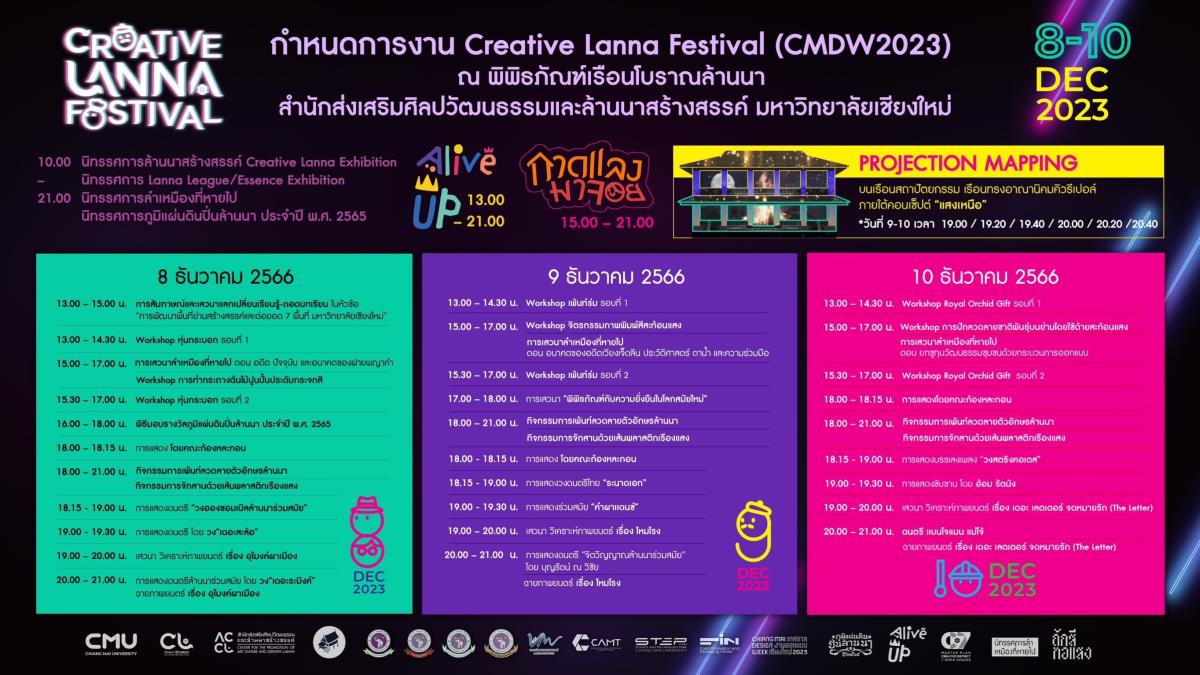 วันที่ 8 - 10 ธันวาคม 2566 นี้ ปักหมุด ลงปฏิทิน เตรียมตัวให้พร้อม !! พบกับงาน Creative Lanna Festival 2023