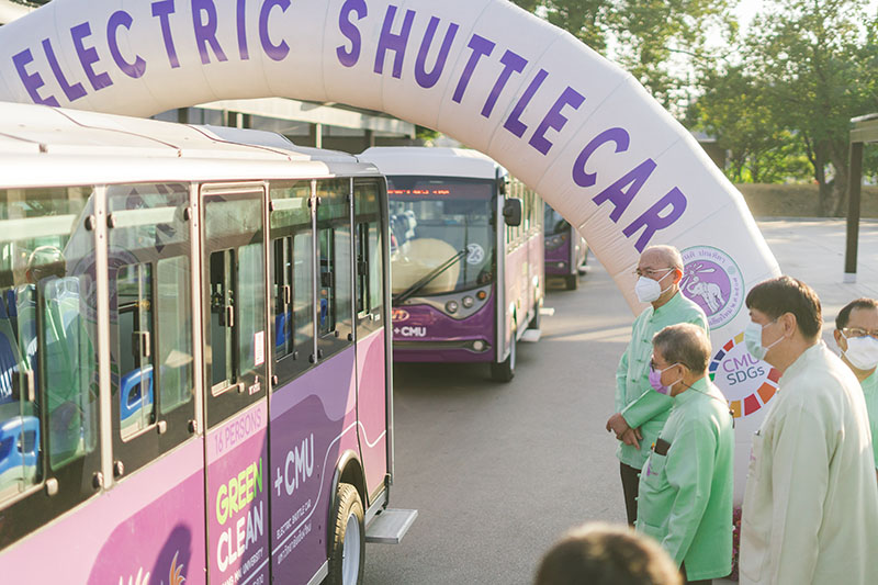 เมื่อวันที่ 6 มกราคม 2564 ศูนย์บริหารจัดการเมืองอัจฉริยะมหาวิทยาลัยเชียงใหม่ ได้มีการจัดพิธีเปิดใช้รถไฟฟ้ารูปแบบใหม่ (CMU Electric Shuttle Car) อย่างเป็นทางการ ณ ศูนย์กลางขนส่งมวลชนมหาวิทยาลัยเชียงใหม่ โดยมีศาสตราจารย์คลินิก นายแพทย์นิเวศน์ นันทจิต อธิการบดีมหาวิทยาลัยเชียงใหม่ เป็นประธานในพิธี พร้อมคณะผู้บริหาร และสื่อมวลชนนั่งรถไฟฟ้าเยี่ยมชมรอบมหาวิทยาลัย