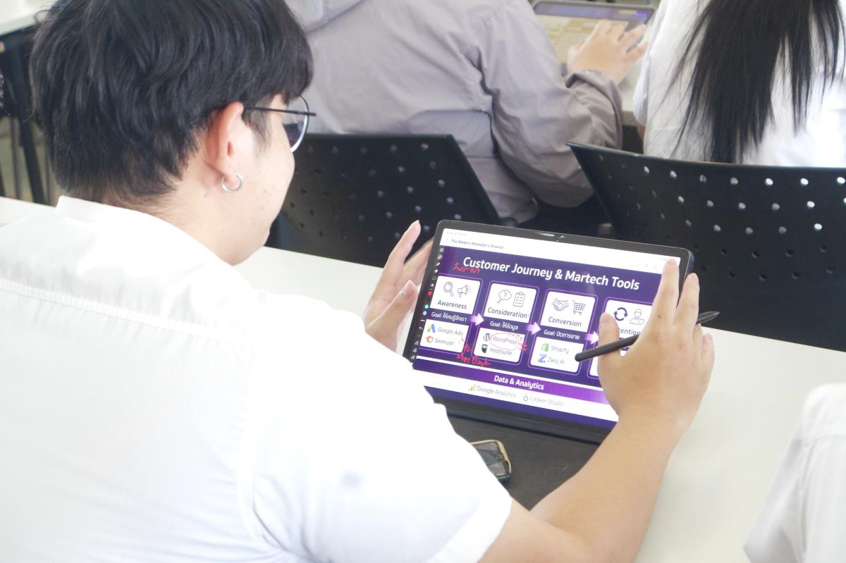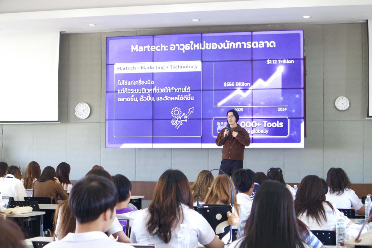 การสัมมนาครั้งนี้มุ่งเน้นการถ่ายทอดองค์ความรู้เกี่ยวกับเครื่องมือและแพลตฟอร์ม Martech ที่มีบทบาทสำคัญต่อการวางกลยุทธ์การตลาดในปัจจุบัน โดยวิทยากรได้แบ่งปันกรณีศึกษาและประสบการณ์การทำงานจริง เพื่อให้นักศึกษาเห็นภาพการประยุกต์ใช้เทคโนโลยีควบคู่กับความคิดสร้างสรรค์ทางการตลาดอย่างเป็นรูปธรรม พร้อมทั้งเปิดโอกาสให้นักศึกษาได้แลกเปลี่ยนความคิดเห็นเกี่ยวกับทักษะที่ตลาดแรงงานต้องการ ตลอดจนแนวทางการพัฒนาตนเองในสายงานการตลาดยุคใหม่ ซึ่งช่วยเสริมสร้างความมั่นใจ ความเข้าใจในบทบาทของนักการตลาดดิจิทัล และเตรียมความพร้อมสู่การทำงานอย่างมืออาชีพในอนาคต