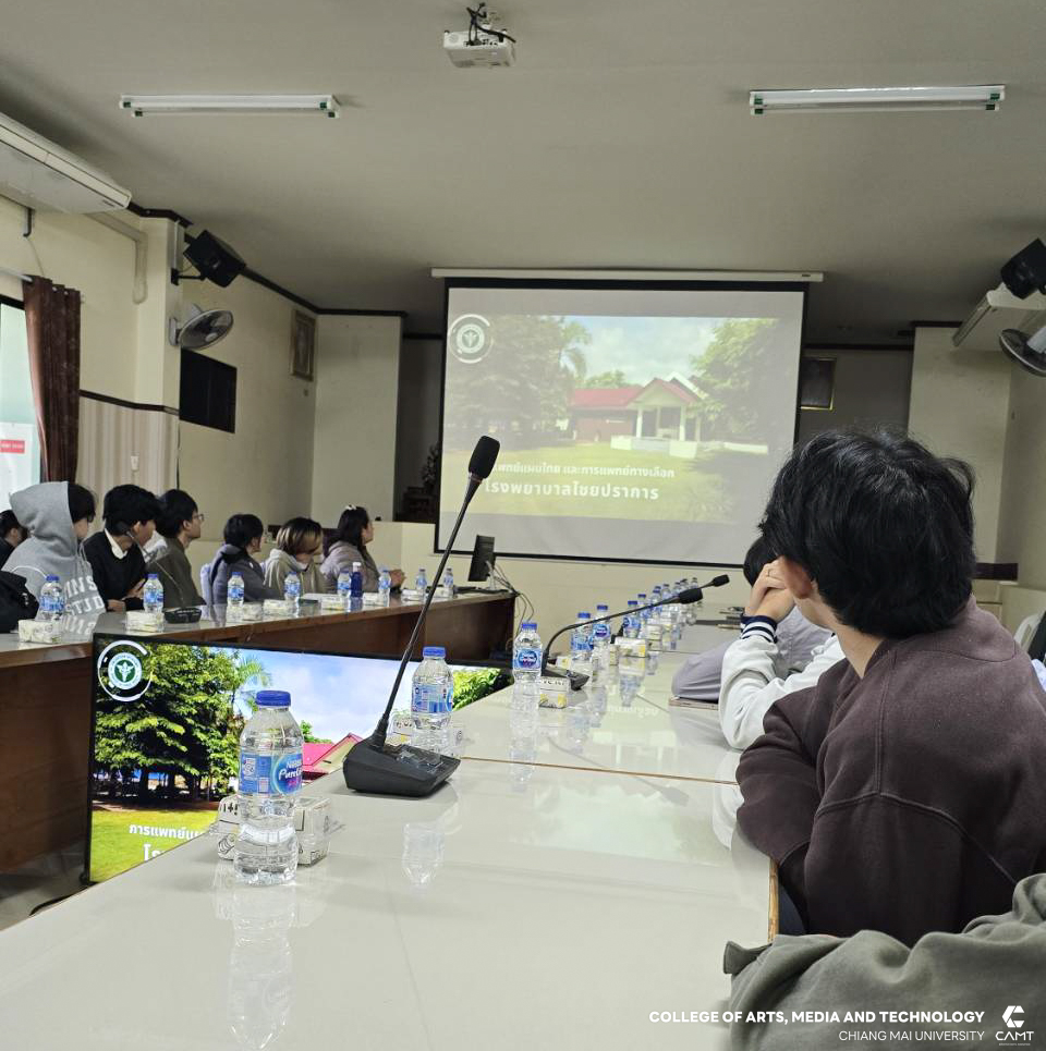 เมื่อวันที่ 14 มกราคม 2569 วิทยาลัยศิลปะ สื่อ และเทคโนโลยี มหาวิทยาลัยเชียงใหม่ นำโดยอาจารย์ ดร.ศุภรดา ประภาวงศ์ พร้อมด้วย อาจารย์ ดร.ทมะ ดวงนามล และอาจารย์ ดร.กฤษกรณ์ บัวเต้า คณาจารย์ประจำวิทยาลัยศิลปะ สื่อ และเทคโนโลยี นำคณะนักศึกษาจากสาขาวิชาแอนิเมชันและวิชวลเอฟเฟกต์ (Ani&VFX) และสาขาวิชาการจัดการบูรณาการดิจิทัล (DII) ลงพื้นที่เก็บข้อมูลวิจัยและสำรวจความต้องการ ณ โรงพยาบาลไชยปราการ จังหวัดเชียงใหม่ เพื่อดำเนินโครงการ "การออกแบบผลิตภัณฑ์แผนไทย พลิกโฉมสมุนไพร ใส่ดีไซน์สร้างมูลค่า" ภายใต้แผนขับเคลื่อนยุทธศาสตร์ CAMT Series 2569