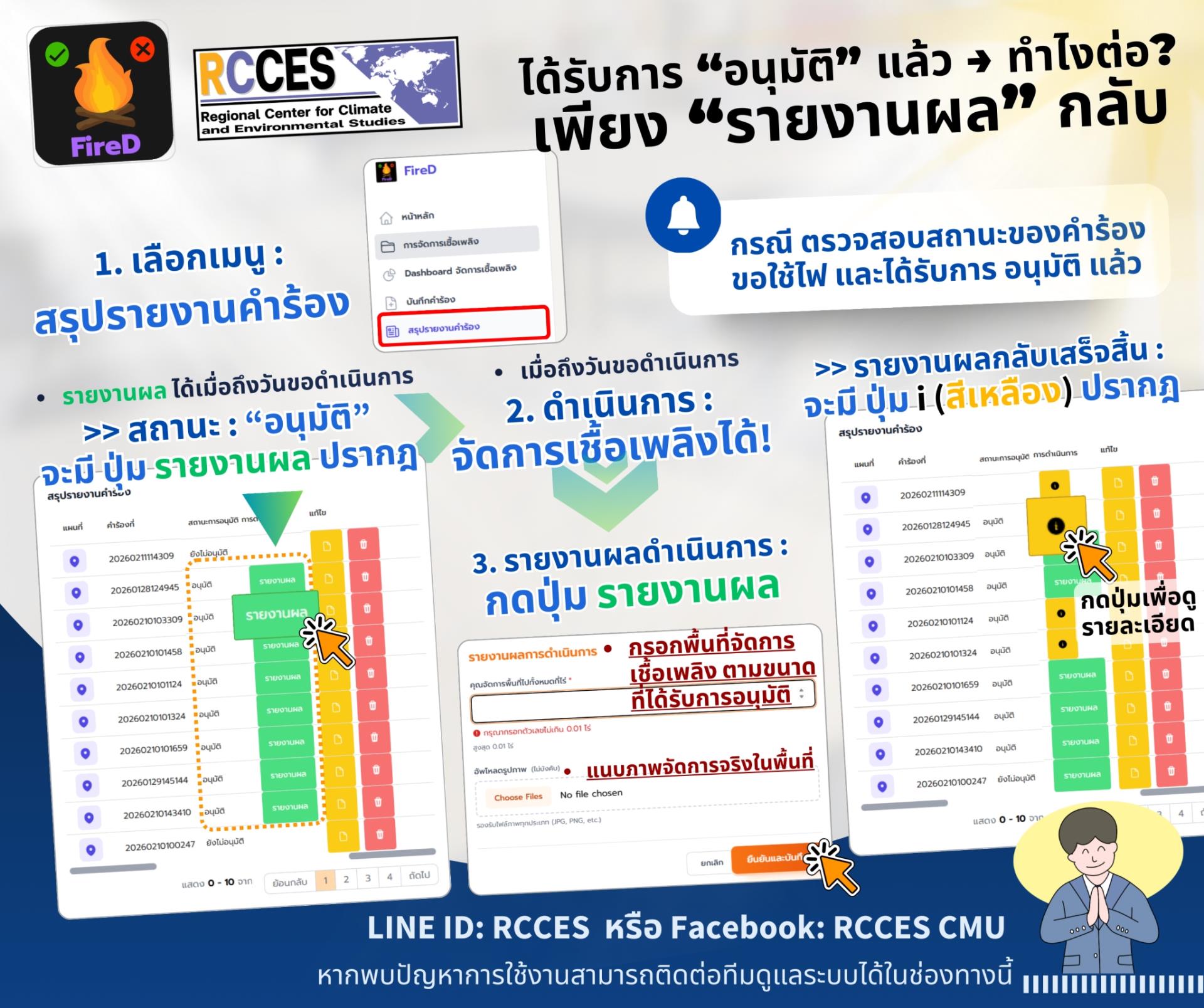 Fire-D ถูกนำมาใช้ภายใต้ “ศูนย์บัญชาการป้องกันและแก้ไขปัญหาฝุ่น PM2.5 จังหวัดเชียงใหม่” ช่วยให้การอนุญาตและควบคุมการเผาเป็นไปอย่างมีแบบแผน สอดคล้องกับสภาพแวดล้อมในแต่ละช่วงเวลา ลดผลกระทบด้านคุณภาพอากาศ และช่วยให้การตัดสินใจของหน่วยงานมีความแม่นยำมากขึ้น